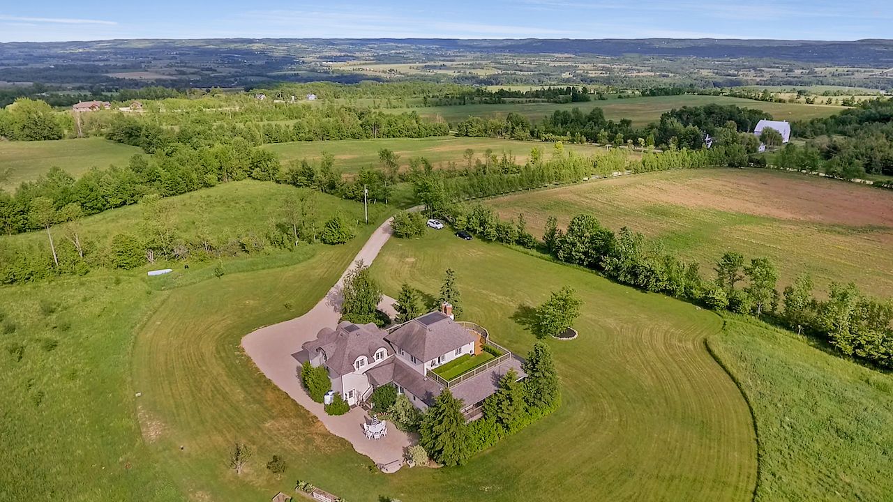 Nestled on 25 breathtaking acres overlooking the beaver valley, the blue mountains, and georgian bay, this exceptional contemporary estate offers a rare blend of luxury, sustainability, and natural beauty. Just minutes from thornbury and the region's premier ski and golf clubs, the property features rolling hills, a hardwood forest with a spring-fed stream, and private trails connecting directly to the bruce trail. Designed with high-performance living in mind, the open-concept home is net-zero ready, combining comfort and efficiency through triple-pane windows, r40 walls, and passive solar design to significantly reduce energy costs and environmental impact. The versatile layout includes four bedrooms, three bathrooms, two fireplaces, a walk-out lower level, a large eat-in kitchen, and generous entertaining spaces. The main floor living room, dining room, and den open to a wraparound porch with french door walkouts, creating seamless indoor-outdoor living. A standout feature is the 609 sq. Ft. Partially finished loft above the garage, already roughed-in and ideal for a studio, guest suite, or apartment. Wrap around porches, decks, and roof gardens frame panoramic views extending up to 20 kilometres across the valley. Additional highlights include farmed acreage and a niagara escarpment location, offering reduced property taxes, reliable high-speed internet (xplornet, with rogers fibre available for connection), and ample space with approvals in place to build a secondary residence. Location highlights: 20 minutes to ontario's best public and private ski resorts and golf clubs14 minutes to georgian bay, and the boutiques, restaurants, and harbours of thornbury and meaford, immediate access to hiking, skiing, snowshoeing, and forest exploration on your own land and the bruce trail, plus cycling along quiet country roads. A private, safe, climate-resilient contemporary rural retreat-close to everything, just 1. 5 hours from the gta.