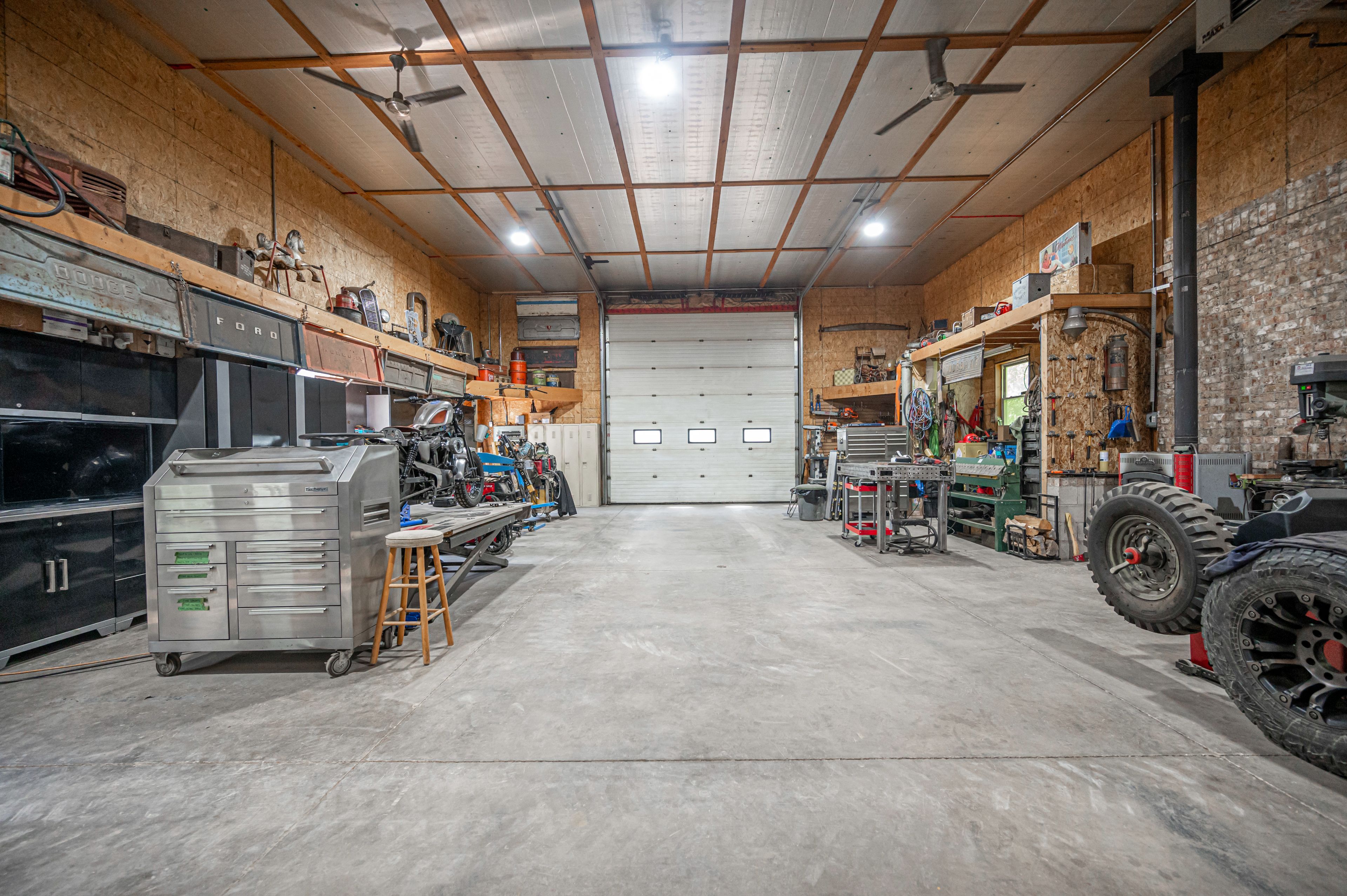 • Oversized garage and professional workshop for hobbyists and home business.
