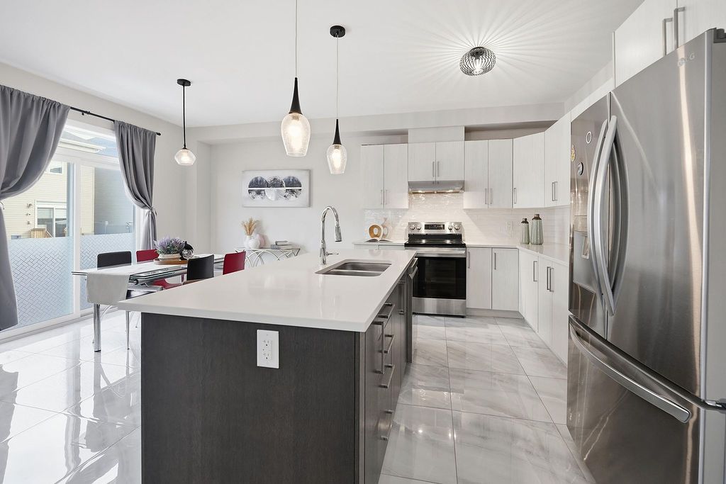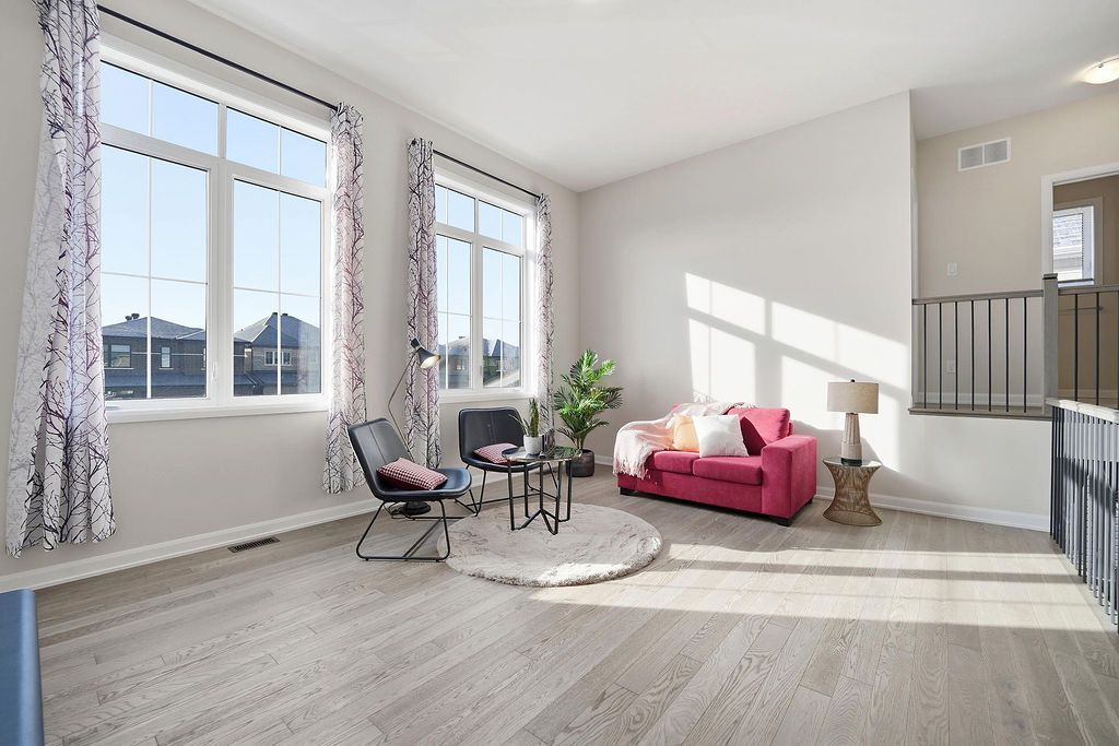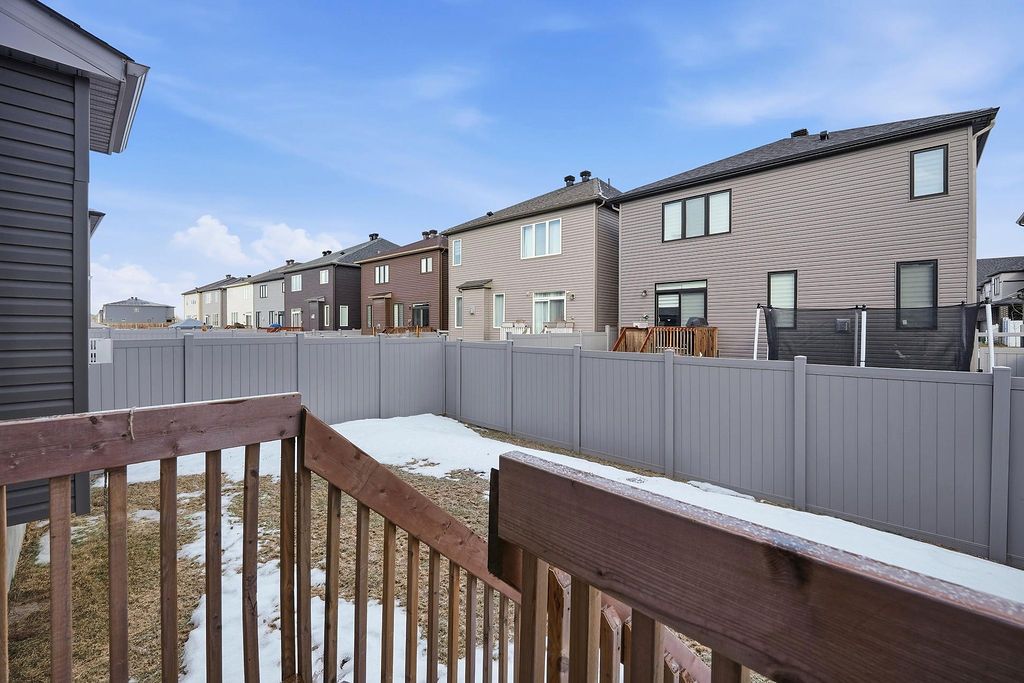 This 3-bedroom single-family home in quinn's pointe features 9-ft ceilings on both the main and second floors and a striking 15-ft ceiling in the loft-style family room, creating a bright and airy living space with impressive architectural appeal. The home offers a functional layout with spacious living and dining areas and a well-designed kitchen with a large island and breakfast bar, ideal for everyday living and entertaining. The sun-filled loft overlooking the main floor provides a perfect space for a lounge or media area. Upstairs includes three well-sized bedrooms, including a primary bedroom with walk-in closet and ensuite. The fully fenced backyard is great for outdoor enjoyment, and the unfinished basement offers ample storage and future potential. Conveniently located near strandherd dr and greenbank rd, close to parks, trails, rivers, the minto recreation complex, and excellent schools.
