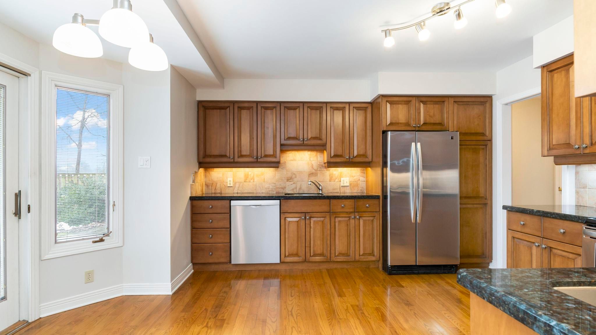 Located in the heart of westmount, this charming property offers something truly rare--it is the only property on the street that backs directly onto the woods. Instead of rear neighbours, you'll wake up to peaceful treed views and birdsong with westmount p. S. & saunders s. S. Just a short walk away. The spacious foyer opens into sun-filled living and dining areas perfect for entertaining. The kitchen, complete with granite countertops & stainless steal applainces, walks out to a two-tiered deck overlooking the woods--a perfect place for morning coffee or summer evenings surrounded by nature. The cozy family room features a gas fireplace & a large bay window that provides stunning views of the backyard. A laundry room with a sink, cupboards & storage closet, along with a convenient 2pc bathroom, adds to the home's functionality. Upstairs, you'll find 3 generous bedrooms, including a primary suite with double closets, & custom built-in drawers & shelves, a 4pc ensuite featuring a soaker tub, and an additional 4pc main bathroom. The basement with a large rec room provides a great area for hobbies & kids to play while the crawl space offers plenty of room for storage. This home is ready for your personal touch to truly shine. Welcome home. Other noteables; roof (2025), ac & furnace (2024), concrete driveway (2023).*some photos virtually staged.*