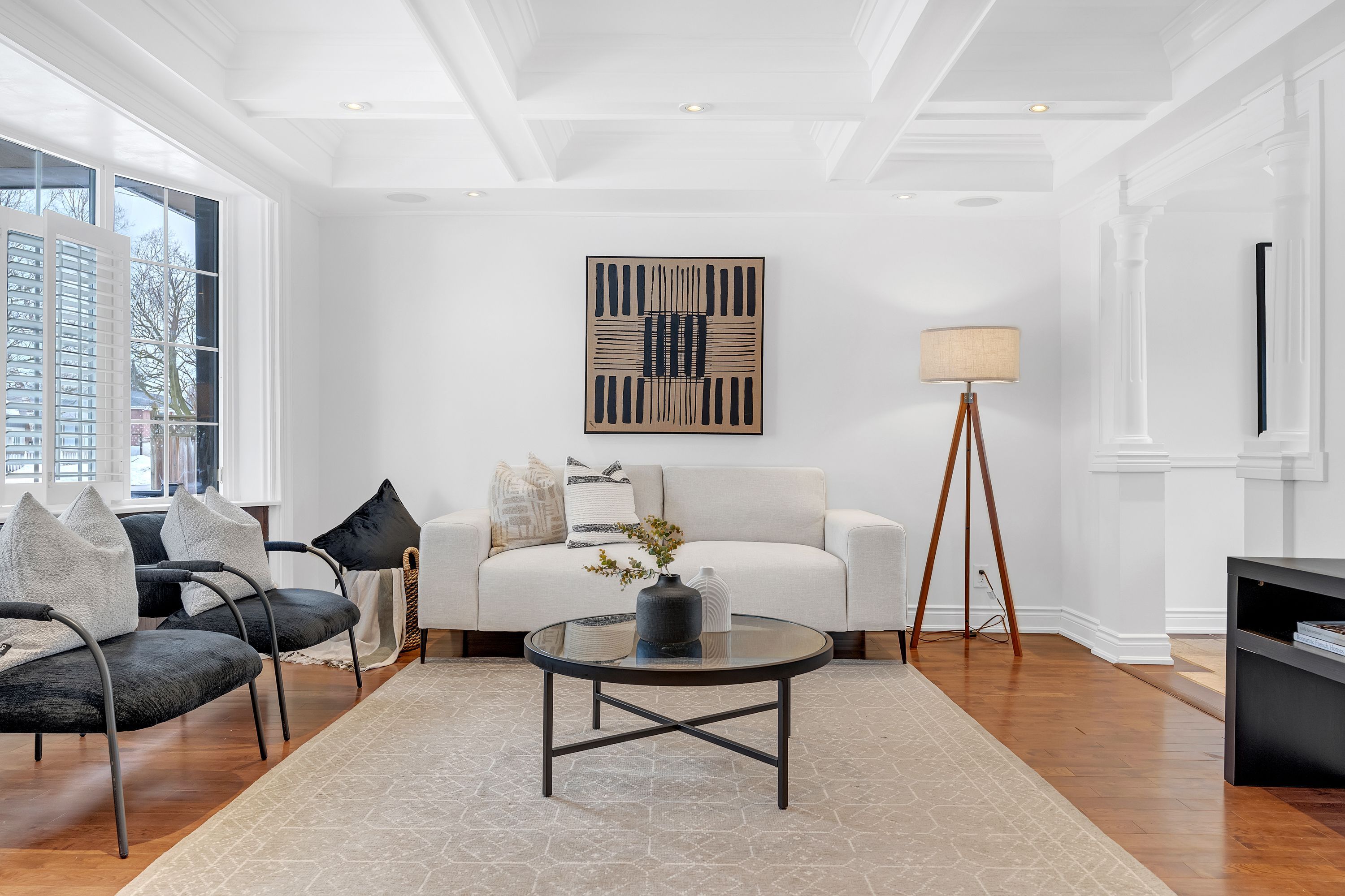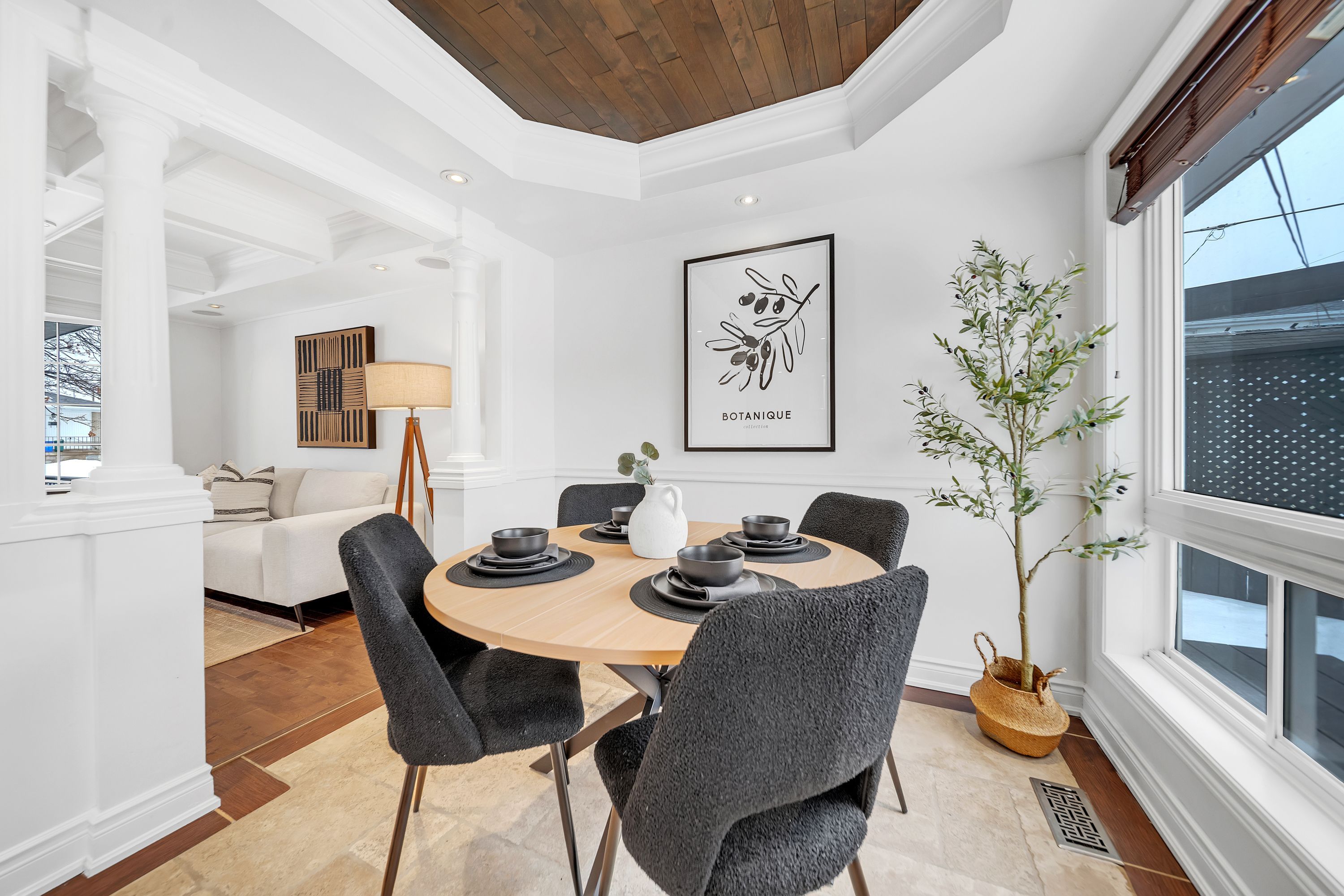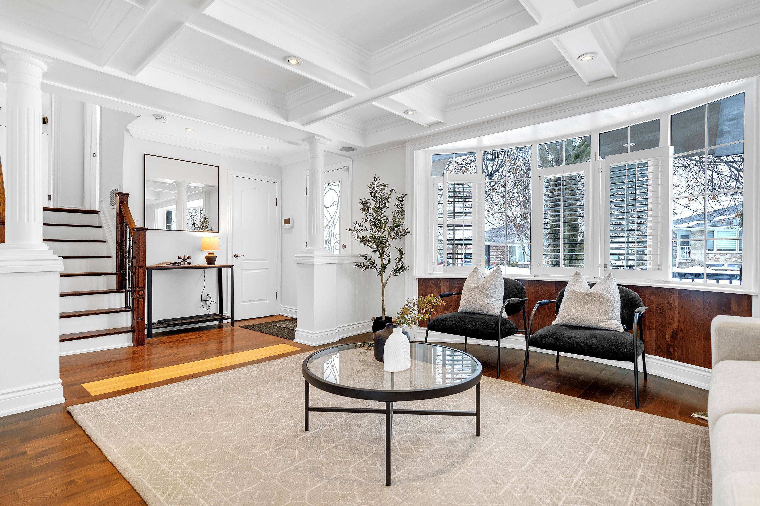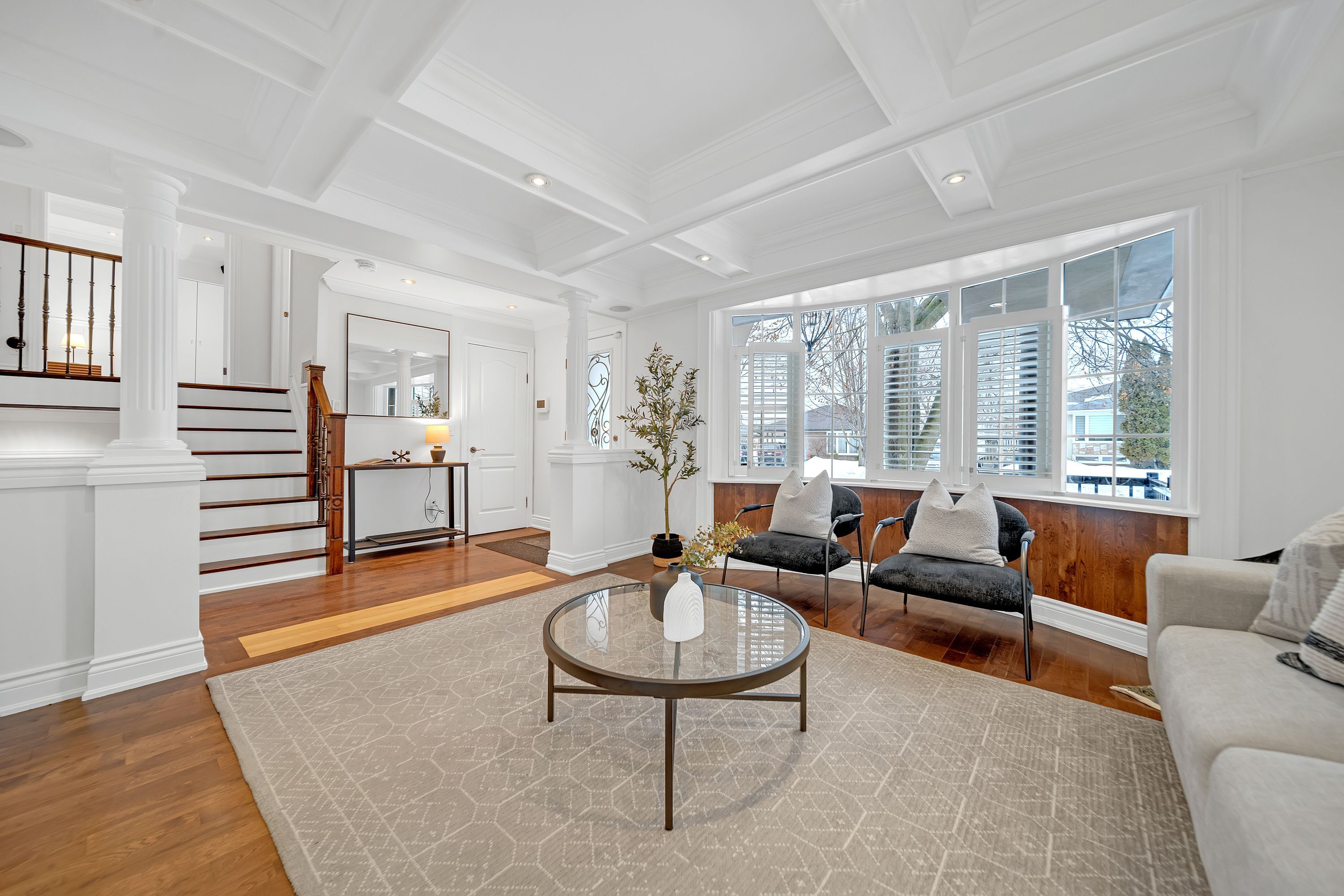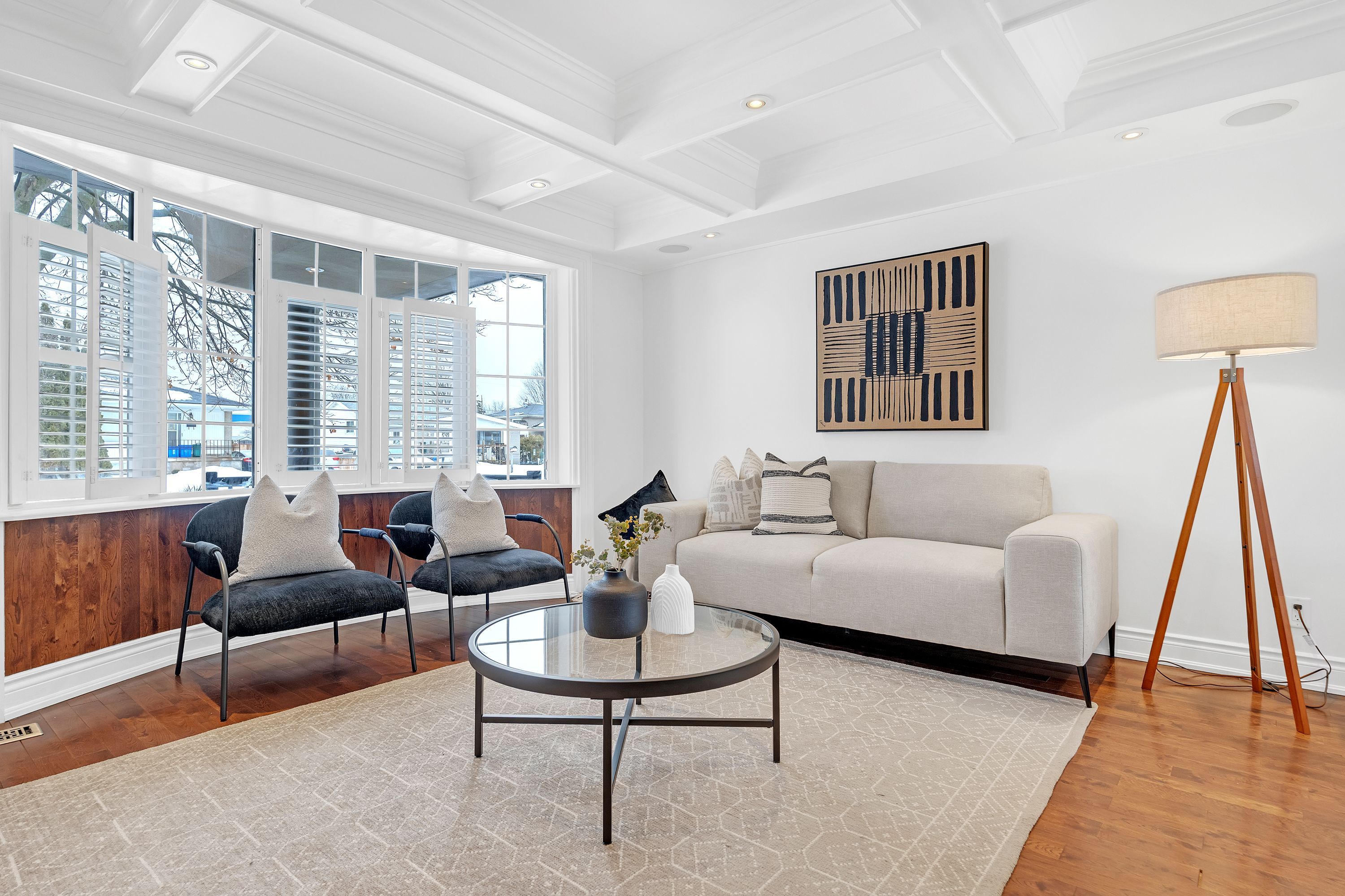 • Bright open living space with large bay window and updated interior.