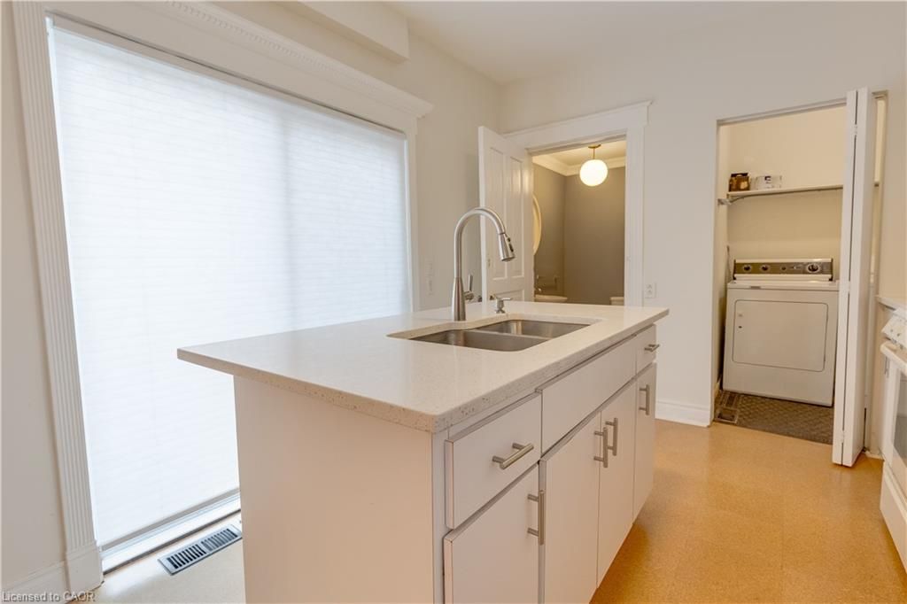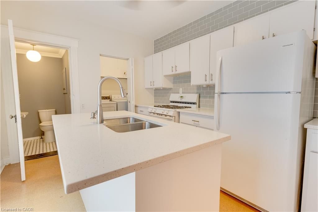 Welcome to this beautifully updated 2-bedroom, 2-bathroom affordable freehold townhouse on historic monmouth road - a charming tree-lined street renowned for its distinctive fashionable dark red brick row houses built by hiram walker. This home blends heritage character with modern comfort, offering bright, sun-filled rooms and wide-plank hardwood floors throughout the main living areas. The main floor features a spacious dining and living area, and a well-appointed updated kitchen, main floor laundry and powder rooms, with direct access to a walkout deck overlooking the deep backyard. The private rear yard includes back-alley access, providing the opportunity for off-street parking or a future garage. Ideally located close to trendy restaurants, schools, parks, recreation, public transportation, and shopping, this home offers an exceptional balance of lifestyle and convenience in one of windsor's most storied neighbourhoods.