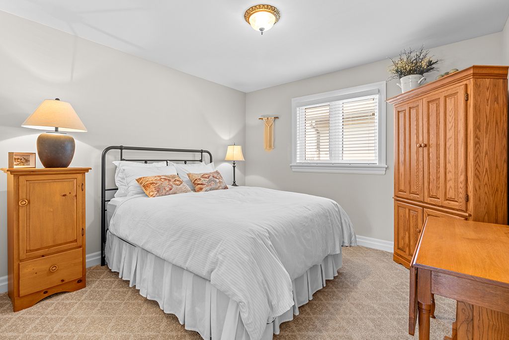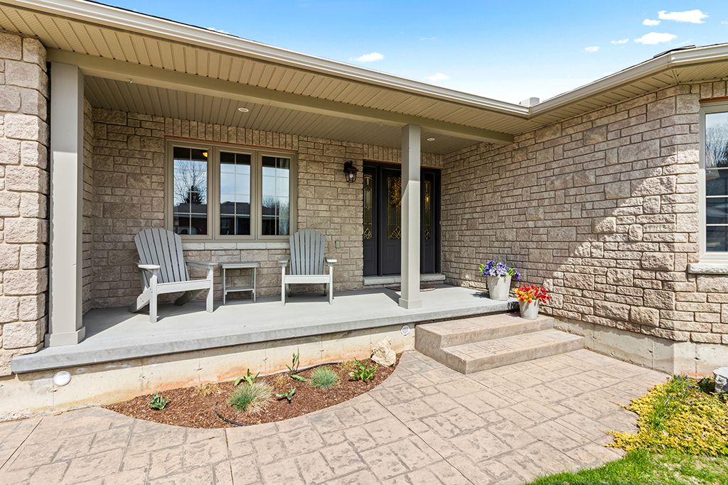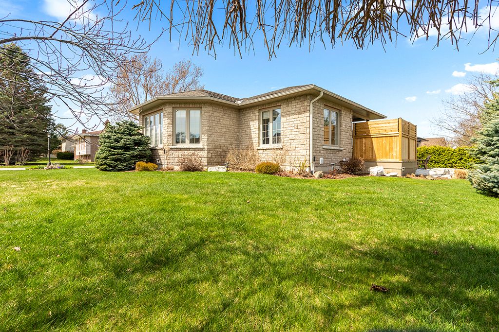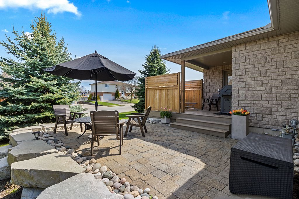 Attractive all-stone bungalow with tandem garage on a beautifully landscaped corner lot. Surrounded by mature gardens and towering evergreens, this well-maintained home is located in a family-friendly neighbourhood close to parks and a nearby school. The thoughtfully designed main level offers a bright living room, a spacious kitchen with built-in appliances and a walk-in pantry, and a dining area with a garden door leading to a private deck, perfect for outdoor entertaining. You'll also find three bedrooms, two full bathrooms, and a convenient main-floor laundry room. The finished basement extends your living space with a spacious family room featuring a gas fireplace and rough-in for a wet bar, a fourth bedroom with ensuite access to a 4-piece bathroom, and ample storage. Additional highlights include a double-deep tandem garage, patterned concrete driveway with plenty of parking, covered deck, in-ground sprinkler system, gas bbq hookup, two sun tunnels, and hardwood flooring throughout the principal rooms. Recent upgrades include a geothermal furnace, improved insulation, and a side patio with composite decking. Take the 3d tour and book your private showing today.
