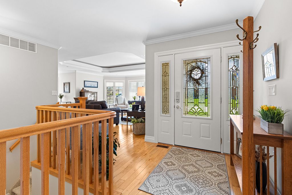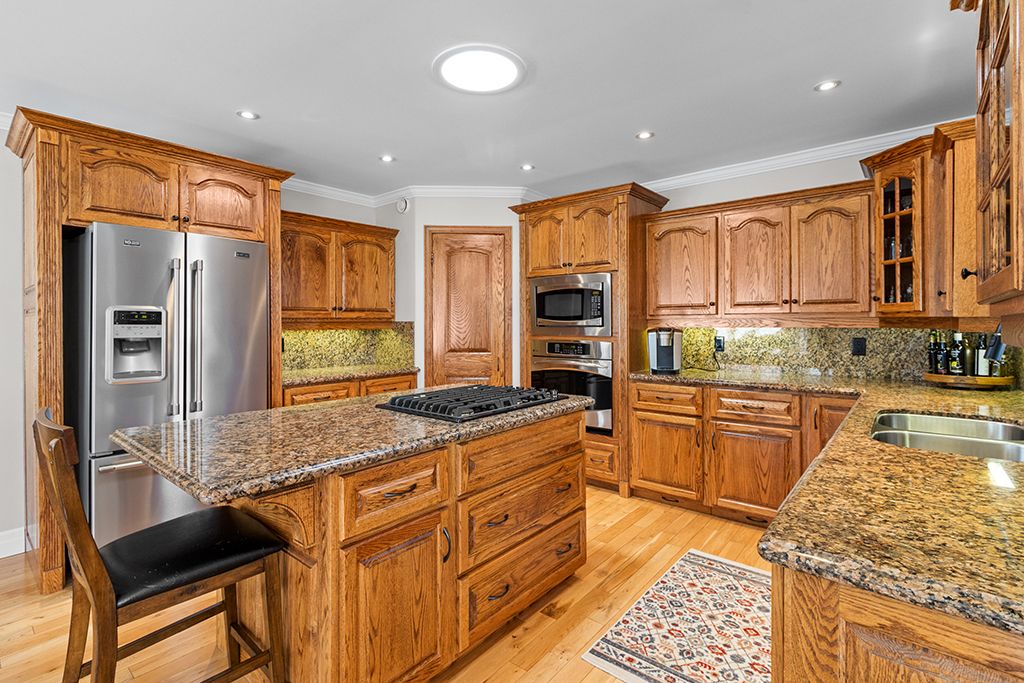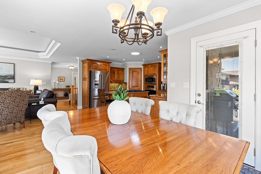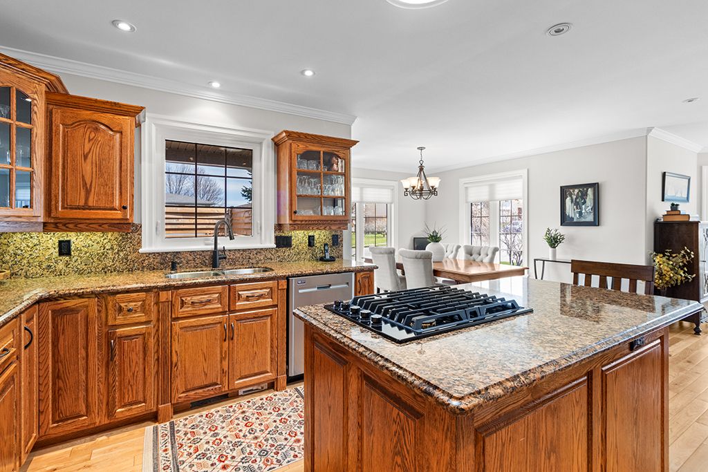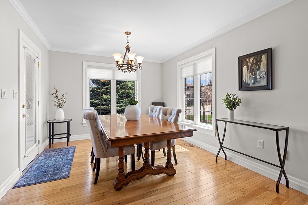 Attractive all-stone bungalow with tandem garage on a beautifully landscaped corner lot. Surrounded by mature gardens and towering evergreens, this well-maintained home is located in a family-friendly neighbourhood close to parks and a nearby school. The thoughtfully designed main level offers a bright living room, a spacious kitchen with built-in appliances and a walk-in pantry, and a dining area with a garden door leading to a private deck, perfect for outdoor entertaining. You'll also find three bedrooms, two full bathrooms, and a convenient main-floor laundry room. The finished basement extends your living space with a spacious family room featuring a gas fireplace and rough-in for a wet bar, a fourth bedroom with ensuite access to a 4-piece bathroom, and ample storage. Additional highlights include a double-deep tandem garage, patterned concrete driveway with plenty of parking, covered deck, in-ground sprinkler system, gas bbq hookup, two sun tunnels, and hardwood flooring throughout the principal rooms. Recent upgrades include a geothermal furnace, improved insulation, and a side patio with composite decking. Take the 3d tour and book your private showing today.
