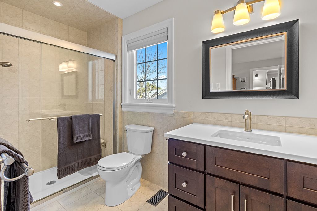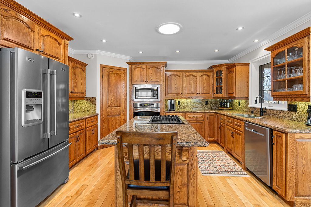 • Finished basement includes family room with gas fireplace.