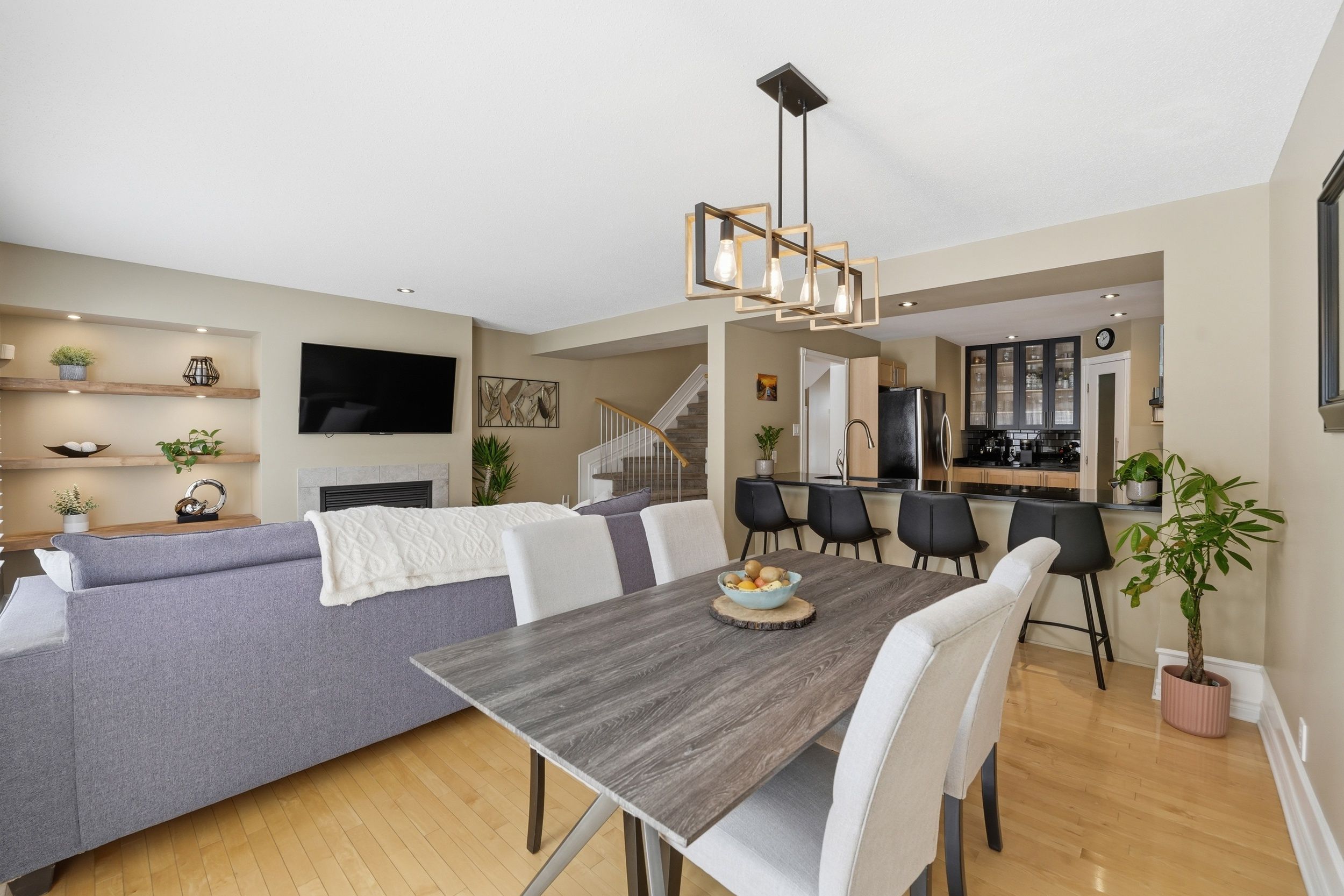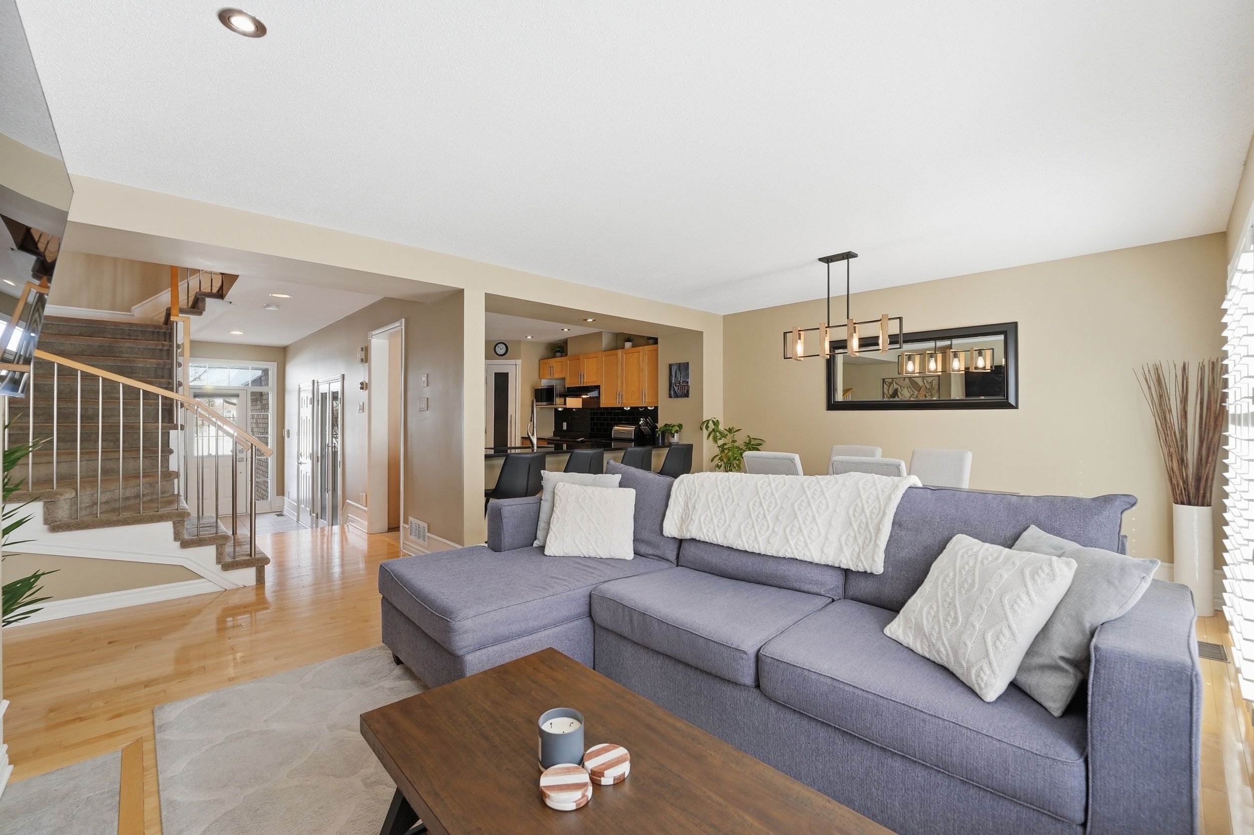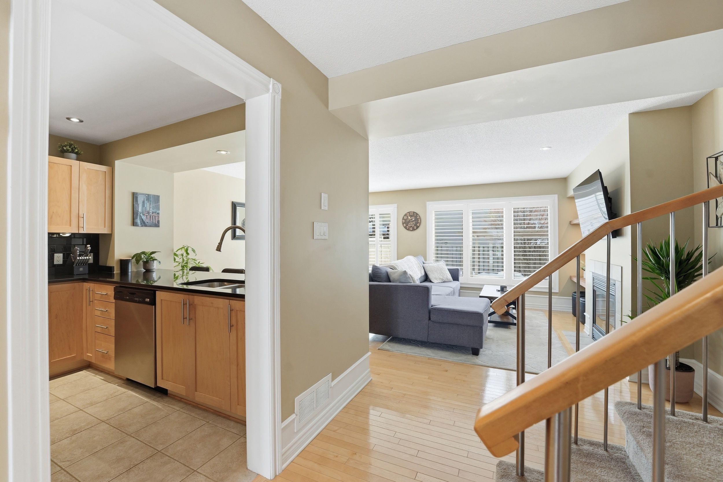 Welcome home to 808 scala avenue, in avalon east. This beautifully upgraded 3 beds, 4 baths urbandale executive townhome is ideal for first-time buyers and young families looking to plant roots in a great community. With its full brick façade and beautiful landscaping in both the front and back, this home makes a strong first impression. Facing a park, you'll love the open feel and the convenience that comes with it. Step inside to a thoughtful layout featuring hardwood floors throughout the living and dining rooms, ceramic tile in the front foyer, and ceramic flooring in the kitchen. The kitchen is both stylish and functional, offering stainless steel appliances, light wood cabinetry, a sleek black backsplash, granite countertop, a dedicated coffee bar, and a walk-in pantry - the kind of space that truly works for everyday living. The living room is warm and inviting, complete with a beautiful gas fireplace, with built-in shelves and recessed lighting - perfect for cozy evenings. Upstairs, you'll find three bedrooms, all with hardwood flooring. The spacious primary suite features an ensuite with a soaker tub, shower, and granite countertop. The main bathroom includes a bath/shower combo with a granite countertop. The fully finished basement adds even more living space, complete with a rec room, partial bathroom (but with rough-in for shower), laundry area and large storage - ideal for growing families who need that extra flexibility. Outside, enjoy a private, completely maintenance-free south exposed yard with full interlock (with small area of grass) and gas hook up for your bbq - perfect space to relax and entertain. Other neat features are upgraded bannisters, custom lighting and custom blinds throughout (including california shutters). Lennox furnace and ac (2021), this is the kind of home that makes everyday living easy - in a location where families grow!