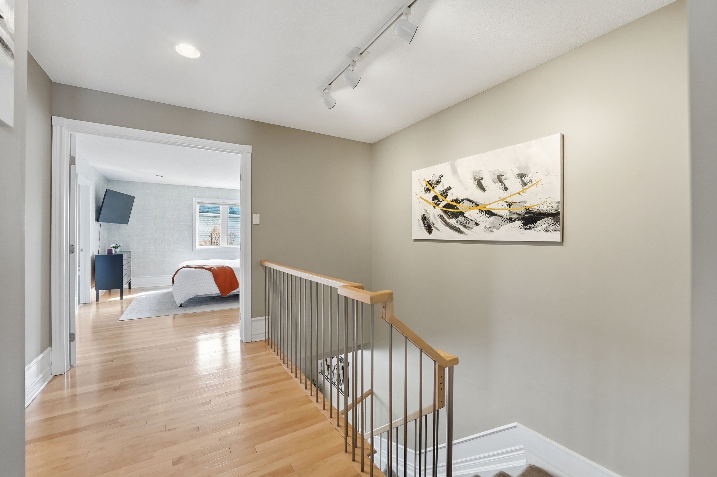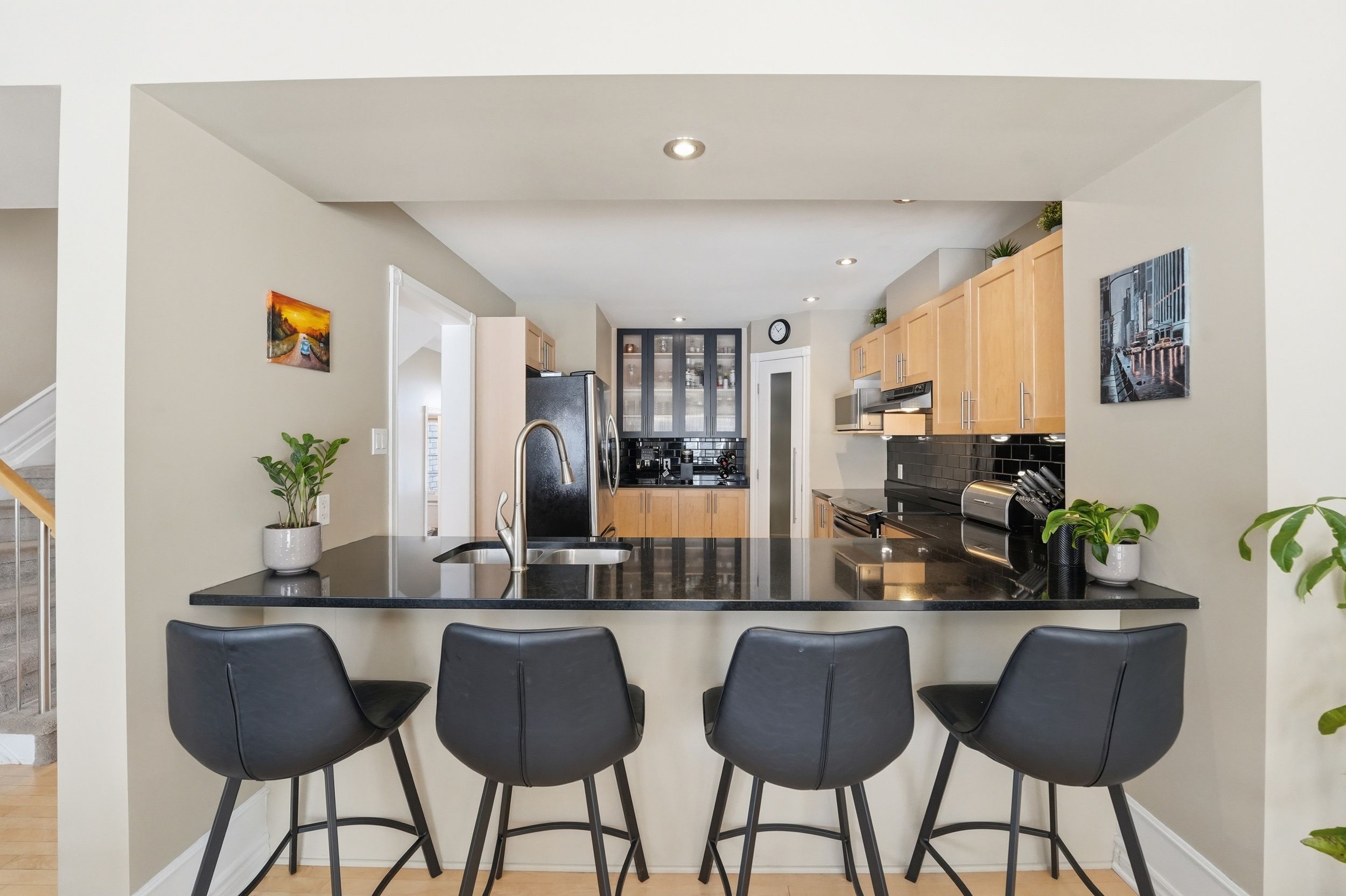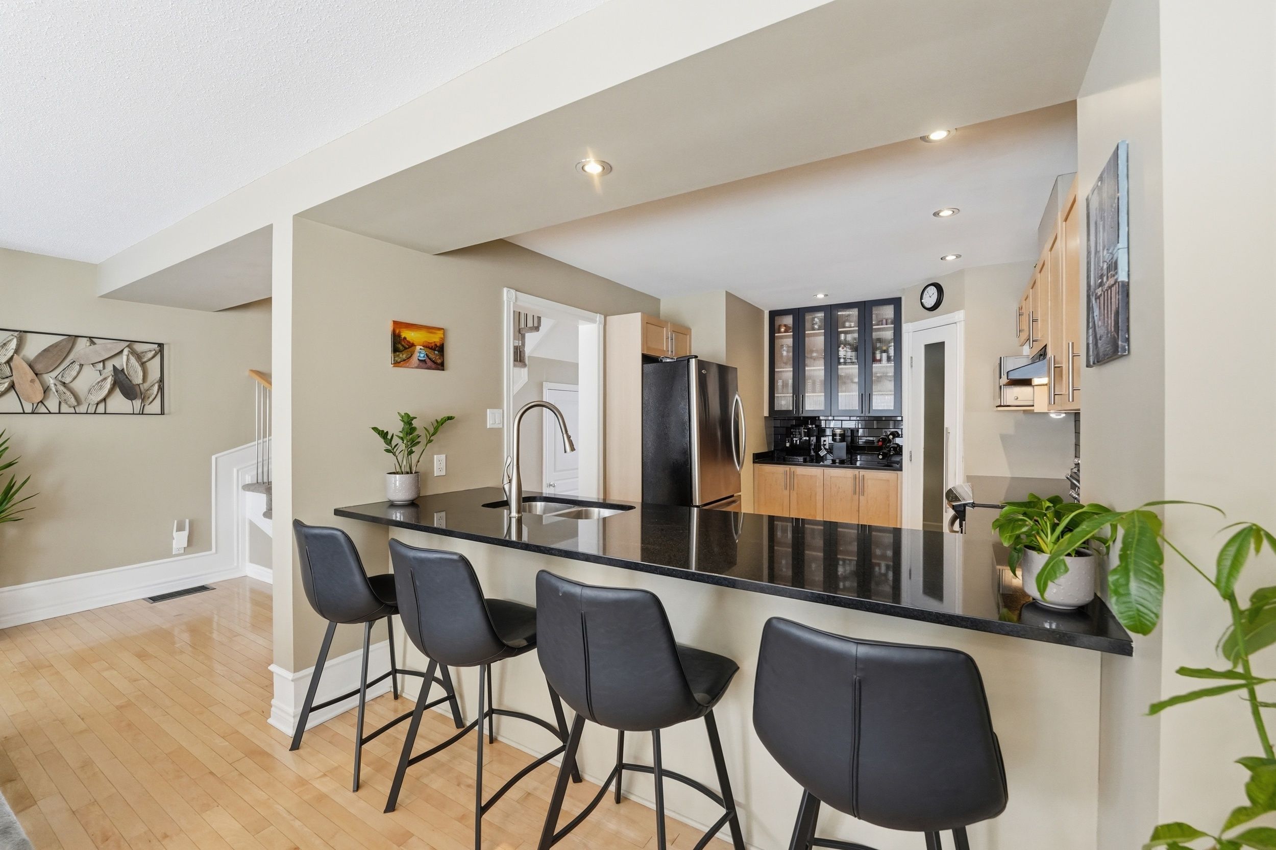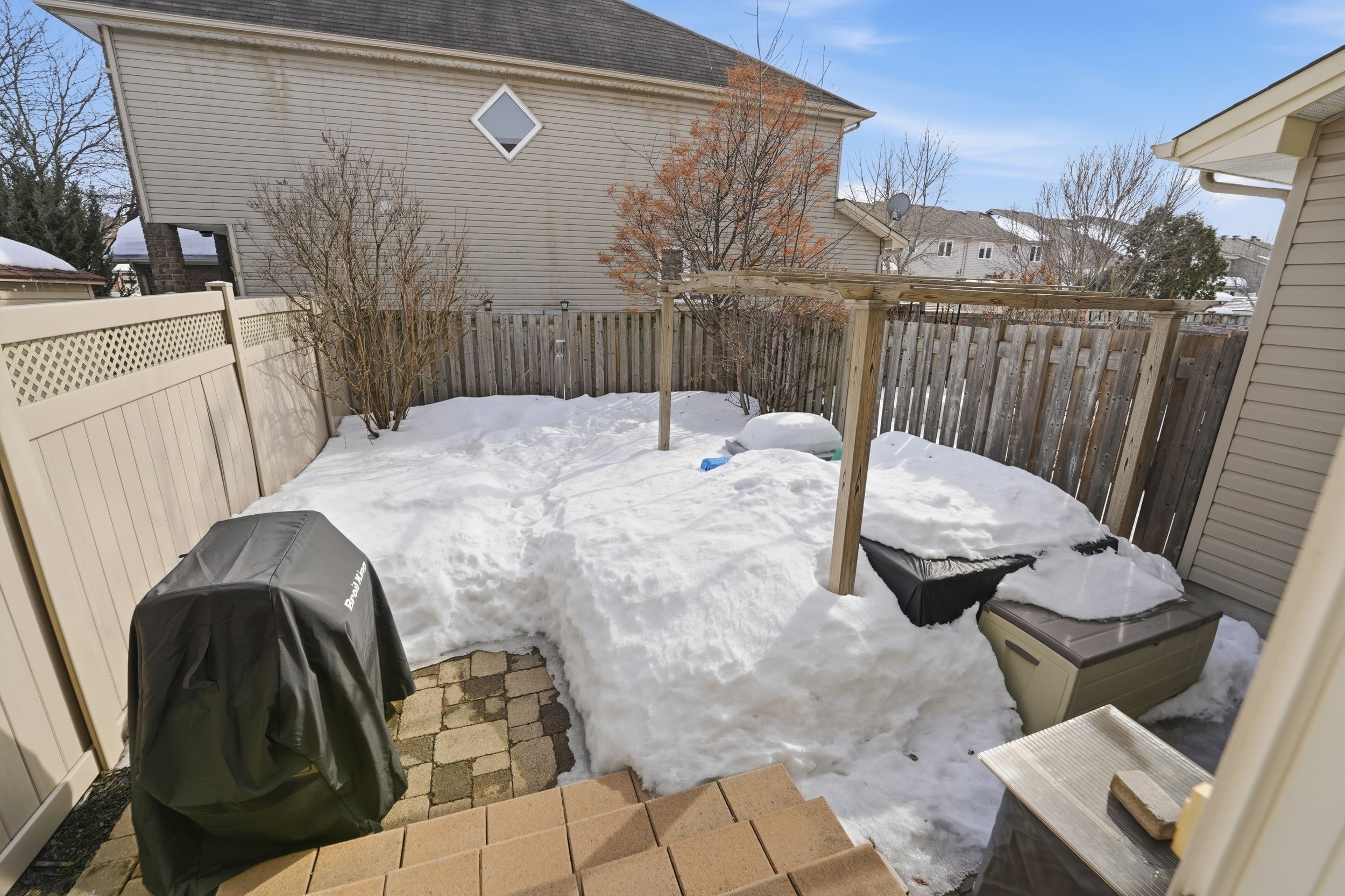 Welcome home to 808 scala avenue, in avalon east. This beautifully upgraded 3 beds, 4 baths urbandale executive townhome is ideal for first-time buyers and young families looking to plant roots in a great community. With its full brick façade and beautiful landscaping in both the front and back, this home makes a strong first impression. Facing a park, you'll love the open feel and the convenience that comes with it. Step inside to a thoughtful layout featuring hardwood floors throughout the living and dining rooms, ceramic tile in the front foyer, and ceramic flooring in the kitchen. The kitchen is both stylish and functional, offering stainless steel appliances, light wood cabinetry, a sleek black backsplash, granite countertop, a dedicated coffee bar, and a walk-in pantry - the kind of space that truly works for everyday living. The living room is warm and inviting, complete with a beautiful gas fireplace, with built-in shelves and recessed lighting - perfect for cozy evenings. Upstairs, you'll find three bedrooms, all with hardwood flooring. The spacious primary suite features an ensuite with a soaker tub, shower, and granite countertop. The main bathroom includes a bath/shower combo with a granite countertop. The fully finished basement adds even more living space, complete with a rec room, partial bathroom (but with rough-in for shower), laundry area and large storage - ideal for growing families who need that extra flexibility. Outside, enjoy a private, completely maintenance-free south exposed yard with full interlock (with small area of grass) and gas hook up for your bbq - perfect space to relax and entertain. Other neat features are upgraded bannisters, custom lighting and custom blinds throughout (including california shutters). Lennox furnace and ac (2021), this is the kind of home that makes everyday living easy - in a location where families grow!