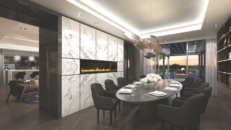 • Modern kitchen with Cesar Stone countertops and a big center island.