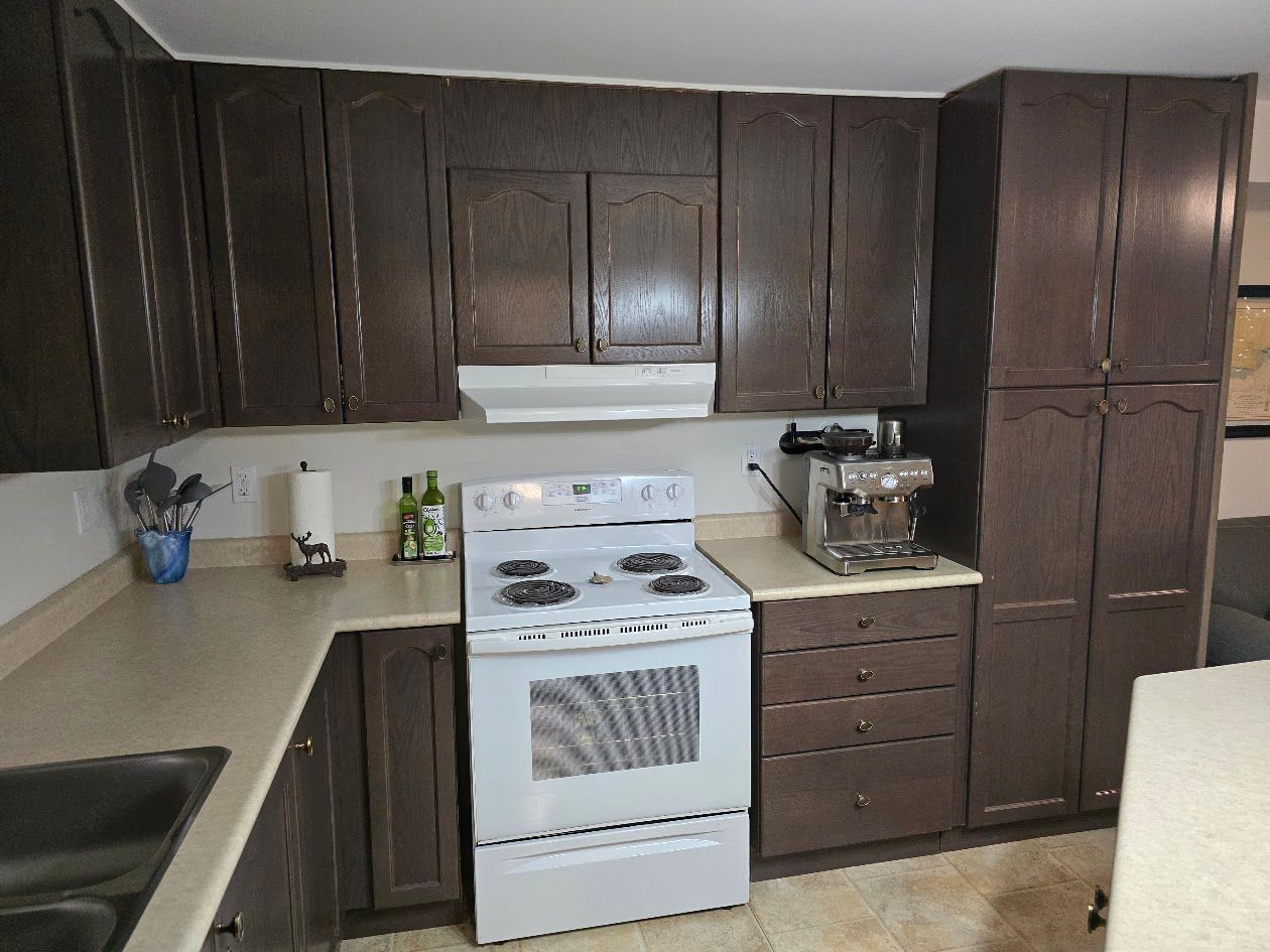 • Bright, modern kitchen with appliances included and a central island.