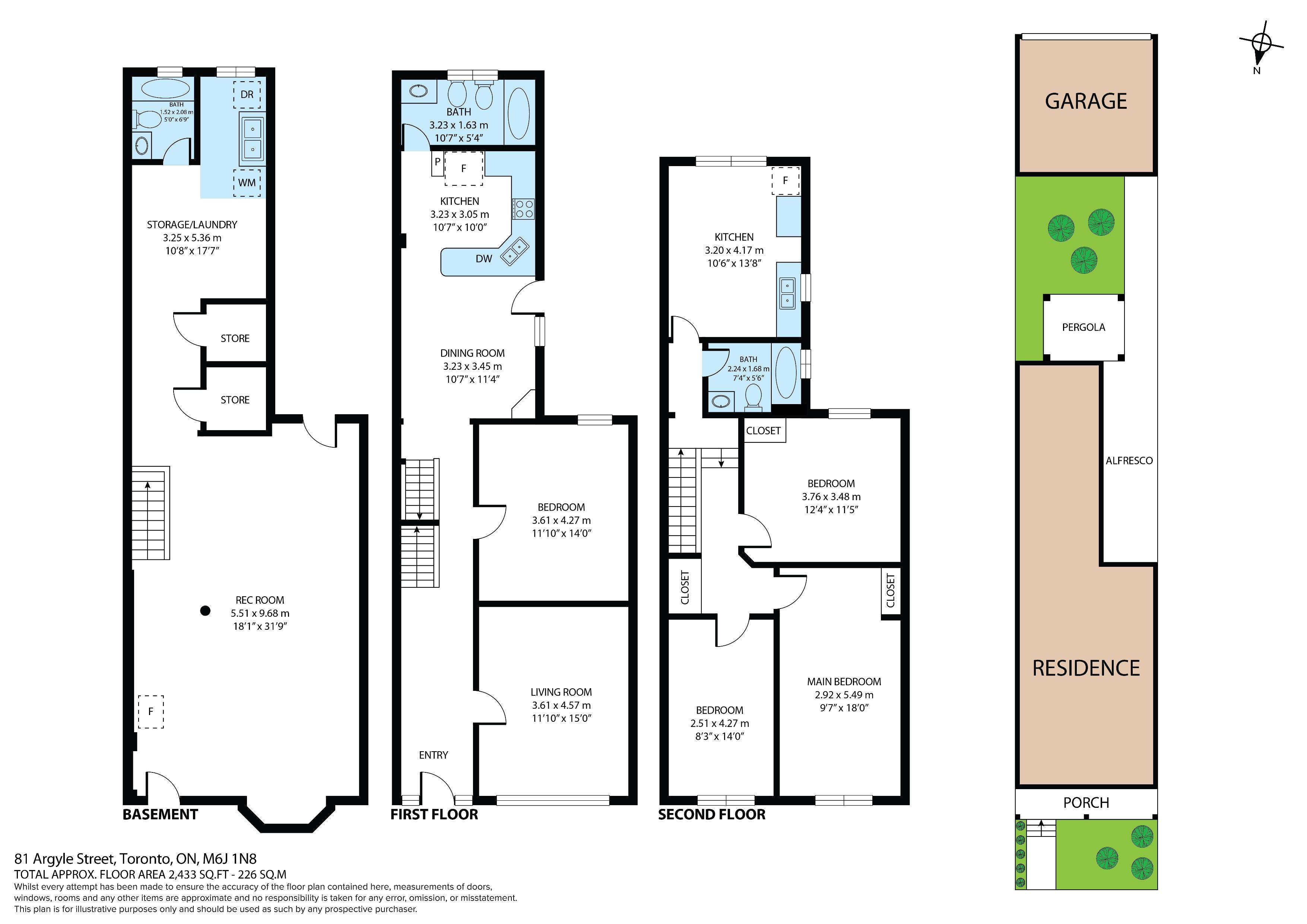 Amazing home in great location nestled in the heart of toronto, this charming home featuring 4 spacious bedrooms*main floor kitchen w/breakfast/dining area w/high ceiling and sliding glass door to covered patio & entrance to basement, good size bedroom & good size living room both do not have closets & can be used as bedrooms or dining or living rooms with high ceilings and hardwood floors and 5 pc. Bathroom*2nd floor with kitchen, 3 bedrooms with hardwood floors (1br. Has no closet) and 4 pc. Bathroom*professionally finished basement w/very big rec. Room, 4 pc. Washroom, cold room, laundry and separate entrance to private fully fenced backyard*this property offers incredible flexibility for families or those seeking rental income opportunities*double car garage through laneway providing added convenience in the city. Located near shops, trendy restaurants, and excellent transit options, this property combines comfort with urban living. Whether you're looking to move in or getting some income, 81 argyle st. Is full of possibilities!!!