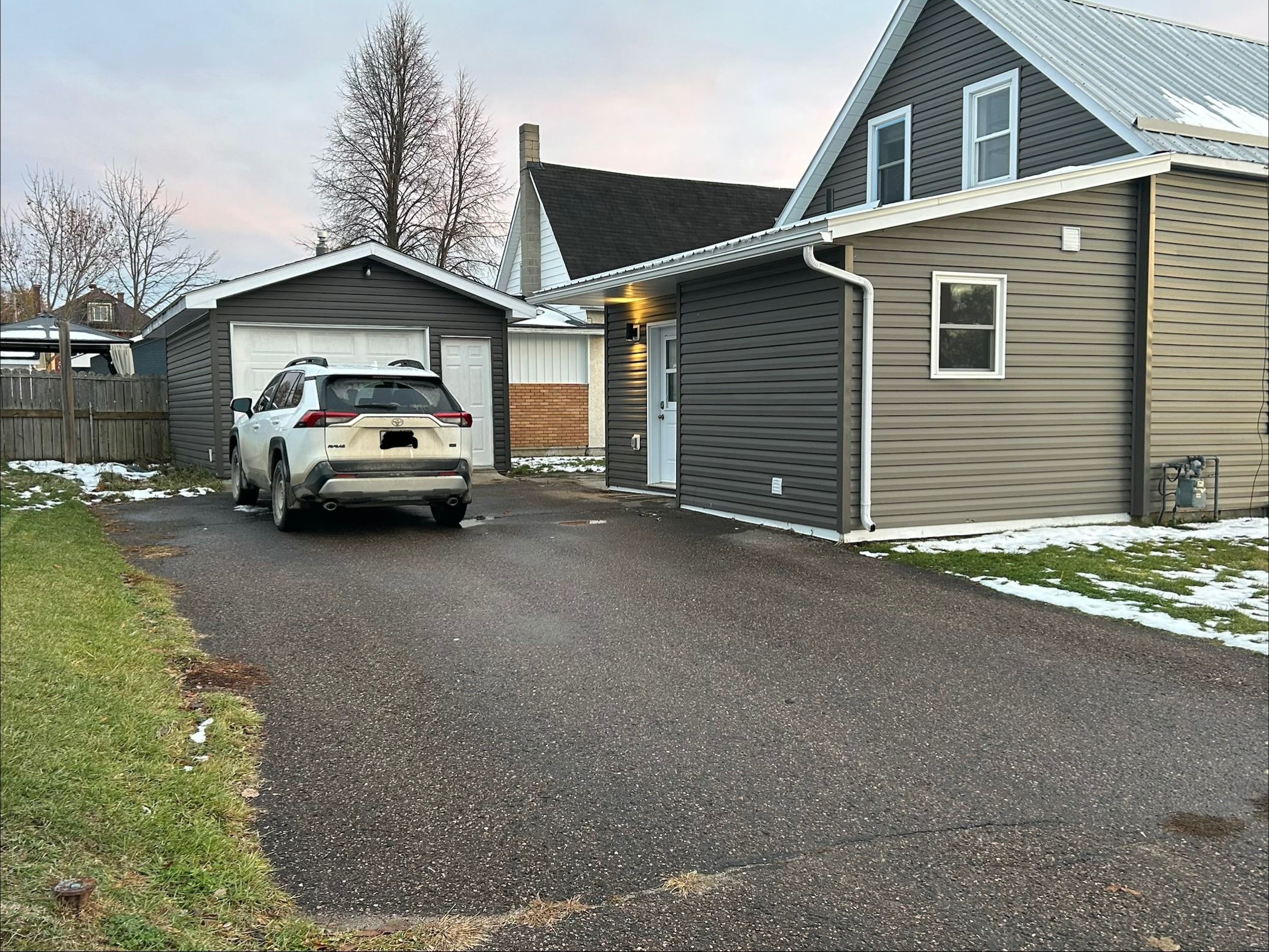 • Detached garage with extra driveway parking for multiple vehicles.