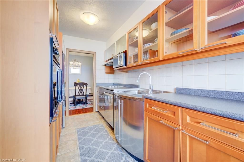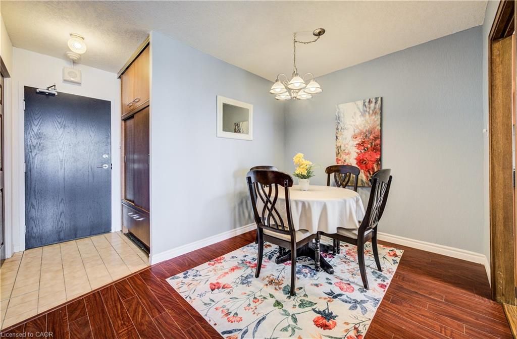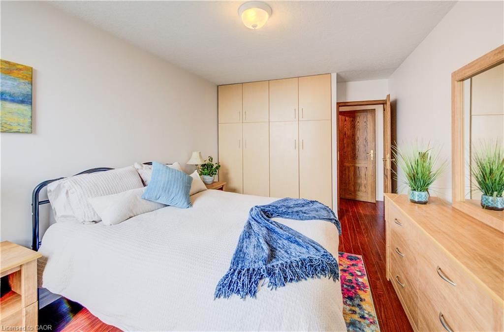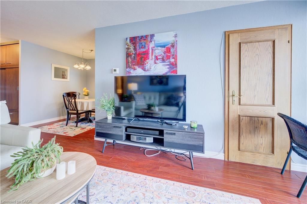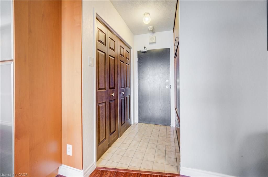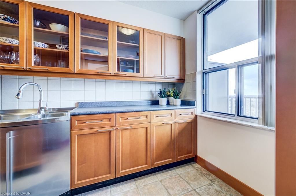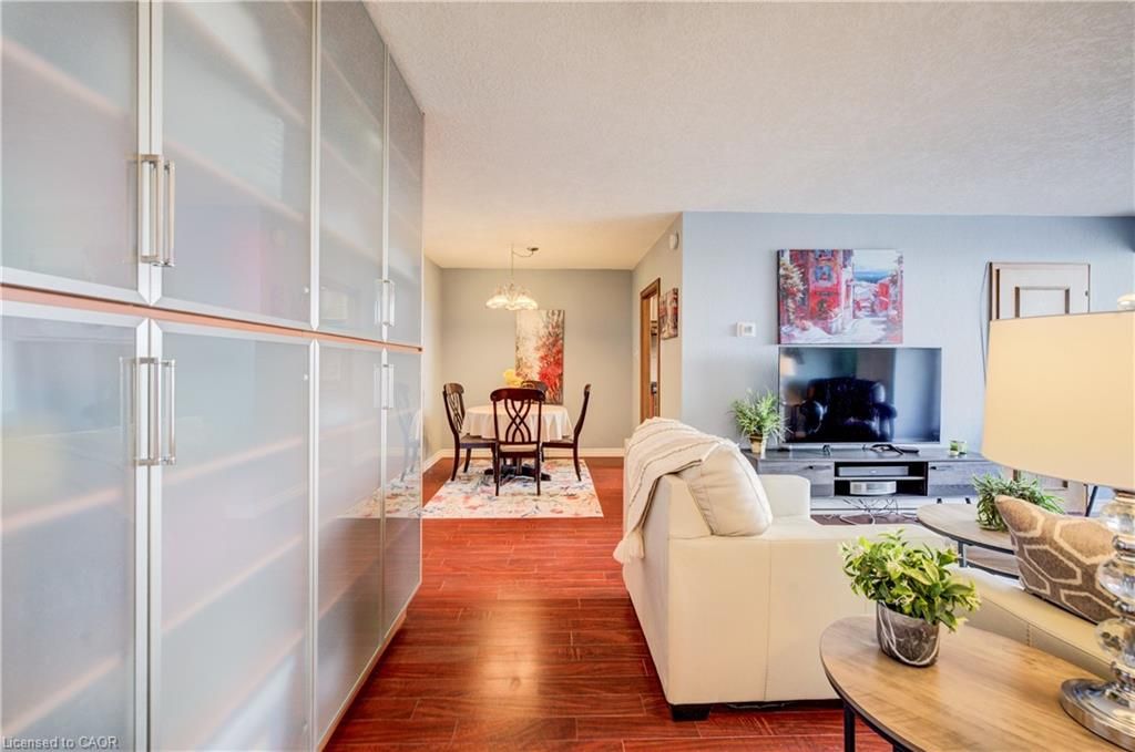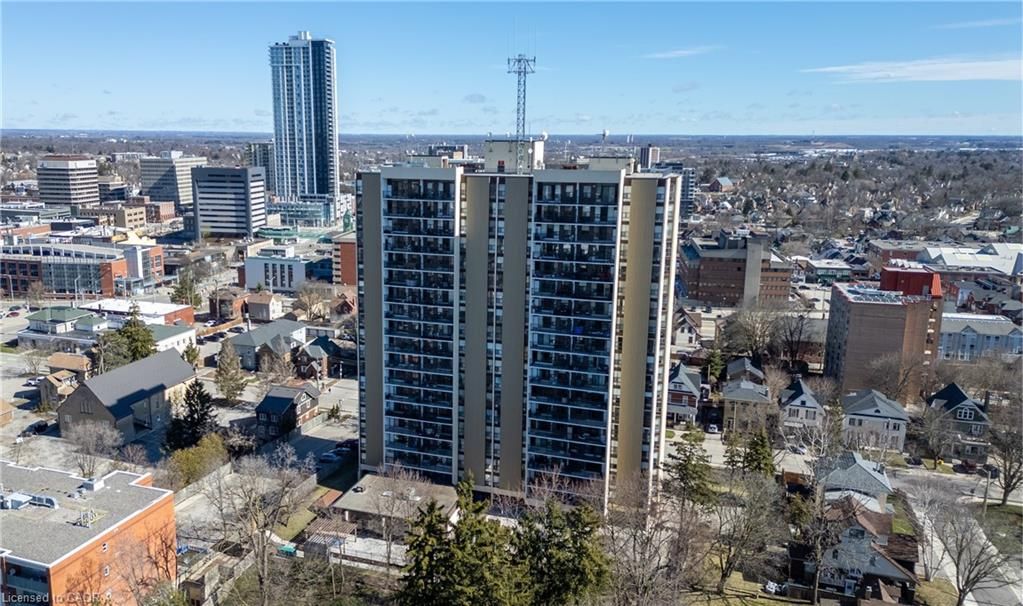 Time to stop scrolling - this is downtown living at its best! Welcome to your 14th-floor dream condo in the heart of kitchener, where luxury meets convenience and the views are absolutely unforgettable ?? This beautifully designed and truly unique two-bedroom unit offers incredible storage throughout, with built-in cabinetry in every room and distinctive oak doors that add warmth and character. The fully renovated modern kitchen features generous counter space, soft-close drawers, and an oversized sink, while sleek laminate flooring flows seamlessly throughout the entire home, creating a cohesive and contemporary feel. Enjoy the convenience of in-suite laundry and unwind on your private balcony, showcasing stunning south-facing views over a treed landscape and the city skyline-your perfect daily escape. This is the ideal right-sizing opportunity, offering a low-maintenance lifestyle with no snow to shovel, no grass to cut, and beautifully maintained flower beds to enjoy year-round. The building features exceptional resort-style amenities, including an inground pool, sauna, a party room with full kitchen and pool table, a fully equipped fitness room, and a stunning outdoor patio area complete with tables and a bbq-perfect for entertaining or relaxing outdoors. Underground parking and a storage area in a common locker room add extra convenience. Ideally located just steps to the lrt, kitchener market, shopping, schools, and all that downtown has to offer, this condo delivers an elevated lifestyle in an unbeatable location to be able to walk to all the downtown festivals and victoria park.