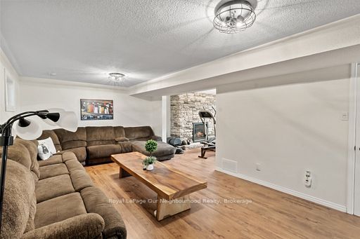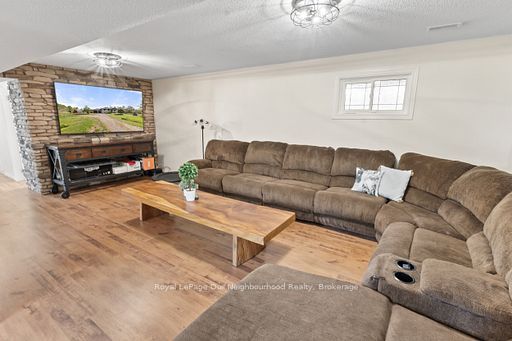 • Bright lower level with multiple living spaces and a cozy gas fireplace.