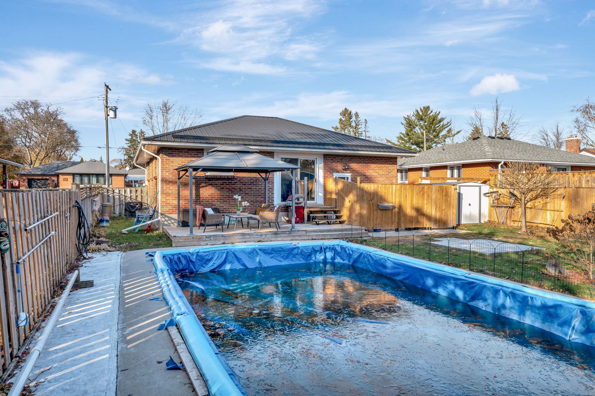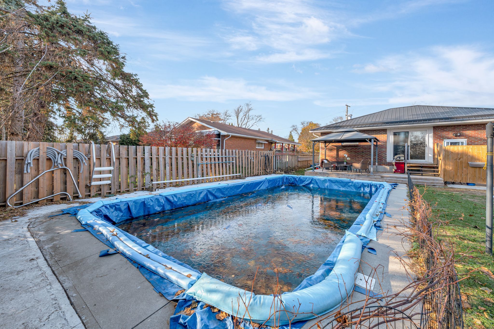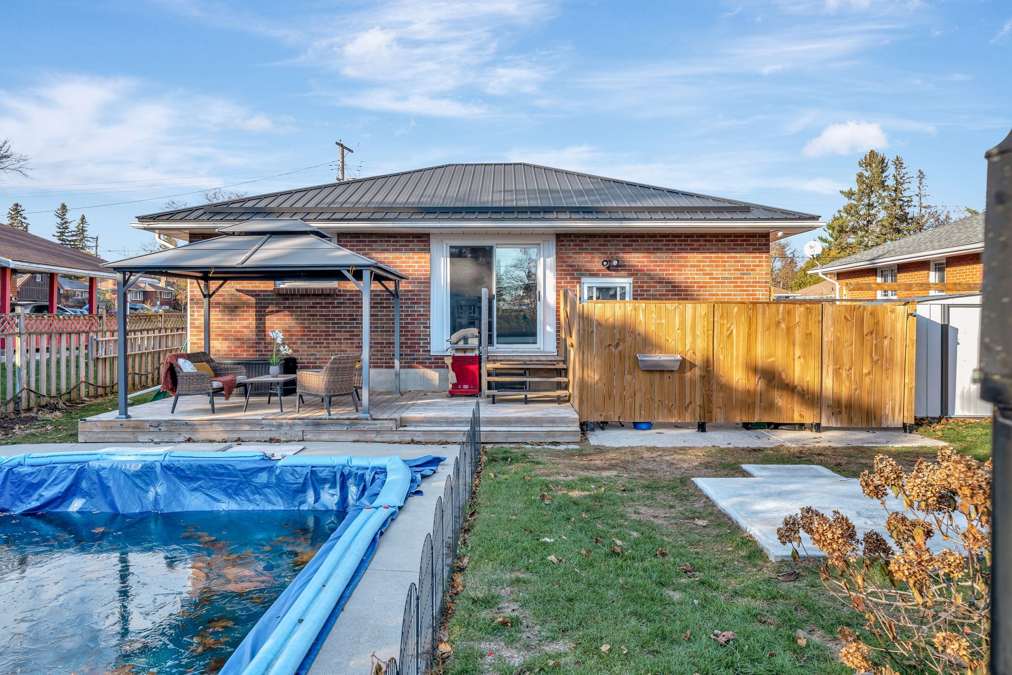 Nestled on one of belleville's most desirable east end streets, this fully brick updated bungalow with 2+1 bedroom, 2-bathroom home effortlessly blends classic charm with modern upgrades. A new bright, inviting eat-in kitchen features lots of cabinetry, granite countertops, a stylish backsplash, updated vinyl flooring, and glass doors that open directly to a private, fully fenced backyard-perfect for summer entertaining. The main living room is bathed in natural light from a large picture window and original hardwood flooring creating a warm and welcoming space to relax and watch your favourite show. Two generously sized bedrooms and a completely updated 4-piece bathroom complete the main level. The fully finished lower level has been recently renovated to accommodate a versatile in-law suite with a separate entrance, one bedroom, a 3-piece bathroom, and kitchenette. This space can also be opened up (just a temporary wall) to an open concept recreation room with a cozy gas fireplace for private enjoyment. The new laundry laundry space (with new washer and dryer), and an additional storage room is perfect for multigenerational living or supplement your mortgage with the tenant who currently lives in part of the basement (new apartment). Step outside to your backyard oasis, featuring an 18' x 36' in-ground pool, with concrete decking, expansive green space for children, pets, or gardening, and a private gazebo with a comfortable seating area for relaxing or entertaining. Located in a quiet, family-friendly neighbourhood, on a dead-end street close to great schools, parks, and everyday amenities. A well-built home that combines comfort, convenience, and lifestyle.. And so many recent updates! (new kitchen, bathroom, basement, metal roof, in-ground pool & newly paved driveway, just to mention a few) don't miss the opportunity to own this exceptional property on an over-sized lot in belleville's sought after east-end.