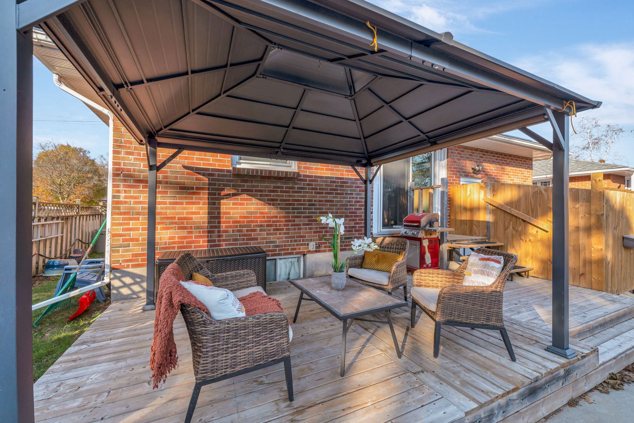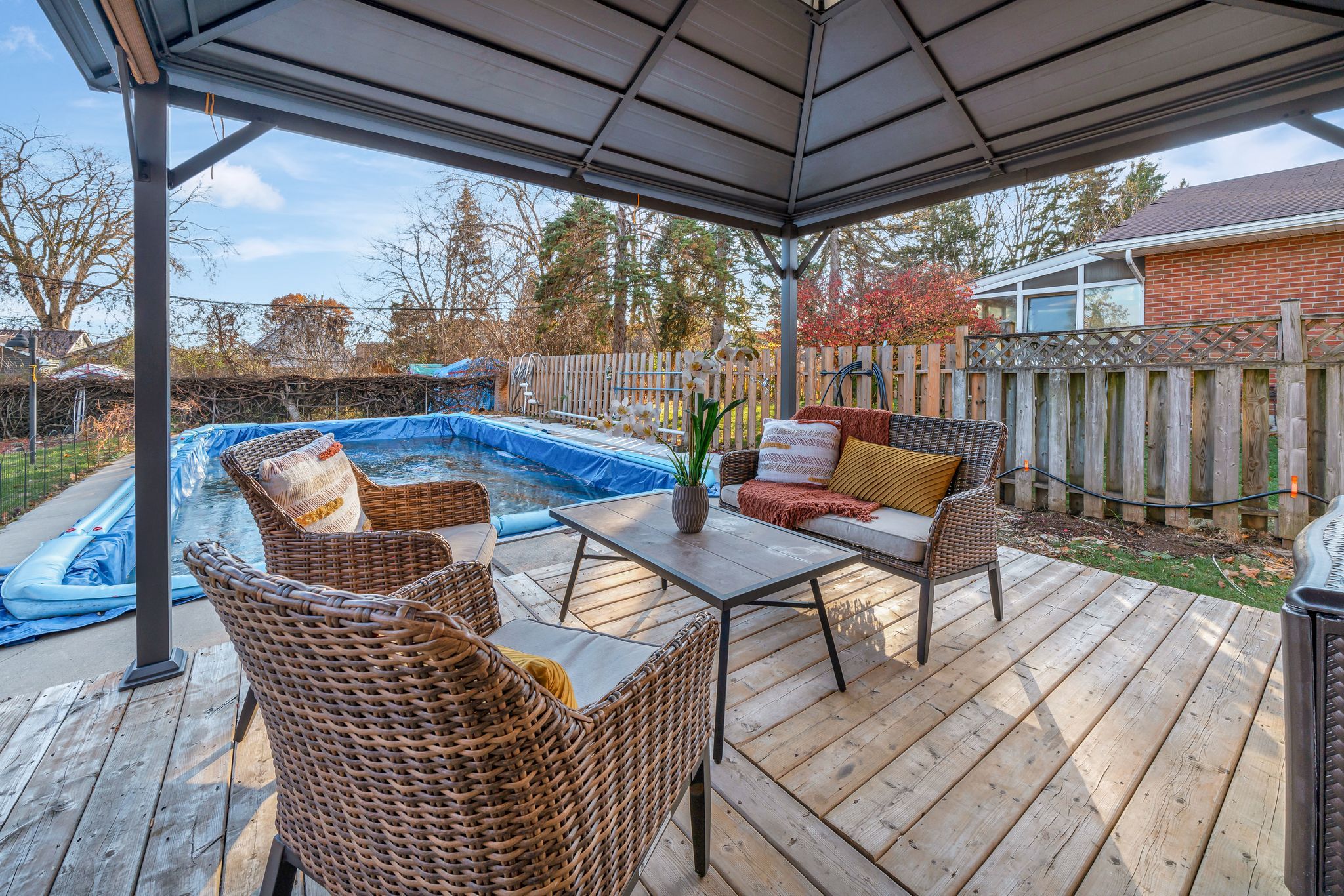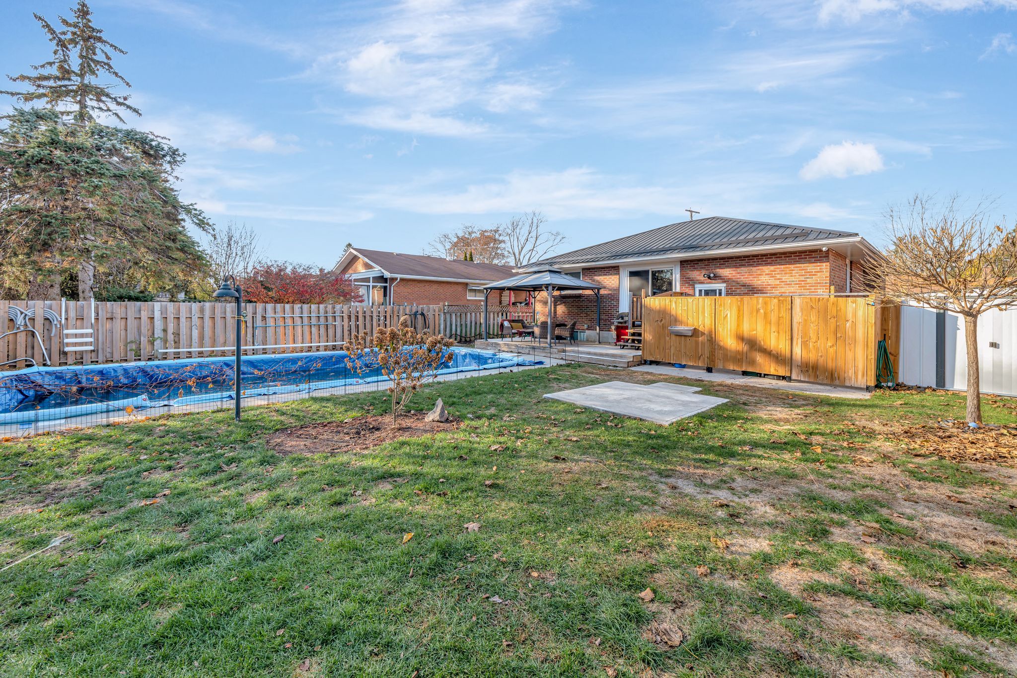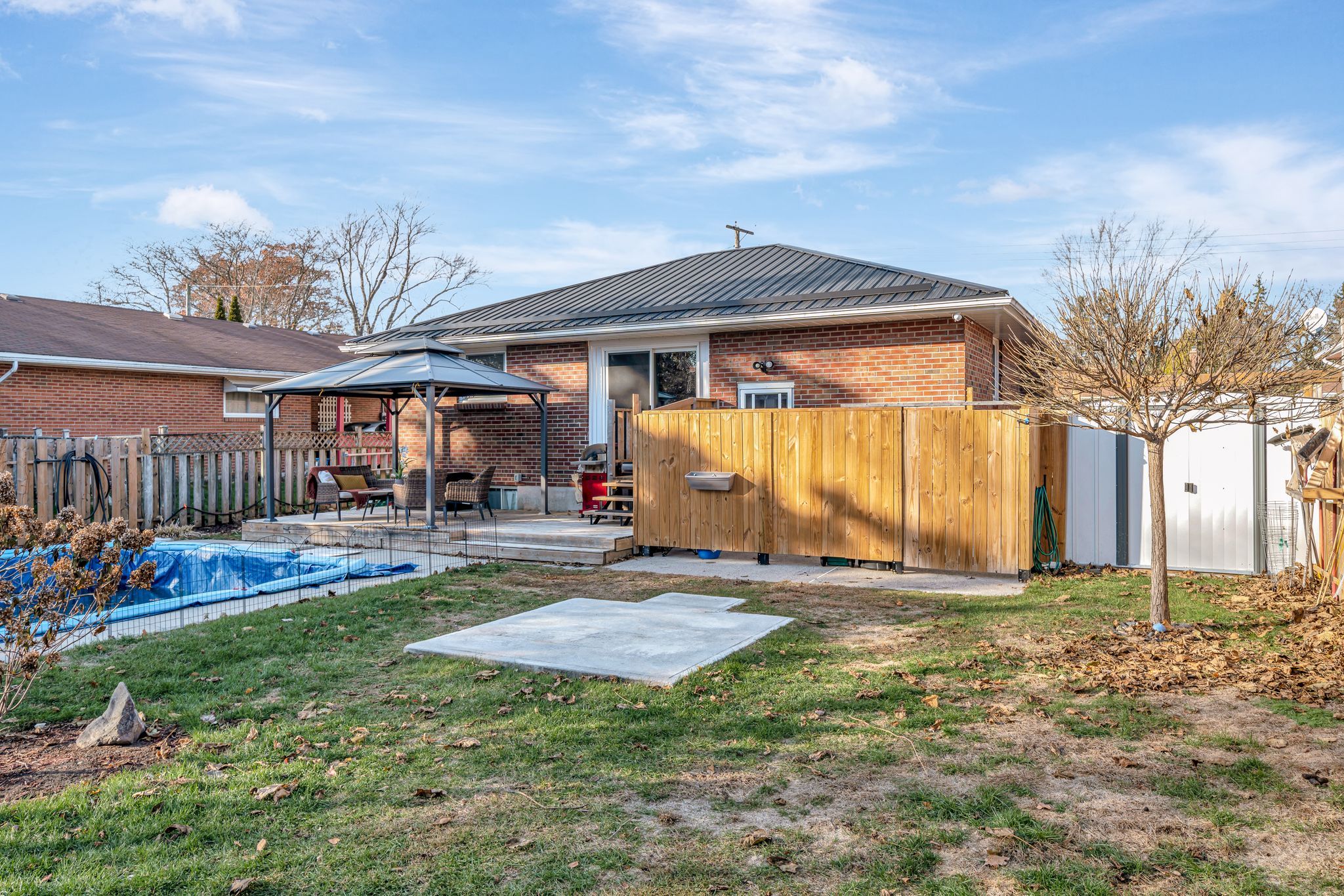 Nestled on one of belleville's most desirable east end streets, this fully brick updated bungalow with 2+1 bedroom, 2-bathroom home effortlessly blends classic charm with modern upgrades. A new bright, inviting eat-in kitchen features lots of cabinetry, granite countertops, a stylish backsplash, updated vinyl flooring, and glass doors that open directly to a private, fully fenced backyard-perfect for summer entertaining. The main living room is bathed in natural light from a large picture window and original hardwood flooring creating a warm and welcoming space to relax and watch your favourite show. Two generously sized bedrooms and a completely updated 4-piece bathroom complete the main level. The fully finished lower level has been recently renovated to accommodate a versatile in-law suite with a separate entrance, one bedroom, a 3-piece bathroom, and kitchenette. This space can also be opened up (just a temporary wall) to an open concept recreation room with a cozy gas fireplace for private enjoyment. The new laundry laundry space (with new washer and dryer), and an additional storage room is perfect for multigenerational living or supplement your mortgage with the tenant who currently lives in part of the basement (new apartment). Step outside to your backyard oasis, featuring an 18' x 36' in-ground pool, with concrete decking, expansive green space for children, pets, or gardening, and a private gazebo with a comfortable seating area for relaxing or entertaining. Located in a quiet, family-friendly neighbourhood, on a dead-end street close to great schools, parks, and everyday amenities. A well-built home that combines comfort, convenience, and lifestyle.. And so many recent updates! (new kitchen, bathroom, basement, metal roof, in-ground pool & newly paved driveway, just to mention a few) don't miss the opportunity to own this exceptional property on an over-sized lot in belleville's sought after east-end.