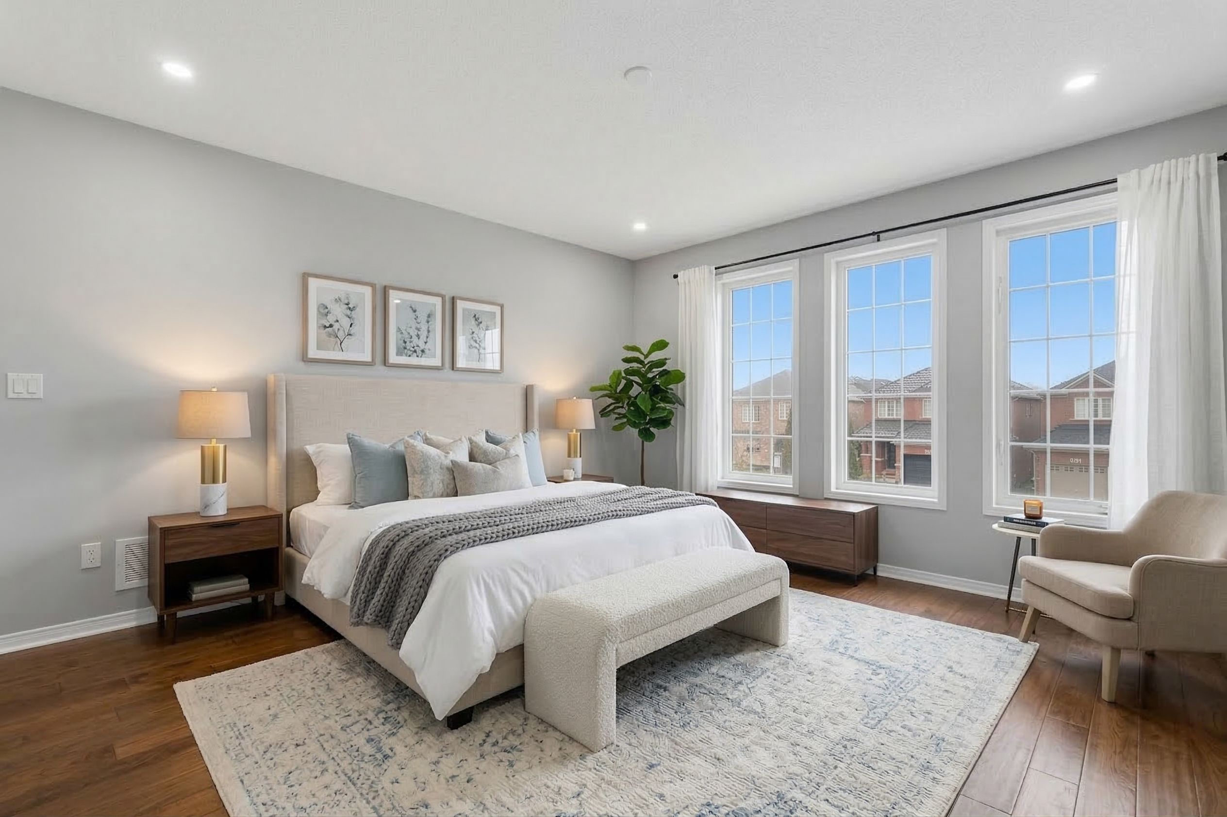 • Luxurious master bedroom with ensuite and additional bedrooms upstairs.