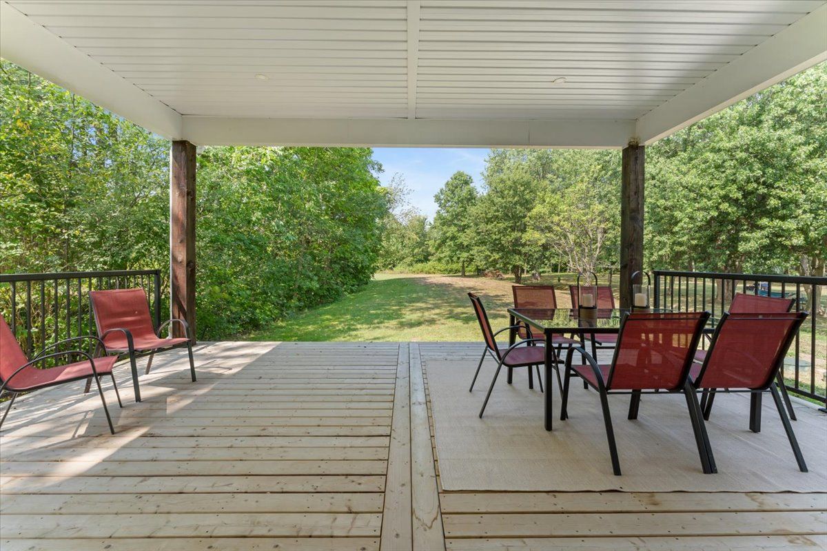 • Covered deck offers serene views, ideal for relaxation and entertaining.