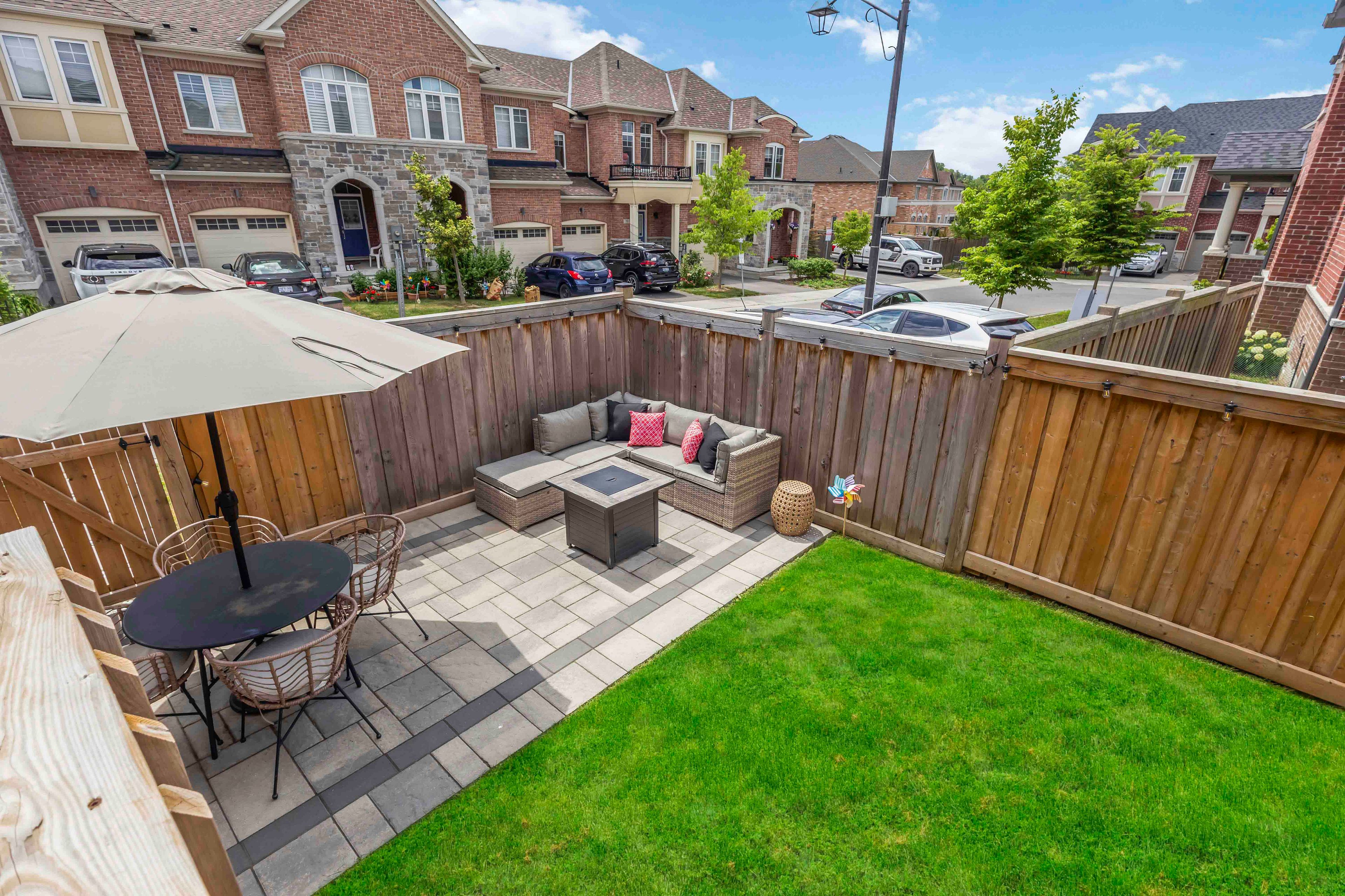 Stunning freehold corner townhome - like a semi! Perfect for growing families or downsizers alike -without compromising space or functionality. Flooded with natural light this 4-bedroom home features a main floor office, and it blends style and function effortlessly. Nearly 2,000 sq. Ft. Featuring unobstructed sunset views from both the living room and primary bedroom. The exterior has been fully upgraded with $50k in interlocking, a grand wrap-around entrance, landscaped gardens, and 2 side-by-side parking spots. Inside, enjoy carpet-free living with upgraded hardware throughout, professionally designed custom paneling and closets, chic light fixtures, and newer upgraded stainless steel appliances. The convenient second-floor laundry room adds extra functionality. The fully fenced backyard is designed for balance--half inter locked, half green space--perfect for entertaining or relaxing. The basement offers in-law suite or rental income potential, adding long-term value. **location, location, location.**steps to top-rated schools, community centre, trails, parks, and all amenities including upper canada mall, costco, the go station, and both hwys 400 and 404!
