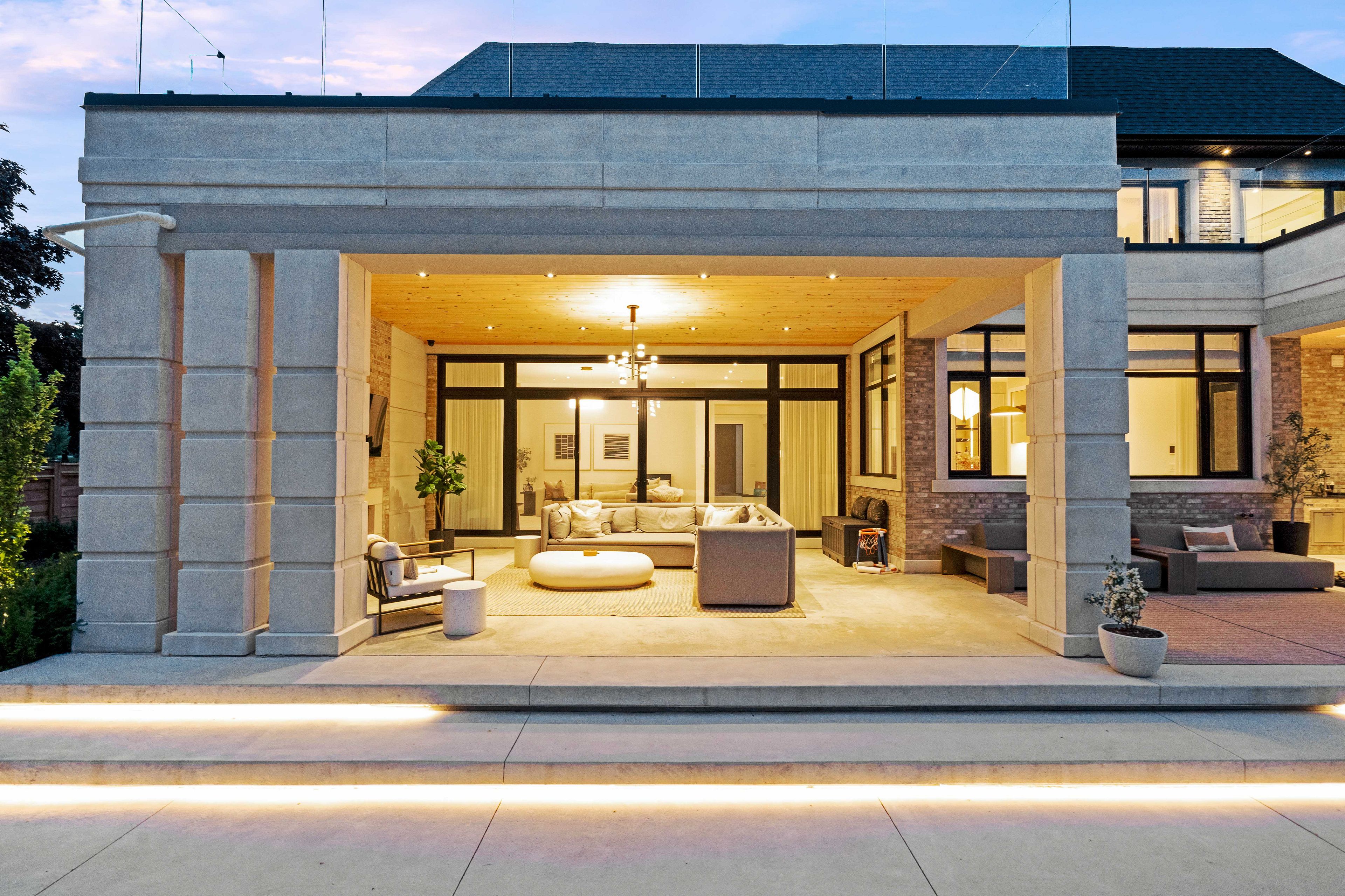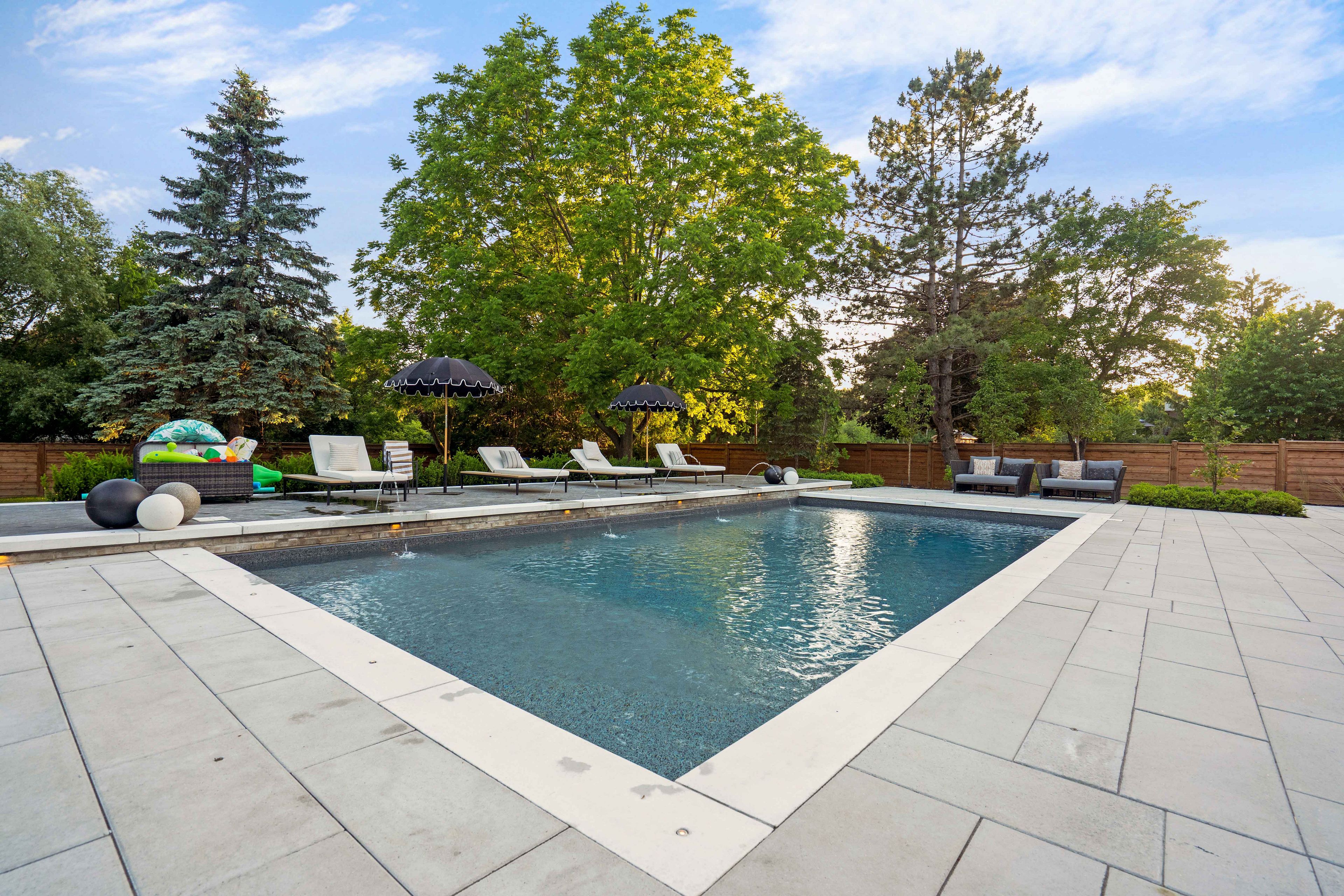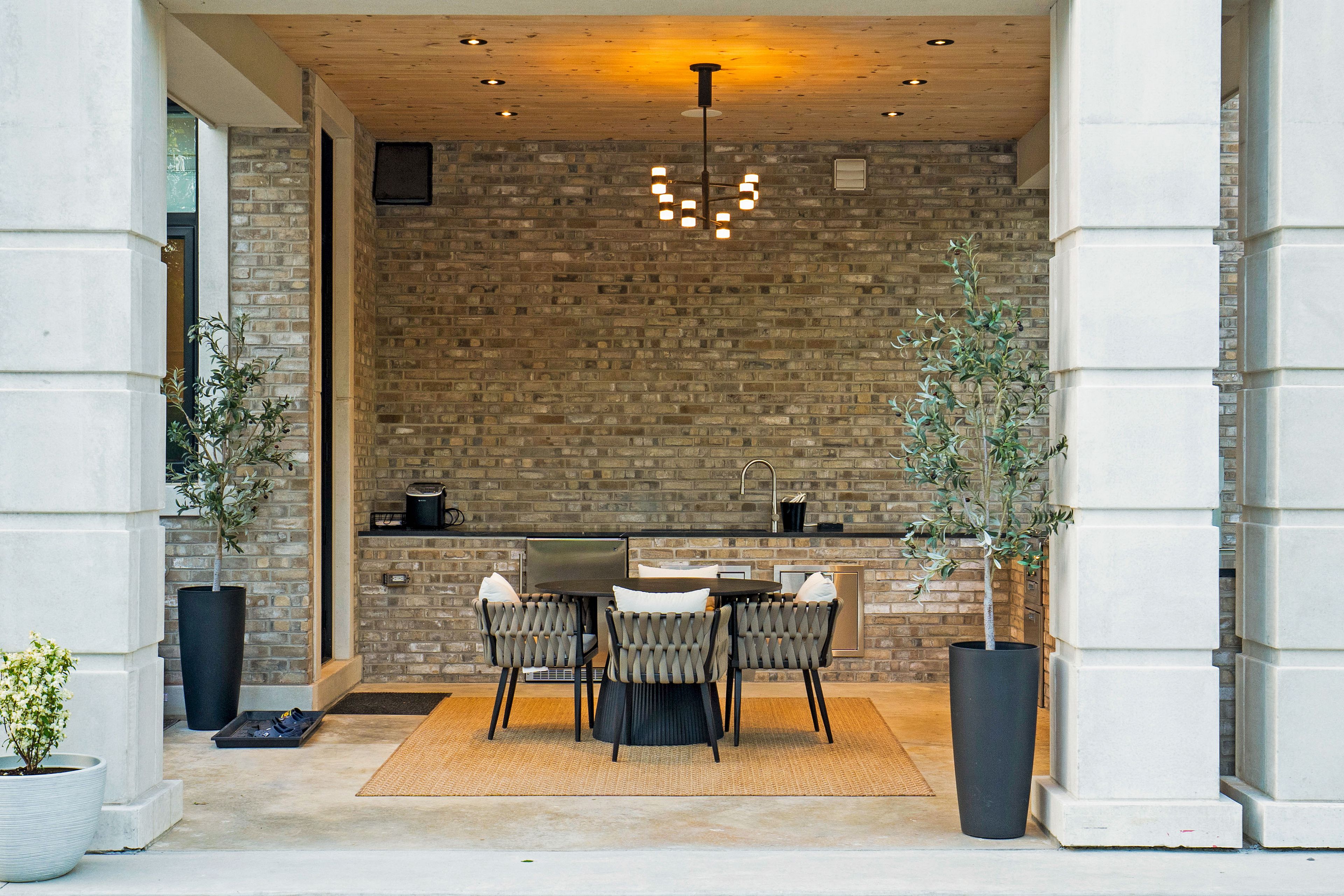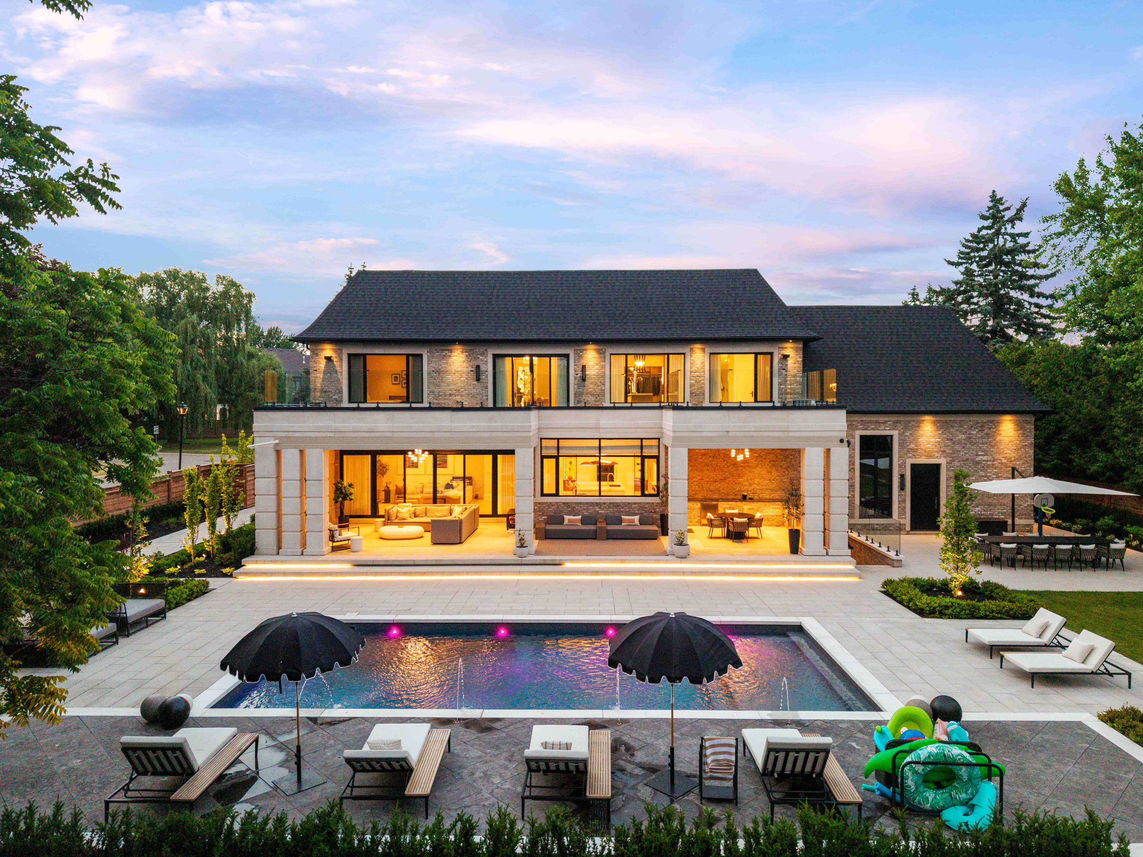 • Outdoor space with saltwater pool, kitchen, and loggias for entertaining.