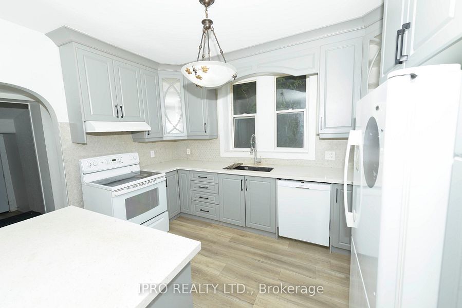 Spacious 4 bedroom unit of the main floor for rent. As you enter, you are greeted by a large and welcoming foyer. The entire space is bright and airy with raised ceilings throughout. It boasts laminate flooring in all rooms. Newly renovated kitchen with large kitchen island, plenty of cupboard space. Open-concept living areas. Each bedroom is generously sized, providing ample space for a growing family. Located in a quiet, friendly neighbourhood close to schools, parks, and shopping, this home is a must-see!! 2 outdoor parking spaces!! Tenant is responsibel for all utilities: hydro is seperately metered from other units. Gas and water will be split 70% for this unit and 30% for the basement unit (occupied by 2 people).