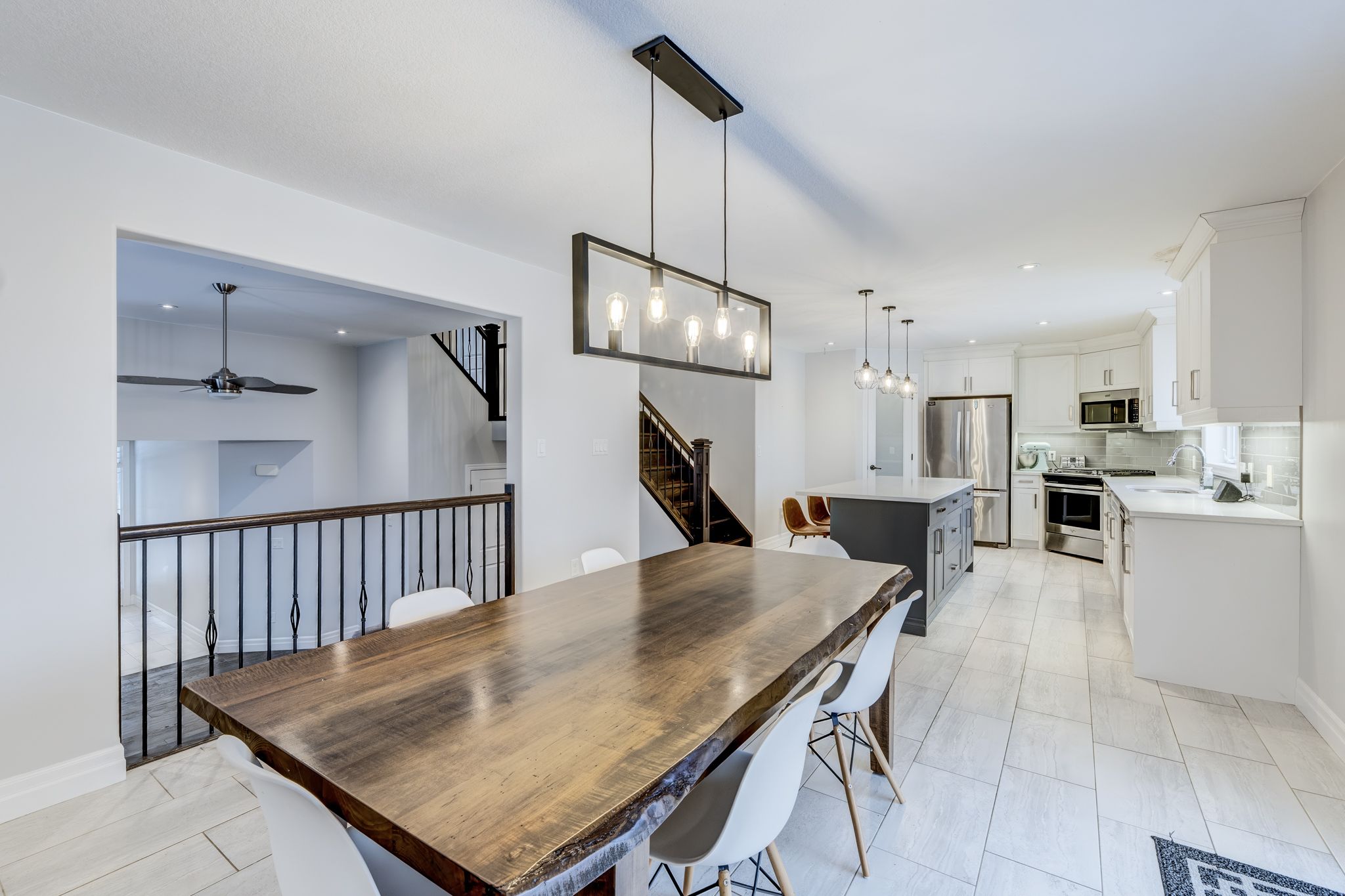 Imagine your kids running through the gate to the park, family dinners on the deck, and coming home each day to space that truly fits your life. This beautifully designed multi-level residence blends comfort, functionality, and an exceptional outdoor lifestyle. The heart of the home is the oversized kitchen with crisp white and soft grey cabinetry and quartz countertops-perfect for busy mornings, family dinners, and weekend gatherings. A spacious foyer opens to a bright living room anchored by a striking floor-to-ceiling stone gas fireplace, creating a warm and welcoming place to unwind. The primary suite offers a peaceful retreat with a spa-inspired ensuite featuring a deep soaker tub and custom glass shower. Three additional generous bedrooms and a full bath provide plenty of room for family and guests. The fully finished basement adds flexible space for movie nights, playrooms, or quiet time. Step outside to an oversized, fully fenced backyard with gated access to hilltop park, where kids can play freely and outdoor entertaining is effortless on the two-tier deck. The 3-car garage includes an ev charger, ideal for commuters and future-ready families. Backing onto open parkland in a friendly, family-focused neighbourhood, this is a home built for making memories.