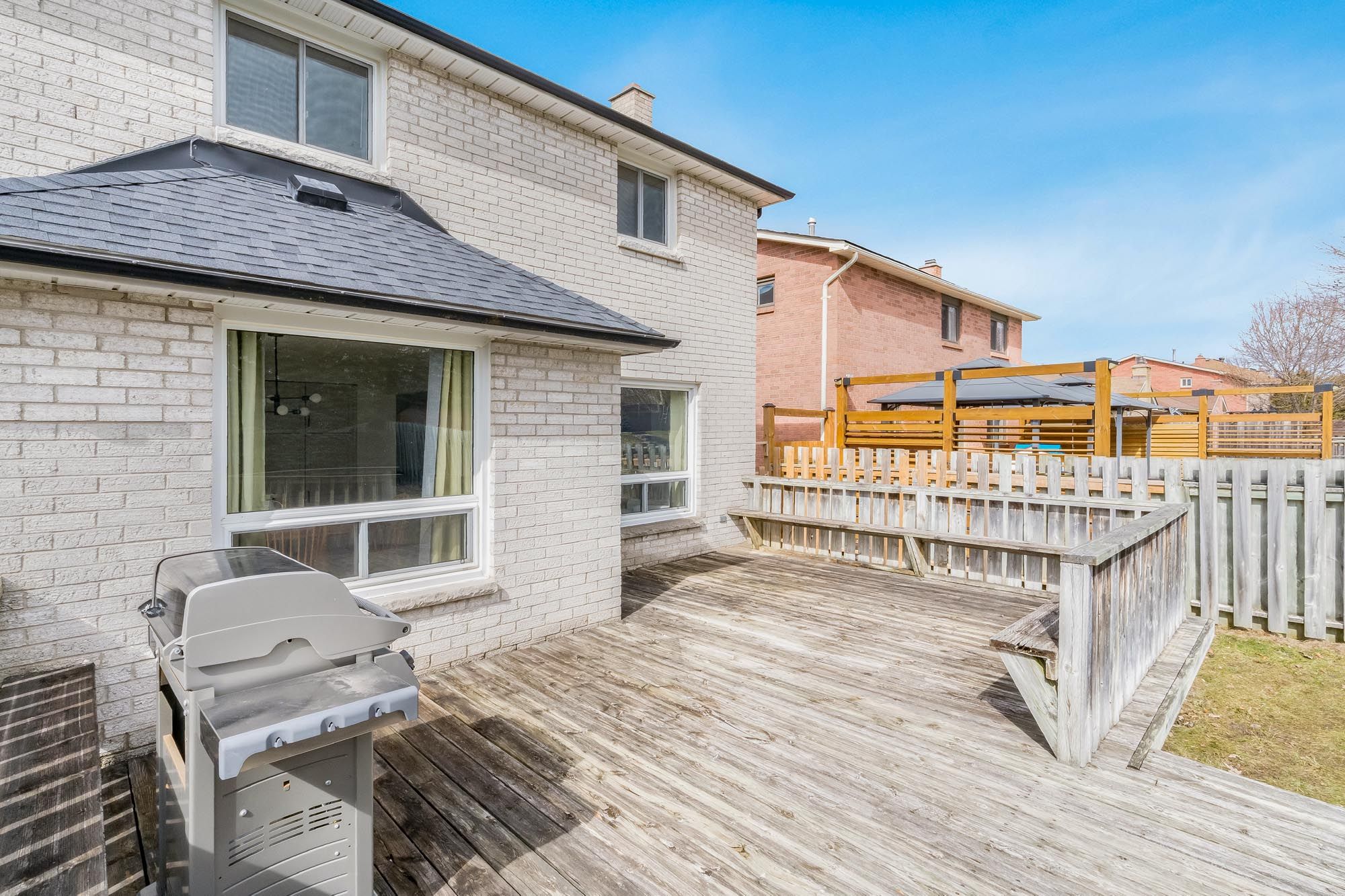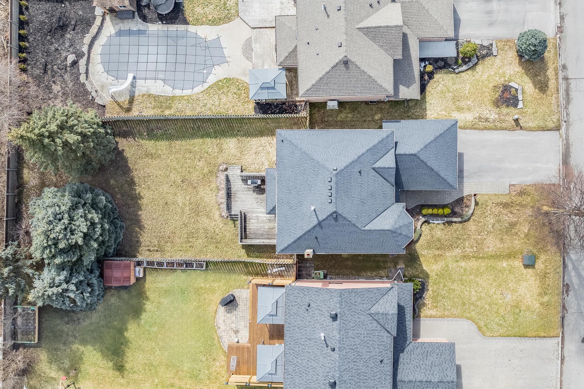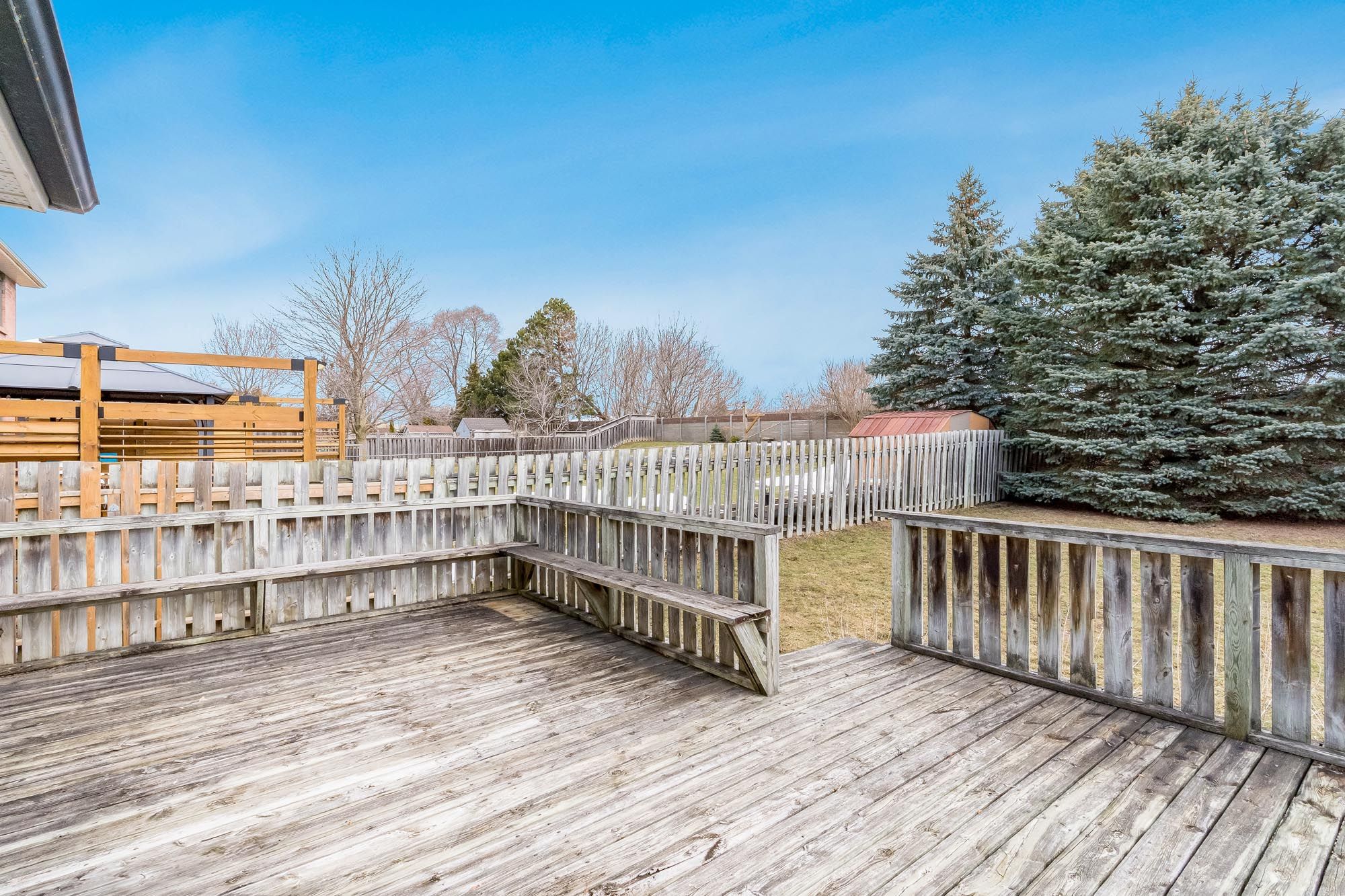 • Expansive yard offers privacy and space for relaxation or play.