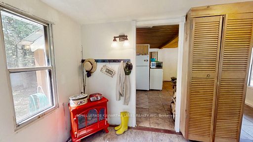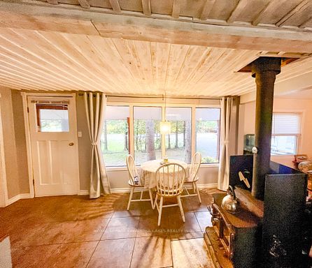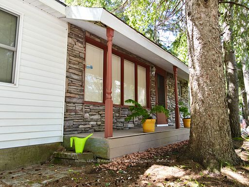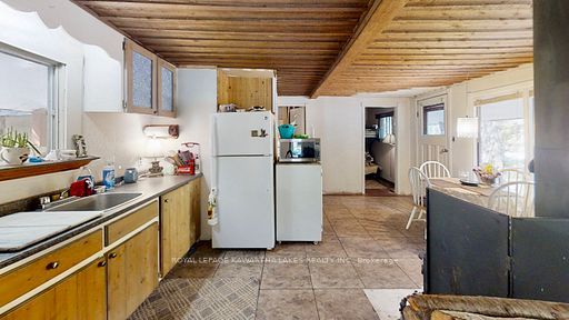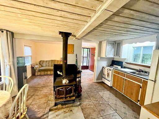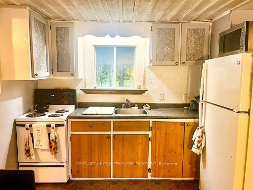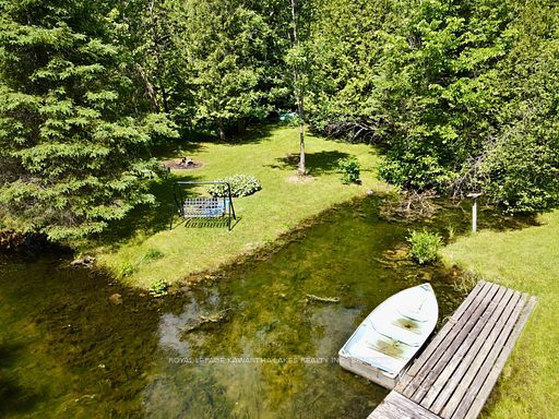 A serene retreat on the trent-severn waterway! Escape to nature with this charming 2-bedroom cottage tucked among mature trees on the trent-severn waterway. Located in the heart of kawartha cottage country, this peaceful getaway offers scenic river views and a relaxed, cottage-country lifestyle that is perfect for weekend retreats (including cozy winter visits)! The open-concept layout features a spacious kitchen with water views, a warm and inviting living room with a wood stove, and a 3-piece bathroom. The property includes a steel roof, vinyl siding, and tasteful interior finishes including vinyl flooring and wood ceilings. Step outside to enjoy your coffee on the front porch, barbecue beneath the trees, or gather around a campfire under the stars. The lot includes a fresh gravel driveway, two storage sheds (one with potential as a bunkie), and a large cement holding tank installed in 2021. Water is drawn from the river, and a shared spring offers added convenience. Enjoy year-round accessibility with municipally maintained roads in all four seasons. Located minutes from the historic kirkfield lift lock, and just a short drive to orillia or the gta, this property is your ideal seasonal escape. Please note: this property is on leased land from parks canada ($2,813/year). Four-season living and short-term rentals are not permitted. Seller will only consider full-price offers.