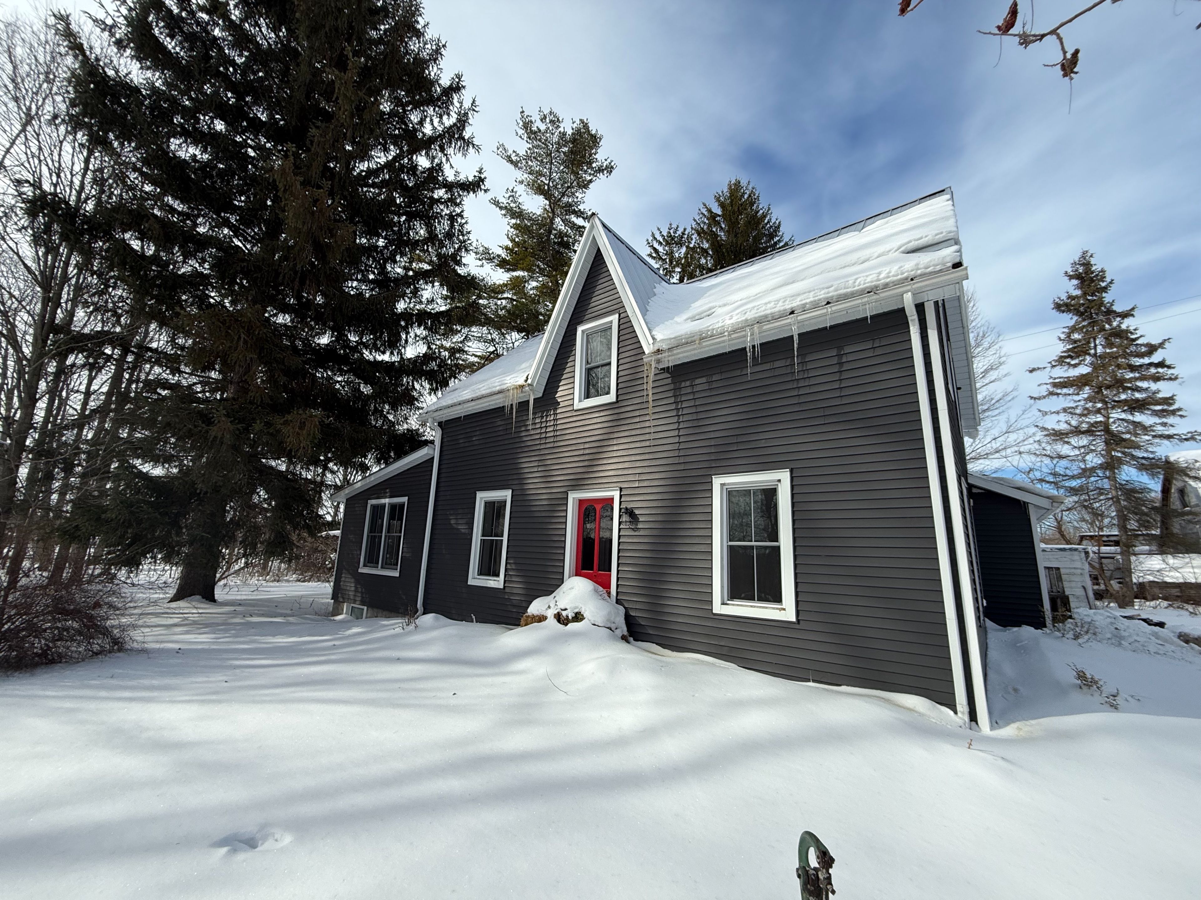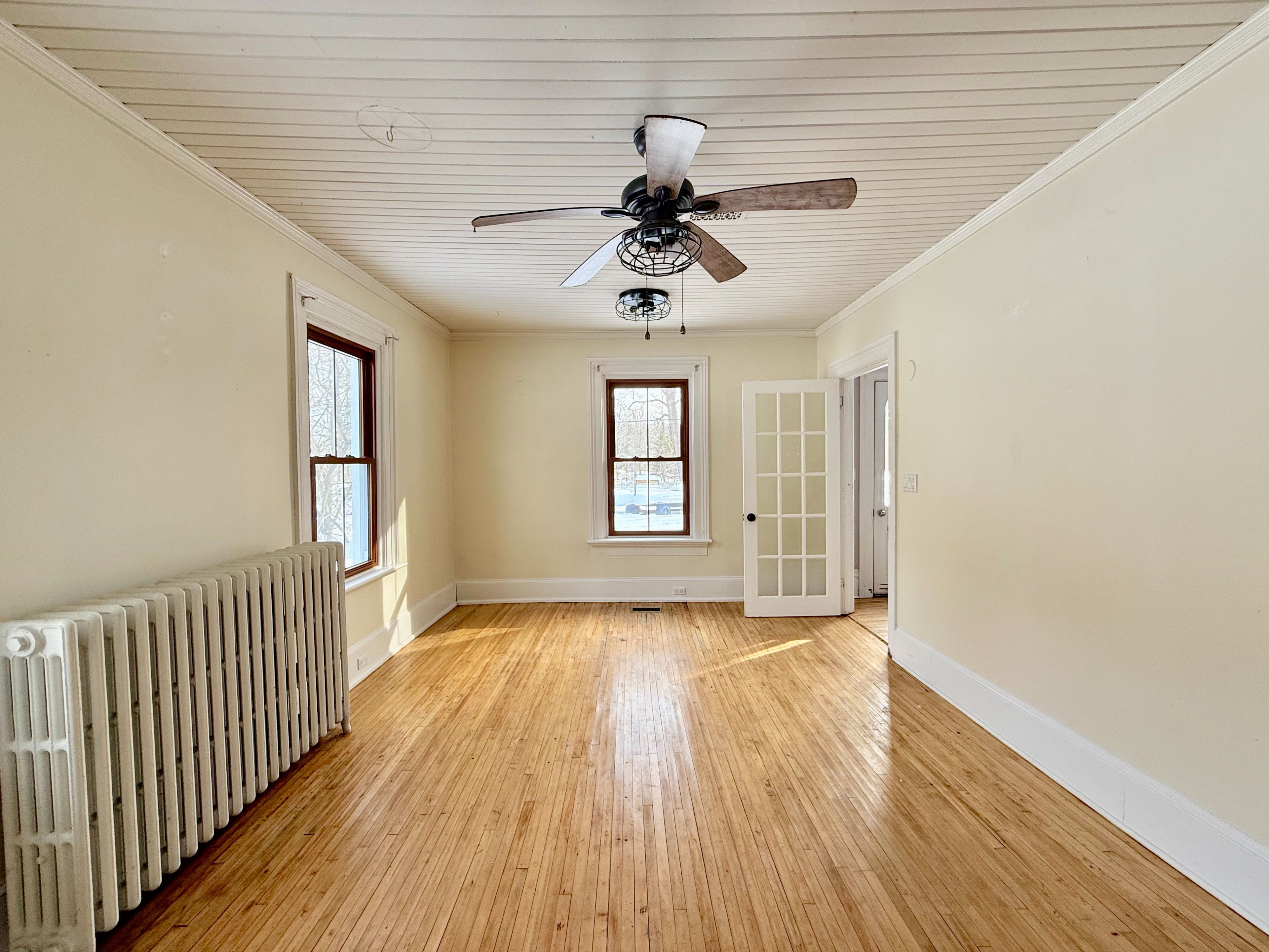 Welcome to this beautifully updated century farmhouse set on 8 acres of organic farmland. Blending timeless character with modern, bright finishes, this 3-bedroom, 2 full-bath home offers the warmth of a true family residence with thoughtful upgrades throughout. The main level features a spacious living room with walk-out access, creating seamless indoor-outdoor flow, along with a large private dining room complete with a built-in buffet bar - perfect for hosting family dinners and gatherings. Sun-filled living spaces and clean contemporary updates enhance the home's historic charm. Comfort is elevated with in-floor radiant heat and a boiler system, providing efficient, even warmth year-round - a rare and valuable feature in a century home. The surrounding 8 acres are home to a well-known organic vegetable farmer, operated by a land-lease tenant who runs a seasonal farm stand at the edge of the property. This unique setting offers the opportunity to live immersed in a working organic farm environment while enjoying privacy and the beauty of open countryside. The owners are seeking a long-term tenant who will appreciate the atmosphere of shared land stewardship and the lifestyle that comes with living on a respected organic farm property. A rare lease opportunity combining space, character, comfort, and authentic rural living. Heat + hydro & internet are to be paid by tenant, starlink internet installed.