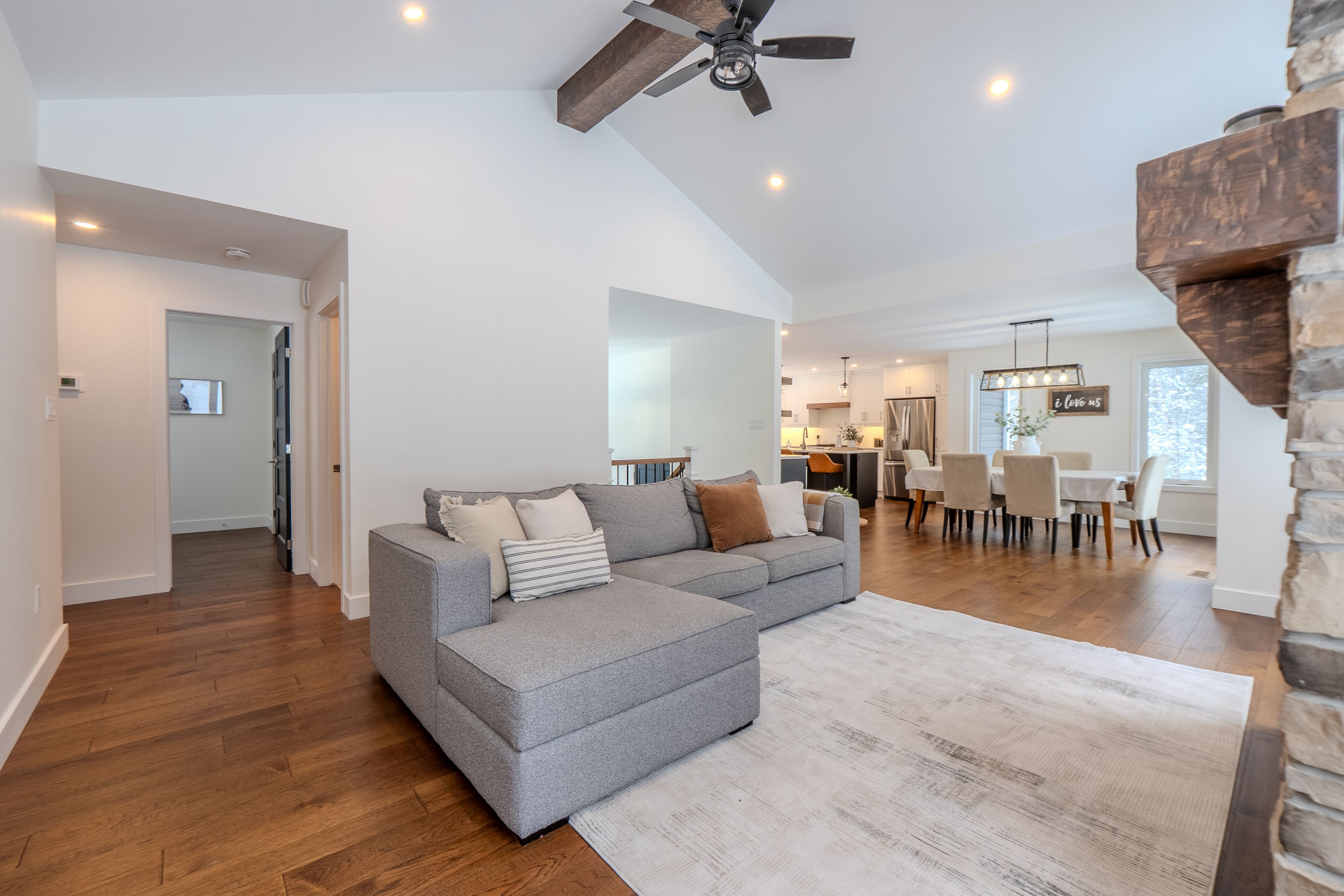Welcome to 81 oakridge drive, a 2022 custom degagne carpentry build set on a private, treed 1. 7 acre lot, offering refined country living just minutes from city limits. Enjoy access to 130+ acres of shared greenspace with trails, plus an additional 800 acres of crown land. This 2+2 bedroom, 2. 5 bath home blends thoughtful design with elevated finishes for a truly move-in-ready lifestyle. A covered front entrance opens to a welcoming foyer and bright, open-concept main floor ideal for everyday living and entertaining. The living room features vaulted ceilings, engineered hardwood, and a propane fireplace for added warmth and comfort. The spacious kitchen offers stainless steel appliances, quartz countertops, under-counter lighting, a pantry, and seamless flow to the dining area. The main-floor primary suite includes a 3-piece ensuite and patio doors to the private backyard. A second main-floor bedroom with walk-in closet adds flexibility. The fully finished lower level features two additional bedrooms, a spacious rec room, and a spa-like 4-piece bath with soaker tub and heated towel rack, plus laundry and utility room with ample storage. Additional highlights include forced-air propane heating, central air, built-in soffit lighting front and back, detached 1. 5-car garage with trailer plug-in, outdoor bar area and an outdoor lovers dream backyard. A high-end home offering privacy, quality, and comfort in a friendly community.