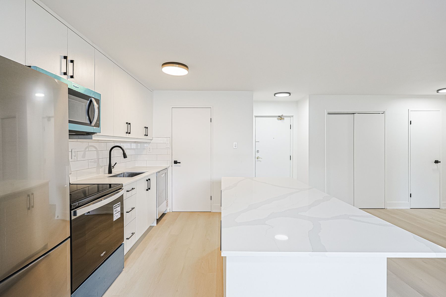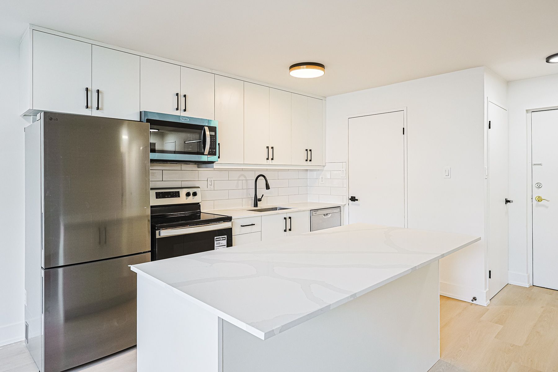 Newly renovated with a modern design and stylish touches, this bright, clean, and quiet unit is located in a well-maintained building on a peaceful street. It offers convenient access to all amenities, including schools, banks, and shopping.