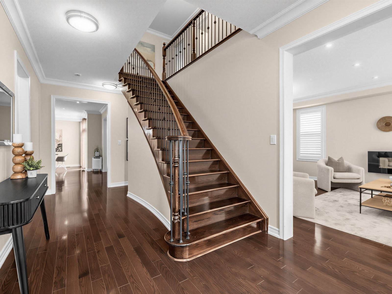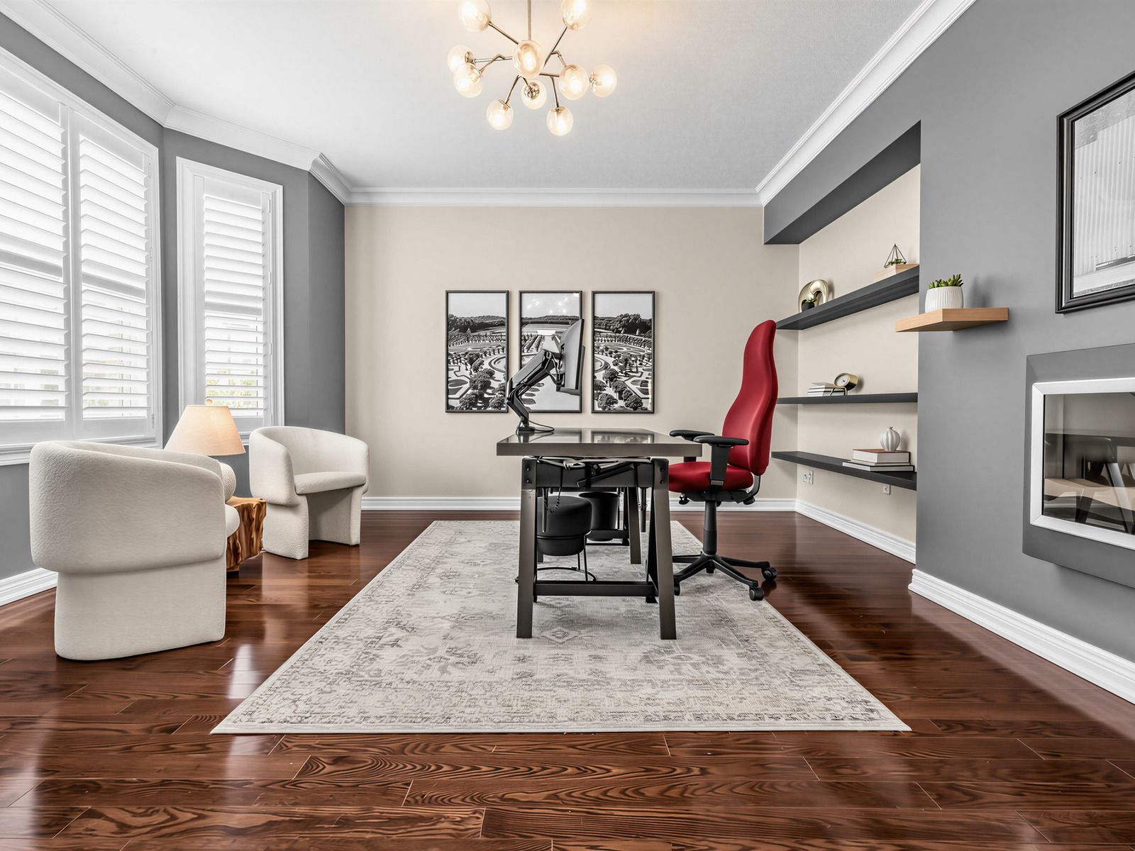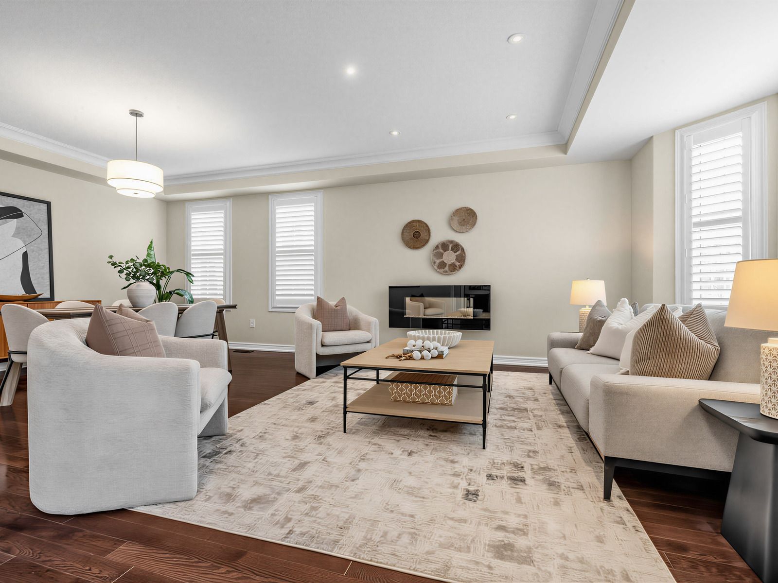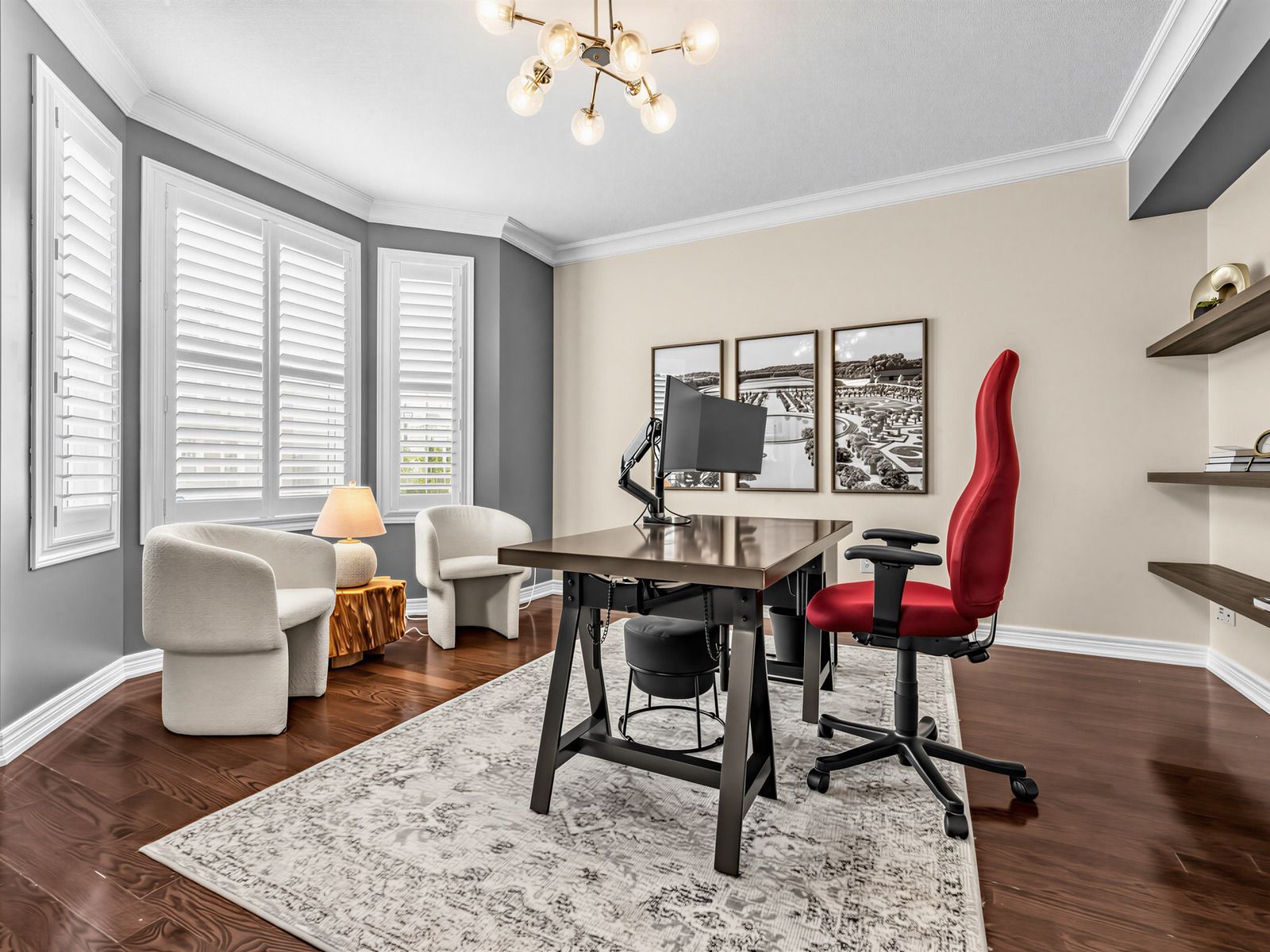 The time has arrived to seize the opportunity to live in the jewel of cathedral town. 81 reflection road is situated on an extra wide 65. 42 foot lot with a private treed backyard complete with natural stone patio. 3881 square feet of exquisitely finished living space plus additional 1722 square feet finished basement. Enter the stately front door and experience the blend of space, warmth and natural beauty. 9 foot ceilings, tasteful crown moldings and pot lights throughout and grand open center staircase. Stunning living and dining room with wood flooring, modern glass enclosed library/work from home space. Huge kitchen with ample counter space, pantry and eat in area that naturally flows into the great room with fireplace which becomes the heart of the home where family can spend time together but also great for entertaining. Main floor laundry room, outdoor and garage access. The large primary bedroom exudes pampered luxury complete with cathedral ceiling, wood flooring, spa like en suite bathroom and two separate walk in closets and is the real showpiece of this beautiful home. Four additional bedrooms and a separate den/office plus wide hallways give lots of additional space for family living. Very tasteful window shutters throughout the home. The beautiful and functionally finished basement with 4 piece bathroom, gym, cold storage and living/dining area is a great addition to the home. Cathedral town has access to top rated public, french immersion and catholic schools including ****st. Augustine catholic high school recently ranked #1 out of 747 ontario high schools by the fraser institute****. There is no greater place to live and create opportunities for your children that will last a lifetime. Easy access to 404 highway, t&t supermarket, costco, parks, recreation and many other conveniences. Time to reflect on why this would be the perfect place to live!!