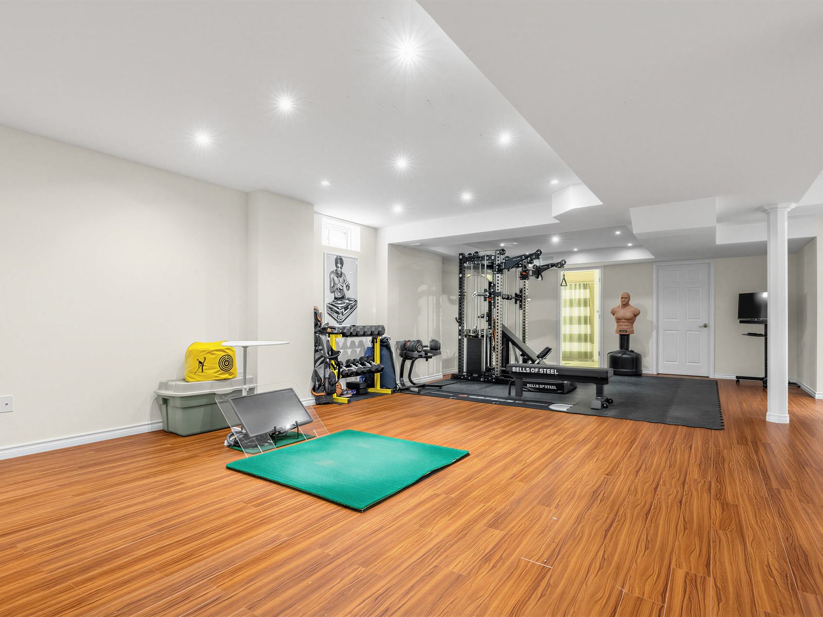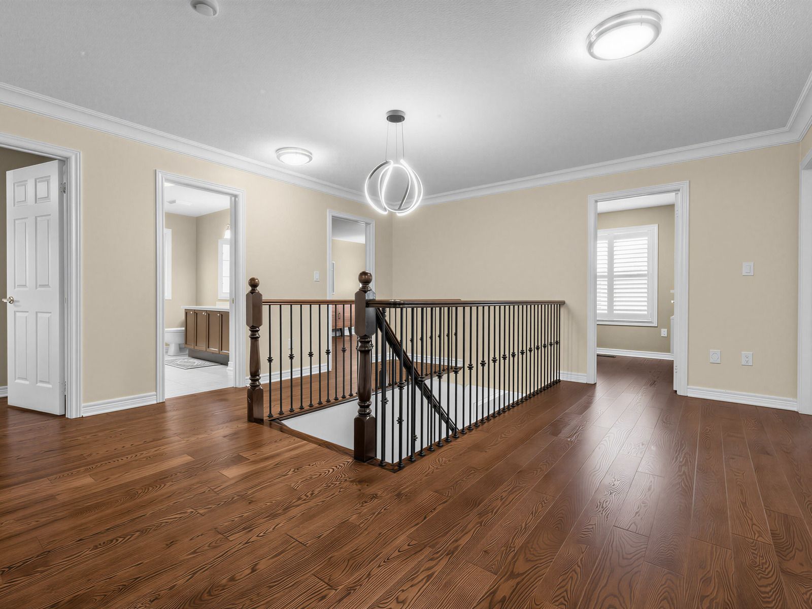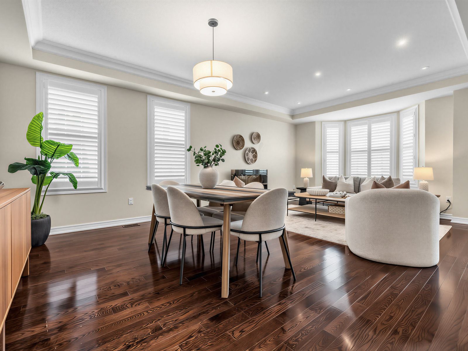 The time has arrived to seize the opportunity to live in the jewel of cathedral town. 81 reflection road is situated on an extra wide 65. 42 foot lot with a private treed backyard complete with natural stone patio. 3881 square feet of exquisitely finished living space plus additional 1722 square feet finished basement. Enter the stately front door and experience the blend of space, warmth and natural beauty. 9 foot ceilings, tasteful crown moldings and pot lights throughout and grand open center staircase. Stunning living and dining room with wood flooring, modern glass enclosed library/work from home space. Huge kitchen with ample counter space, pantry and eat in area that naturally flows into the great room with fireplace which becomes the heart of the home where family can spend time together but also great for entertaining. Main floor laundry room, outdoor and garage access. The large primary bedroom exudes pampered luxury complete with cathedral ceiling, wood flooring, spa like en suite bathroom and two separate walk in closets and is the real showpiece of this beautiful home. Four additional bedrooms and a separate den/office plus wide hallways give lots of additional space for family living. Very tasteful window shutters throughout the home. The beautiful and functionally finished basement with 4 piece bathroom, gym, cold storage and living/dining area is a great addition to the home. Cathedral town has access to top rated public, french immersion and catholic schools including ****st. Augustine catholic high school recently ranked #1 out of 747 ontario high schools by the fraser institute****. There is no greater place to live and create opportunities for your children that will last a lifetime. Easy access to 404 highway, t&t supermarket, costco, parks, recreation and many other conveniences. Time to reflect on why this would be the perfect place to live!!