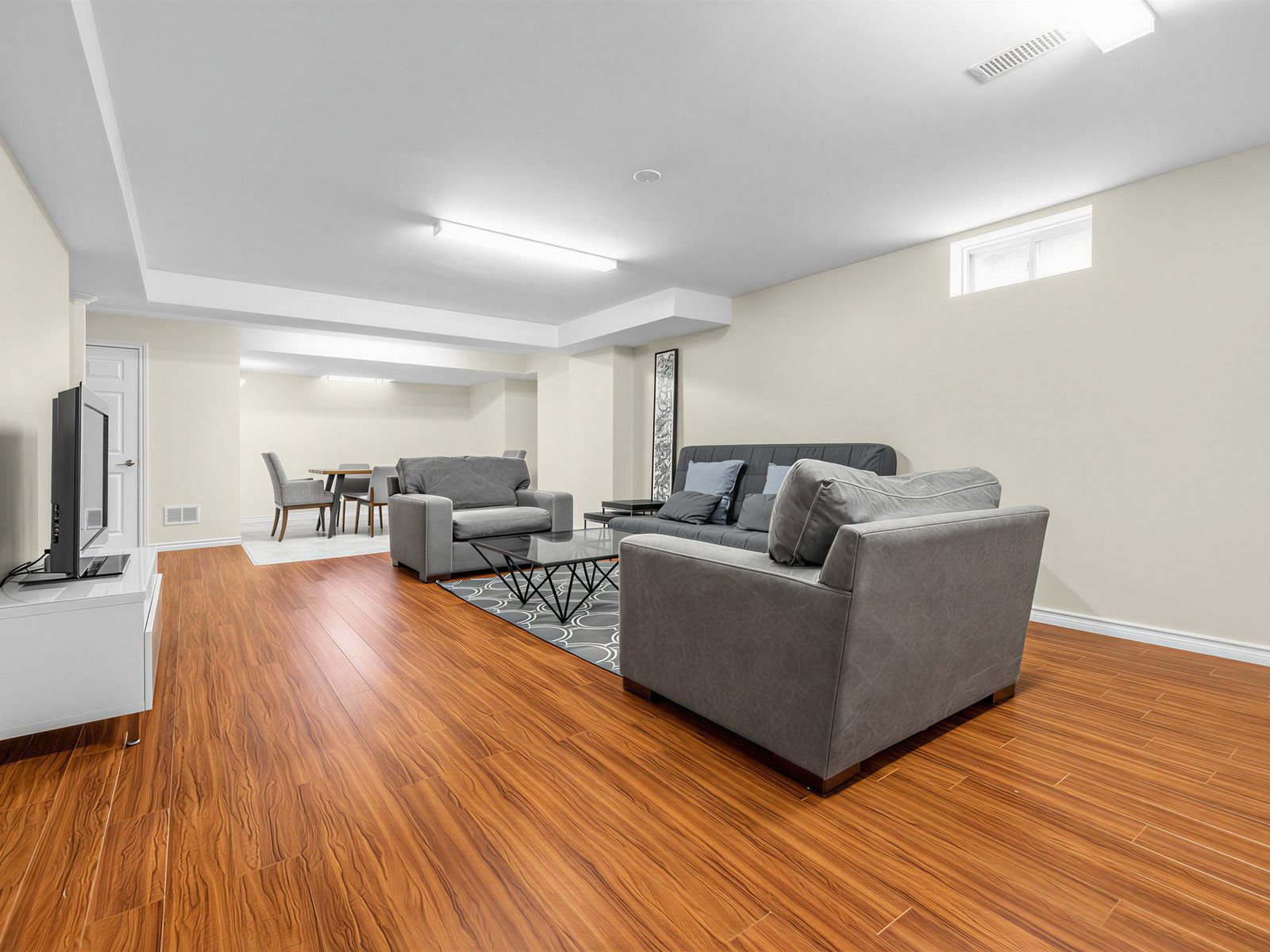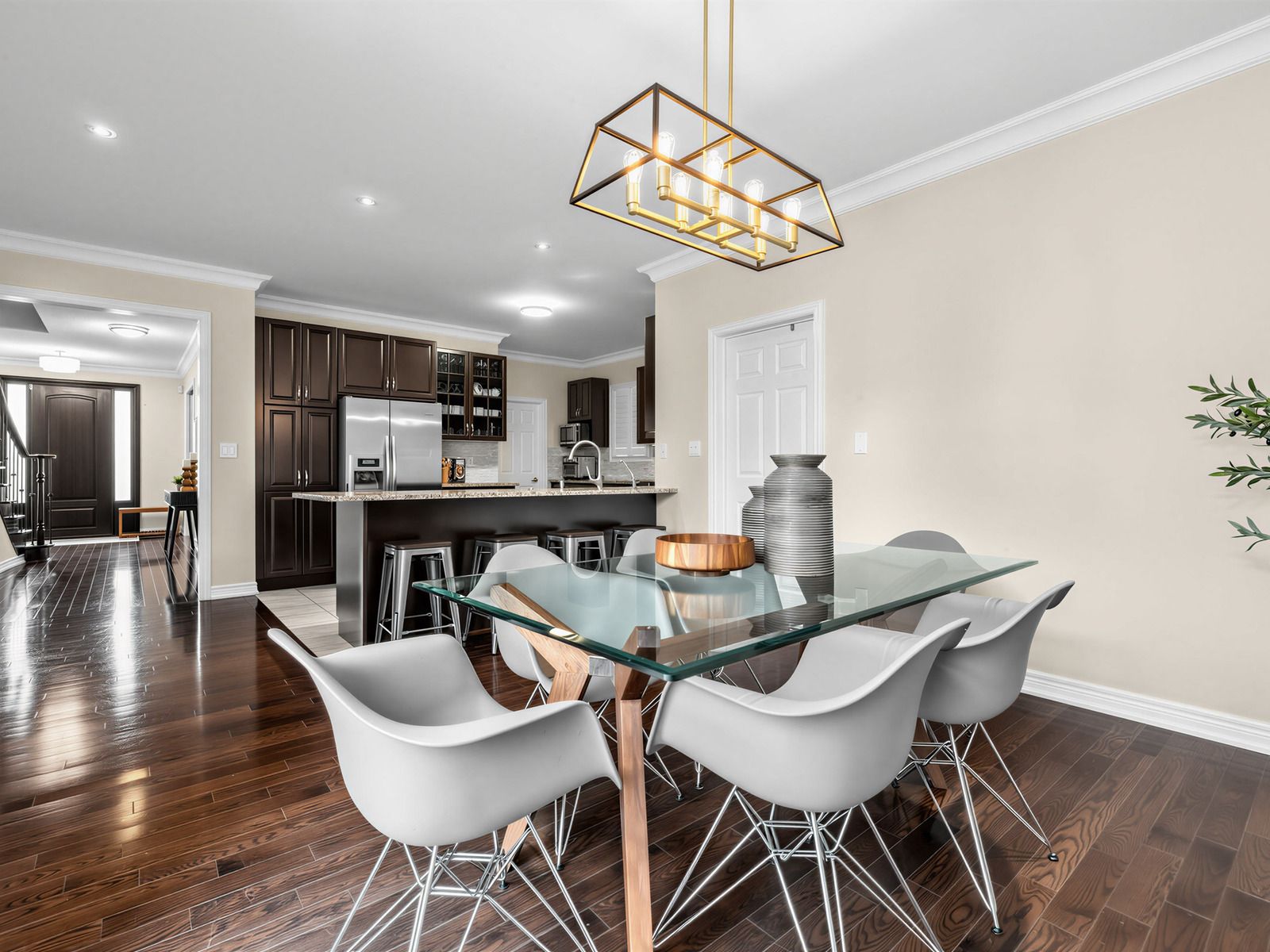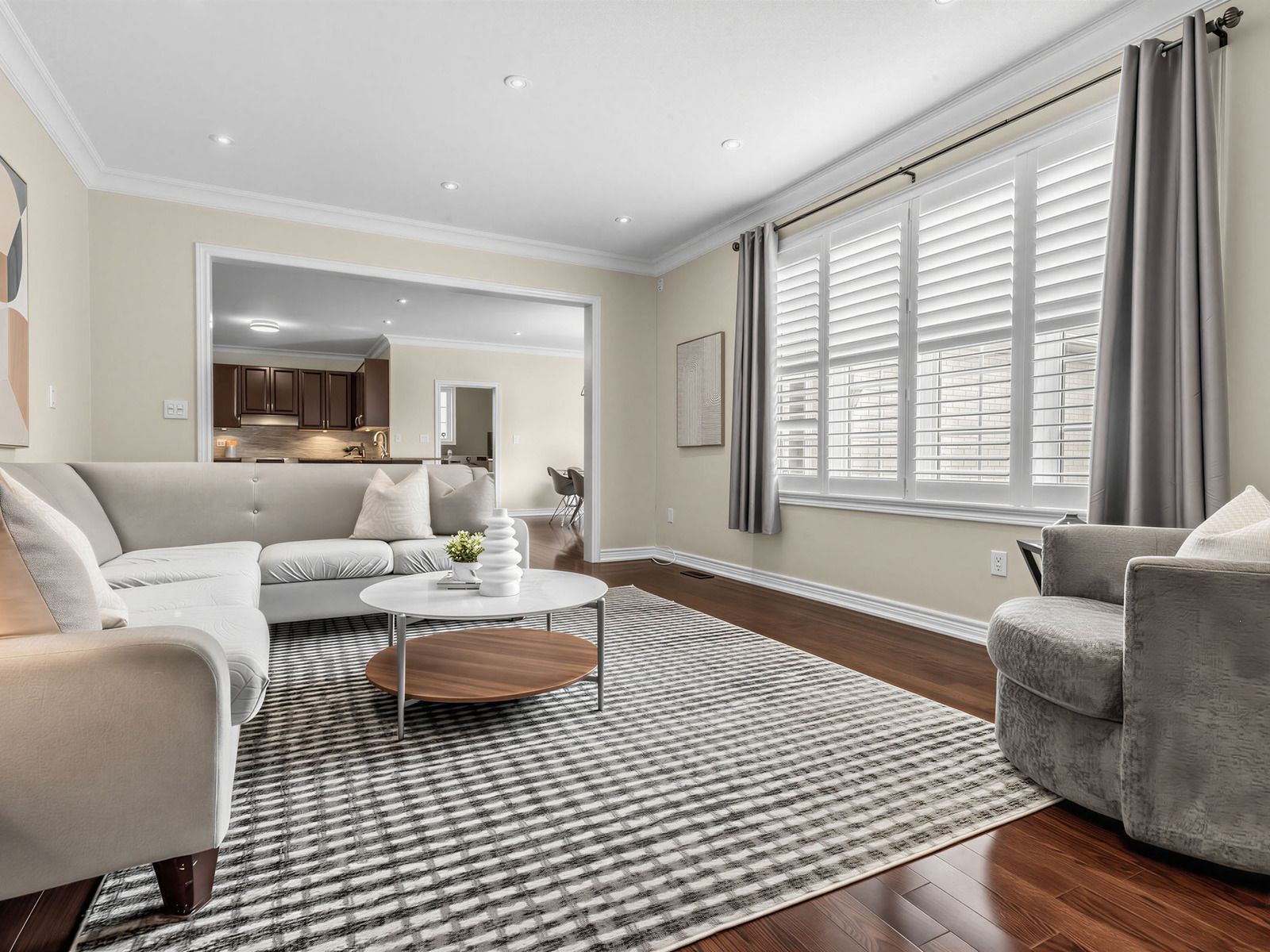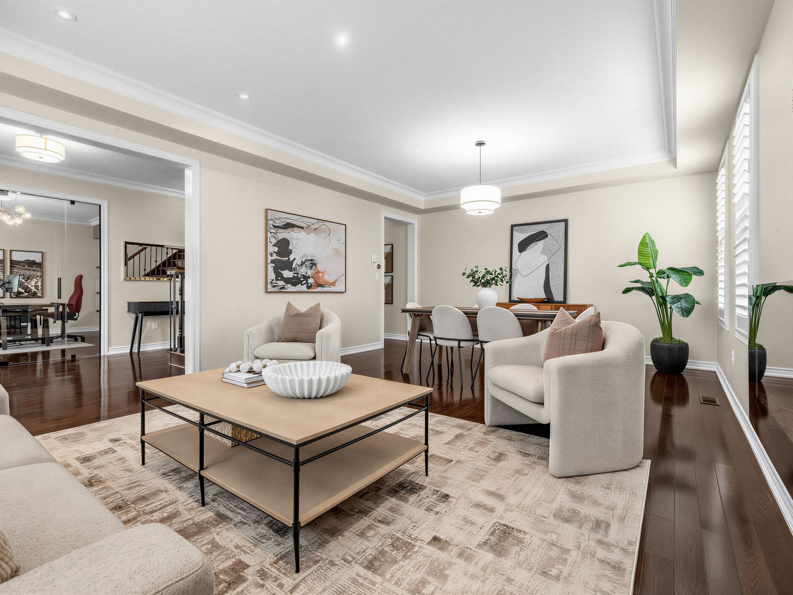 The time has arrived to seize the opportunity to live in the jewel of cathedral town. 81 reflection road is situated on an extra wide 65. 42 foot lot with a private treed backyard complete with natural stone patio. 3881 square feet of exquisitely finished living space plus additional 1722 square feet finished basement. Enter the stately front door and experience the blend of space, warmth and natural beauty. 9 foot ceilings, tasteful crown moldings and pot lights throughout and grand open center staircase. Stunning living and dining room with wood flooring, modern glass enclosed library/work from home space. Huge kitchen with ample counter space, pantry and eat in area that naturally flows into the great room with fireplace which becomes the heart of the home where family can spend time together but also great for entertaining. Main floor laundry room, outdoor and garage access. The large primary bedroom exudes pampered luxury complete with cathedral ceiling, wood flooring, spa like en suite bathroom and two separate walk in closets and is the real showpiece of this beautiful home. Four additional bedrooms and a separate den/office plus wide hallways give lots of additional space for family living. Very tasteful window shutters throughout the home. The beautiful and functionally finished basement with 4 piece bathroom, gym, cold storage and living/dining area is a great addition to the home. Cathedral town has access to top rated public, french immersion and catholic schools including ****st. Augustine catholic high school recently ranked #1 out of 747 ontario high schools by the fraser institute****. There is no greater place to live and create opportunities for your children that will last a lifetime. Easy access to 404 highway, t&t supermarket, costco, parks, recreation and many other conveniences. Time to reflect on why this would be the perfect place to live!!