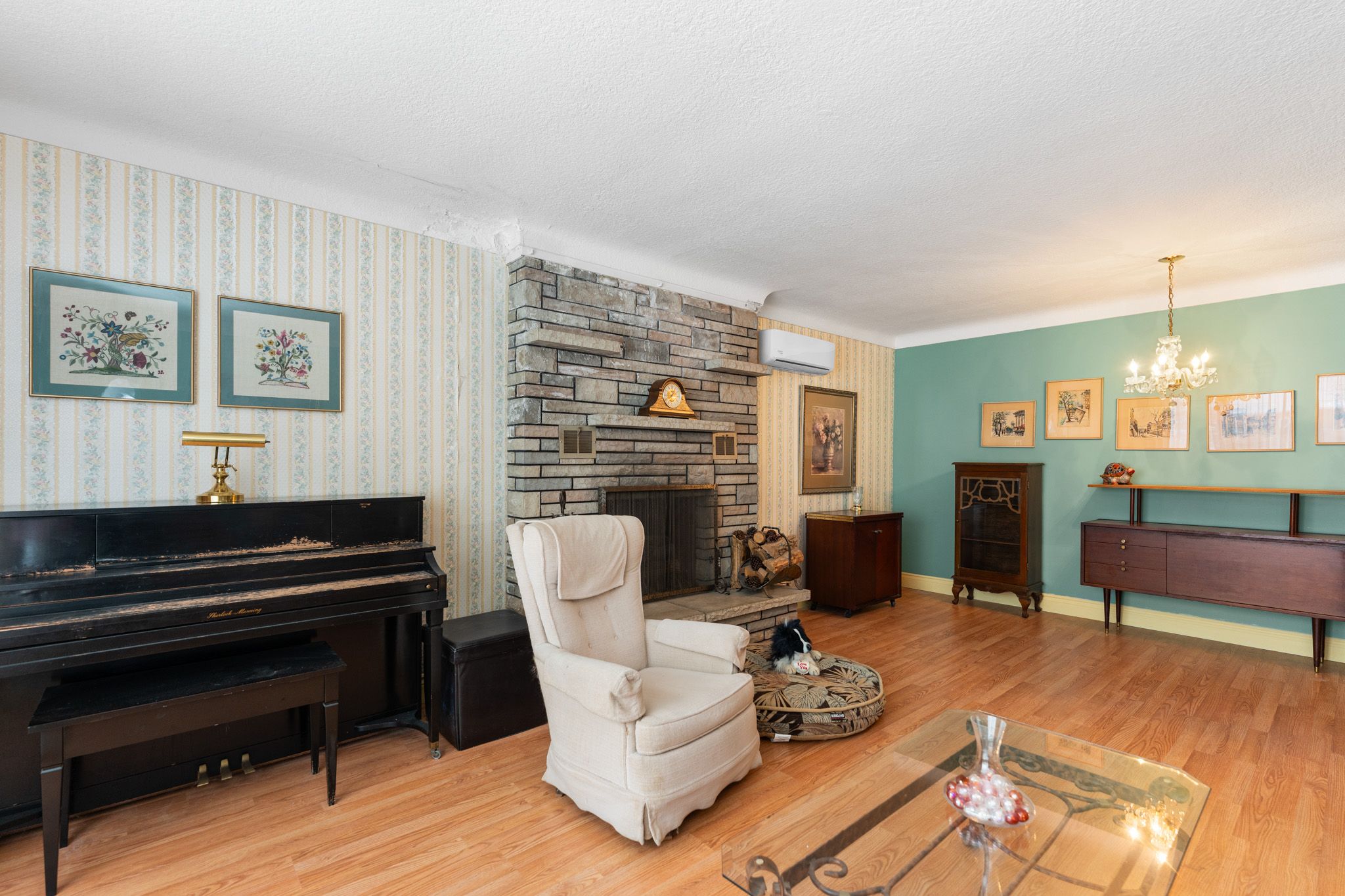 • Bright main level with laminate flooring and a cozy fireplace.