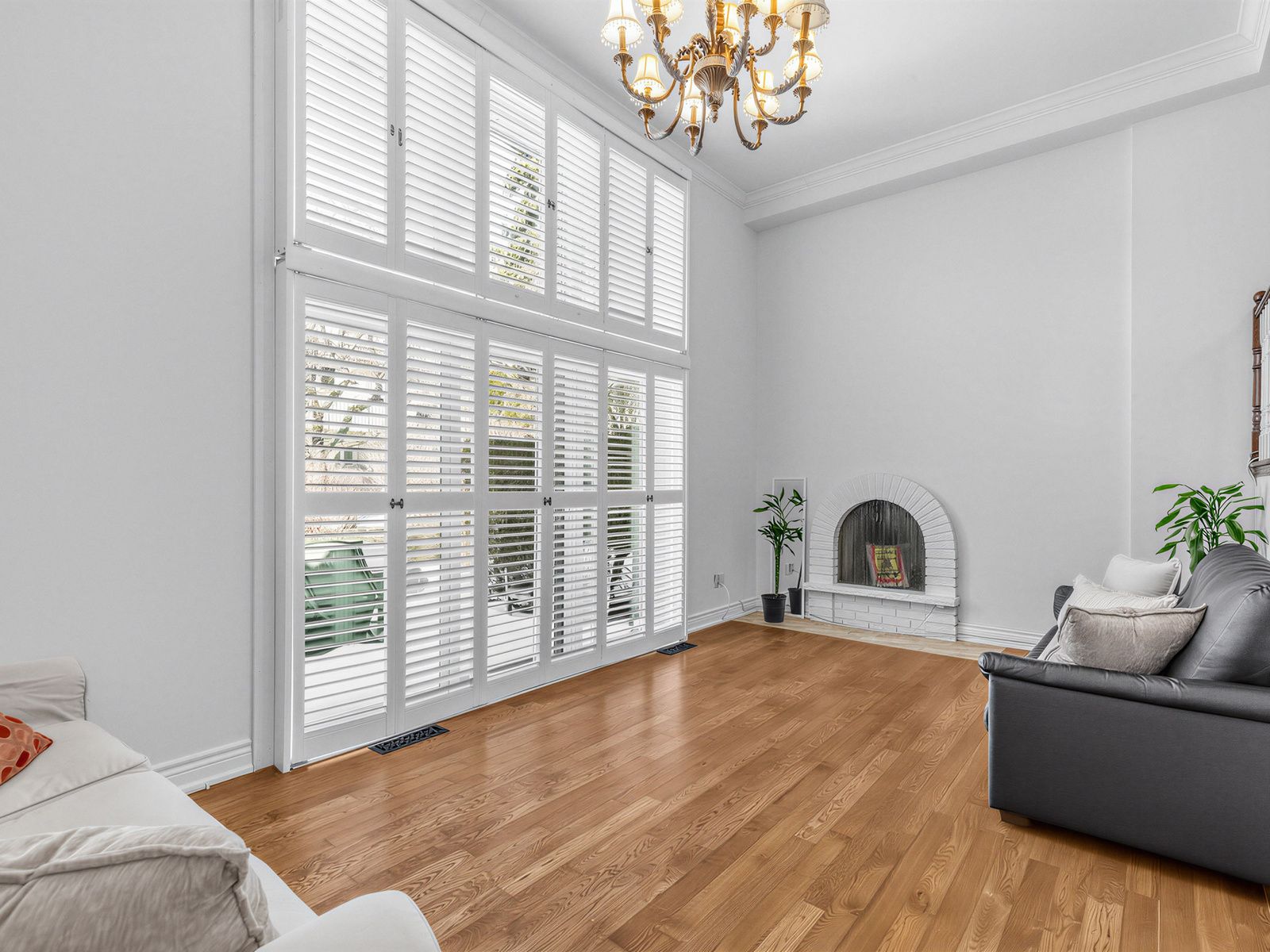 • Bright open-concept main level with high ceilings and cozy fireplace.