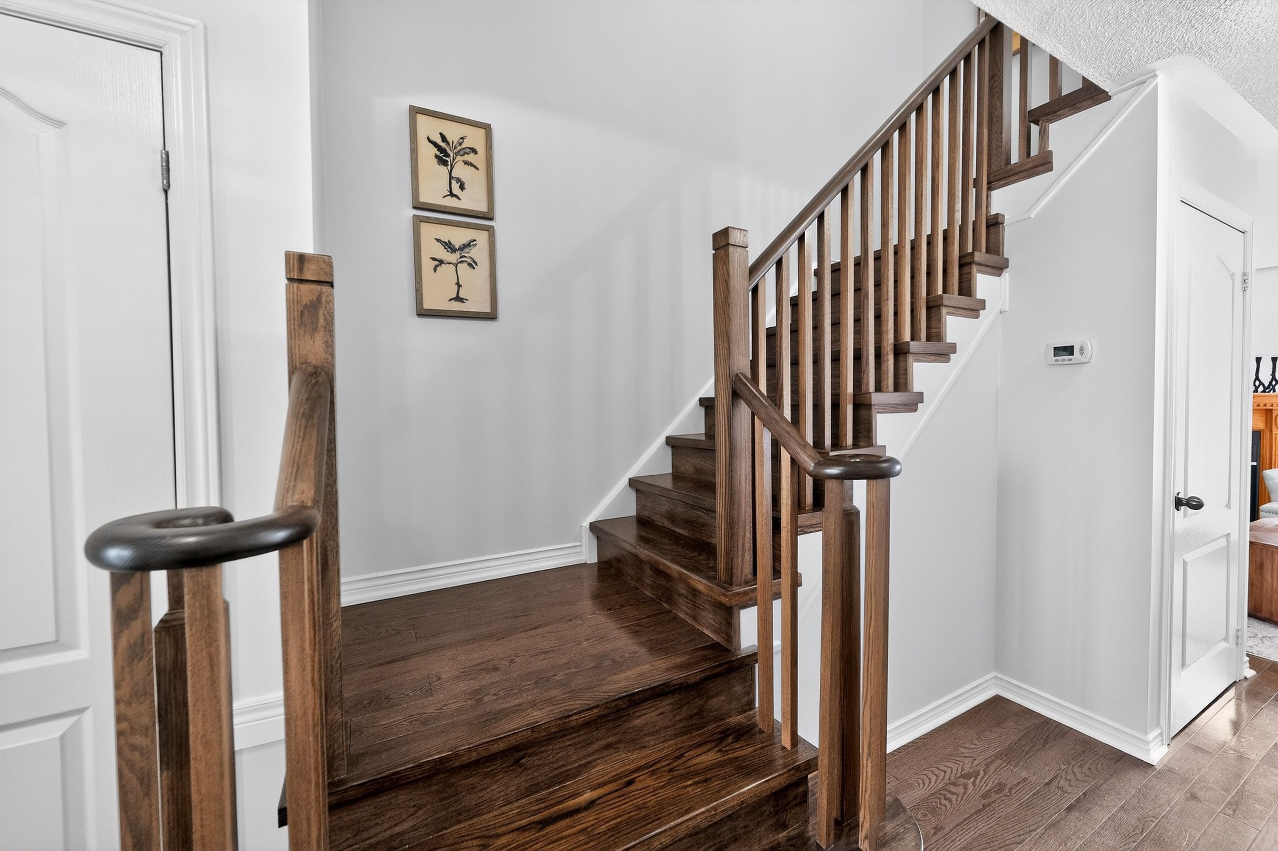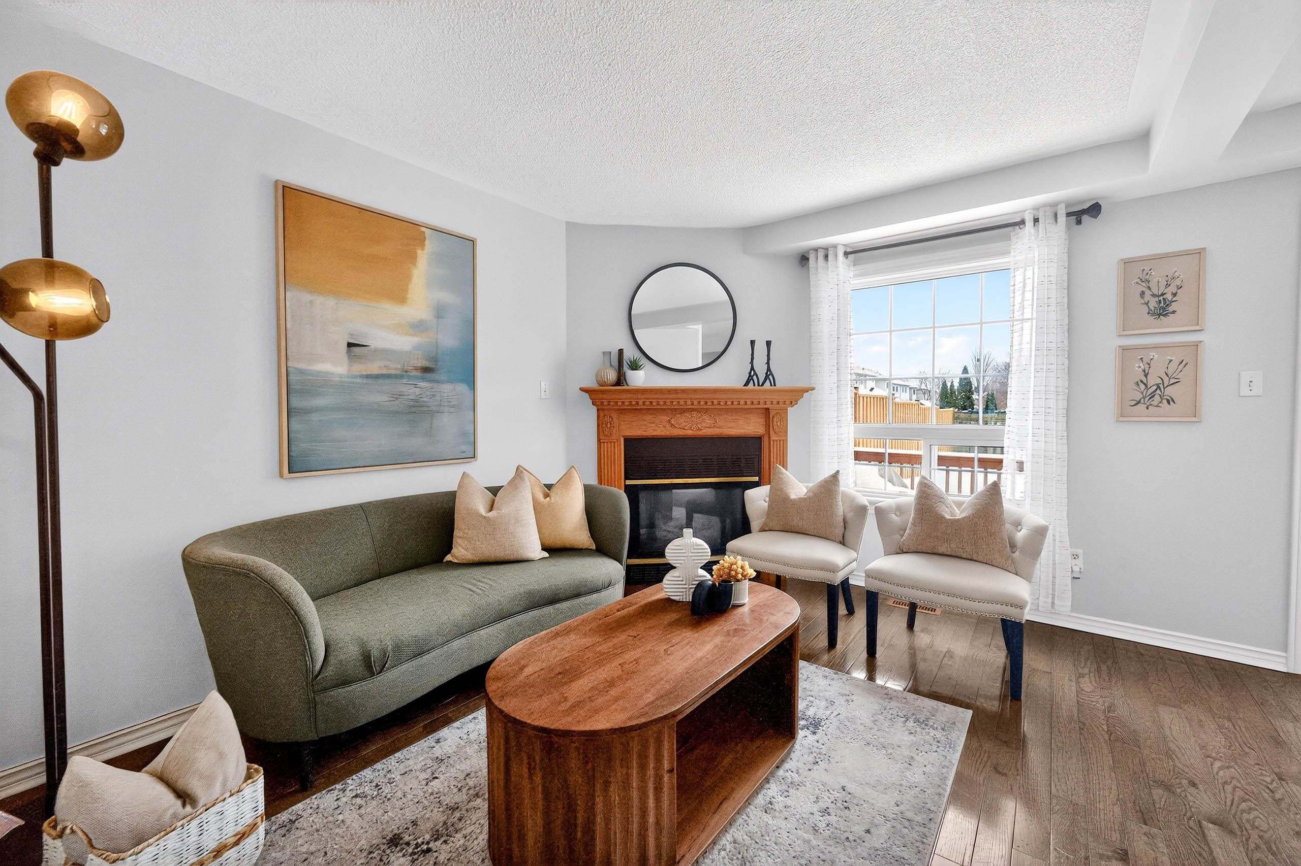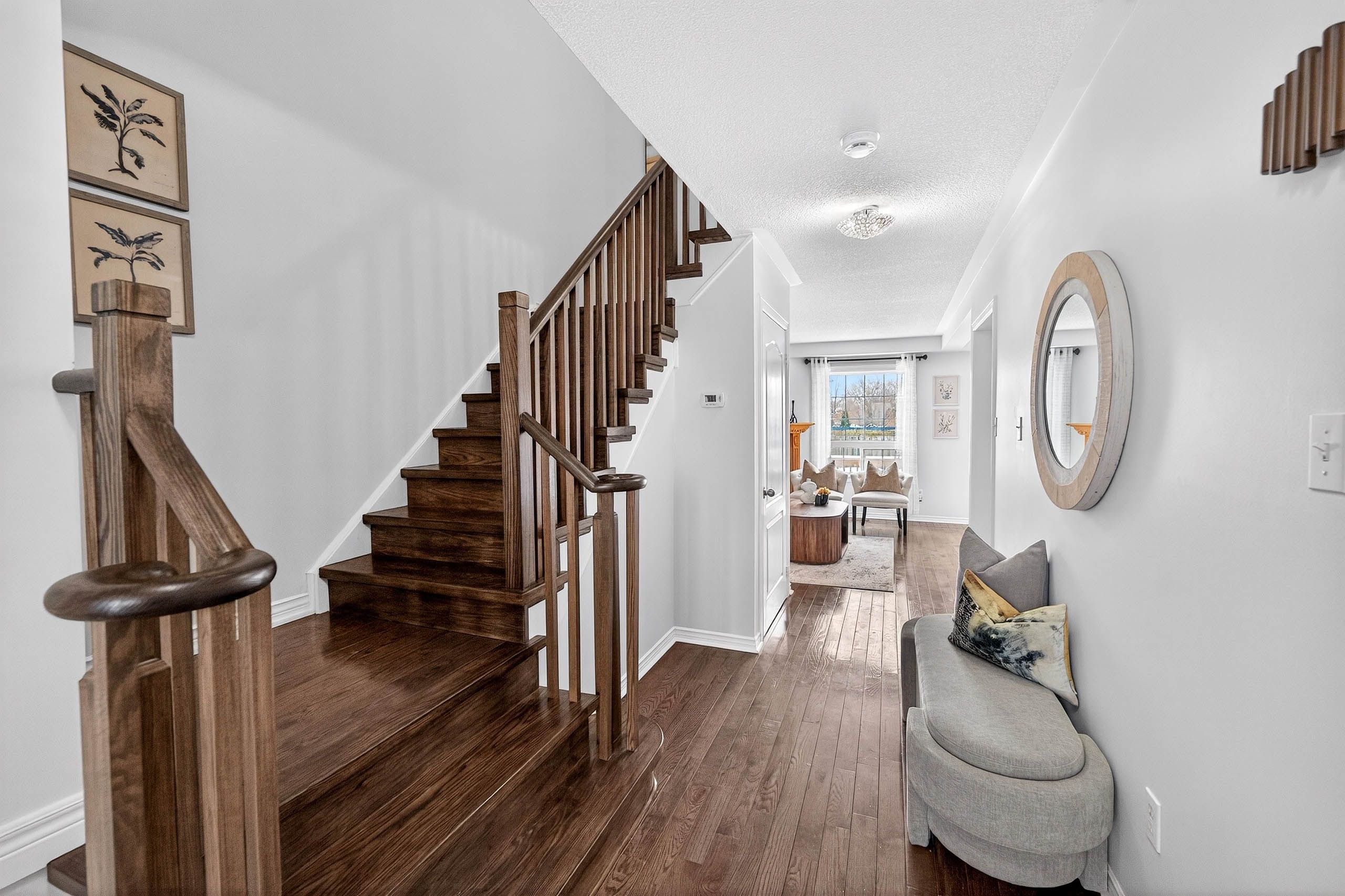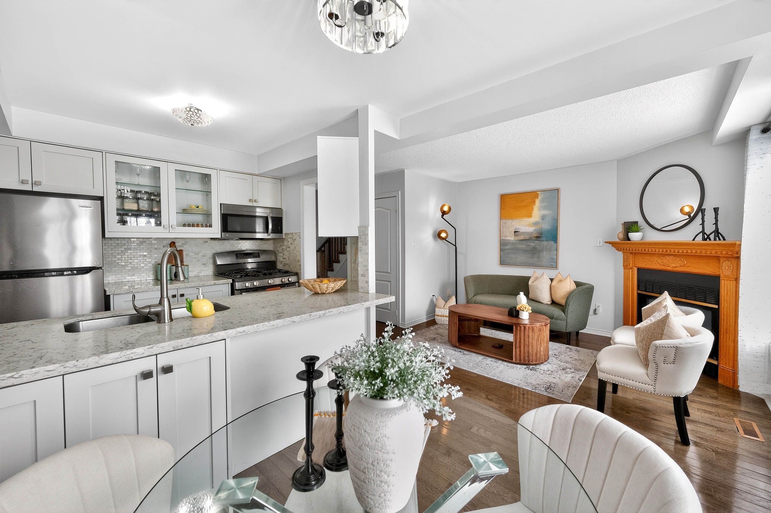 Bright & upgraded 3-bedroom freehold townhome offering over 1,400 sqft of total living space including the finished basement! Situated on a premium lot with a large backyard, no home in front & no sidewalk with 3 parking spots (2 on driveway). Located in a family-friendly neighbourhood, this home features hardwood floors on the main level & laminate on the second floor, a cozy gas fireplace in the open concept living/dining area, and a walk-out to a large deck & backyard, perfect for entertaining. Updated kitchen features quartz countertops, backsplash, newer sink/faucet & cabinets. Beautiful oak staircase (dec 2024). Spacious primary bedroom with walk-in closet & newly updated 4-pc semi-ensuite (dec 2024). Mirror closet doors in the 2 bedrooms (dec 2024). Finished basement offers a rec room, office area, updated 3-pc bathroom (dec 2024) & large cold cellar. Freshly painted throughout. Deck freshly painted, fence & garden added (spring 2025). Move-in ready & shows beautifully! Located in a prime neighborhood, walking distance to schools, transit, parks, transit. Mins to hwy 401/407/go train & shopping. A perfect combination of space, style, and location! **extras** s/s fridge- nov 2023, s/s stove, s/s dishwasher-dec 2024, washer- nov 2023, dryer, s/s range hood with microwave - jun 2024. Hot water tank is owned, all light fixtures, cac and gdo with remote