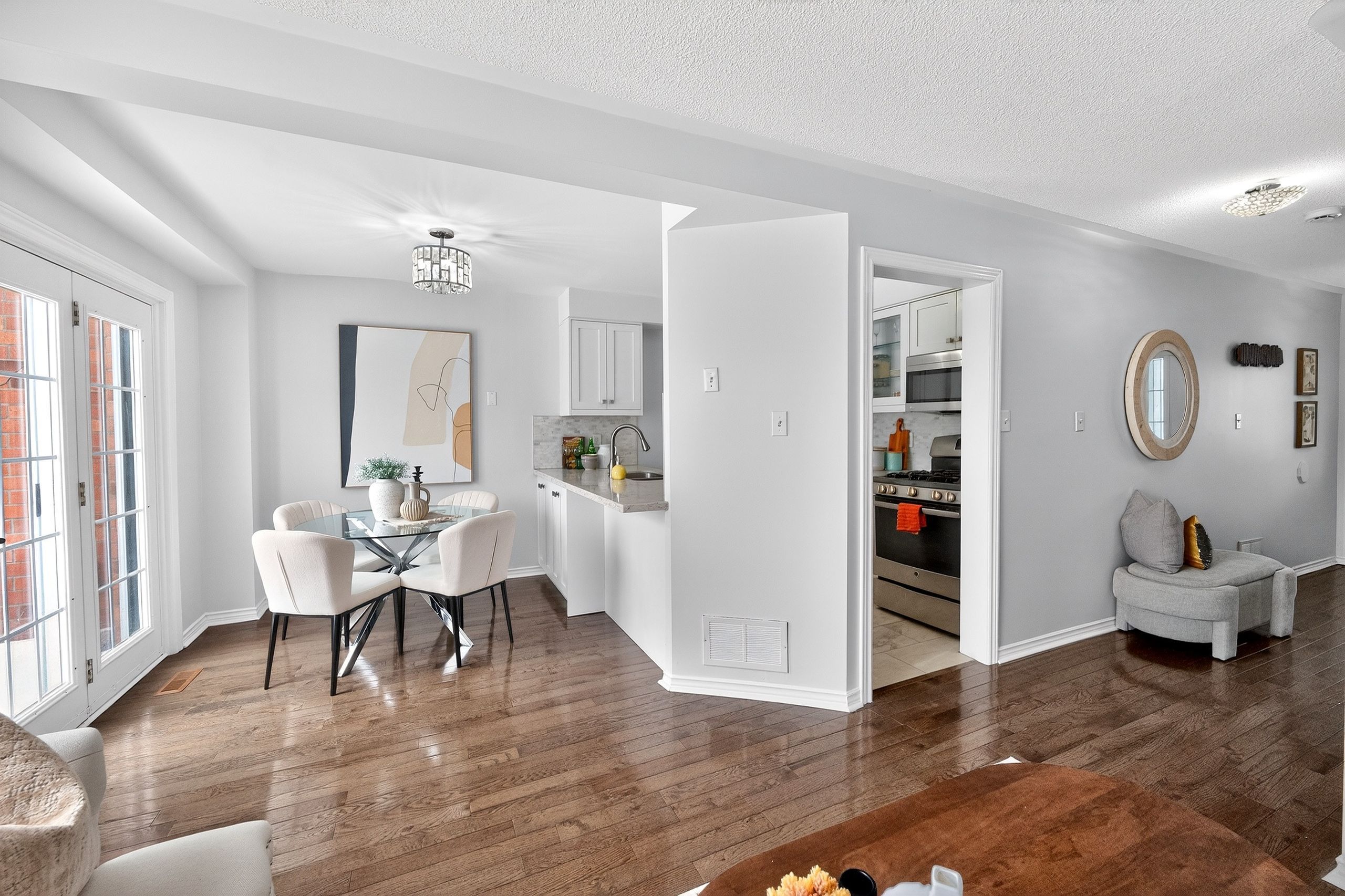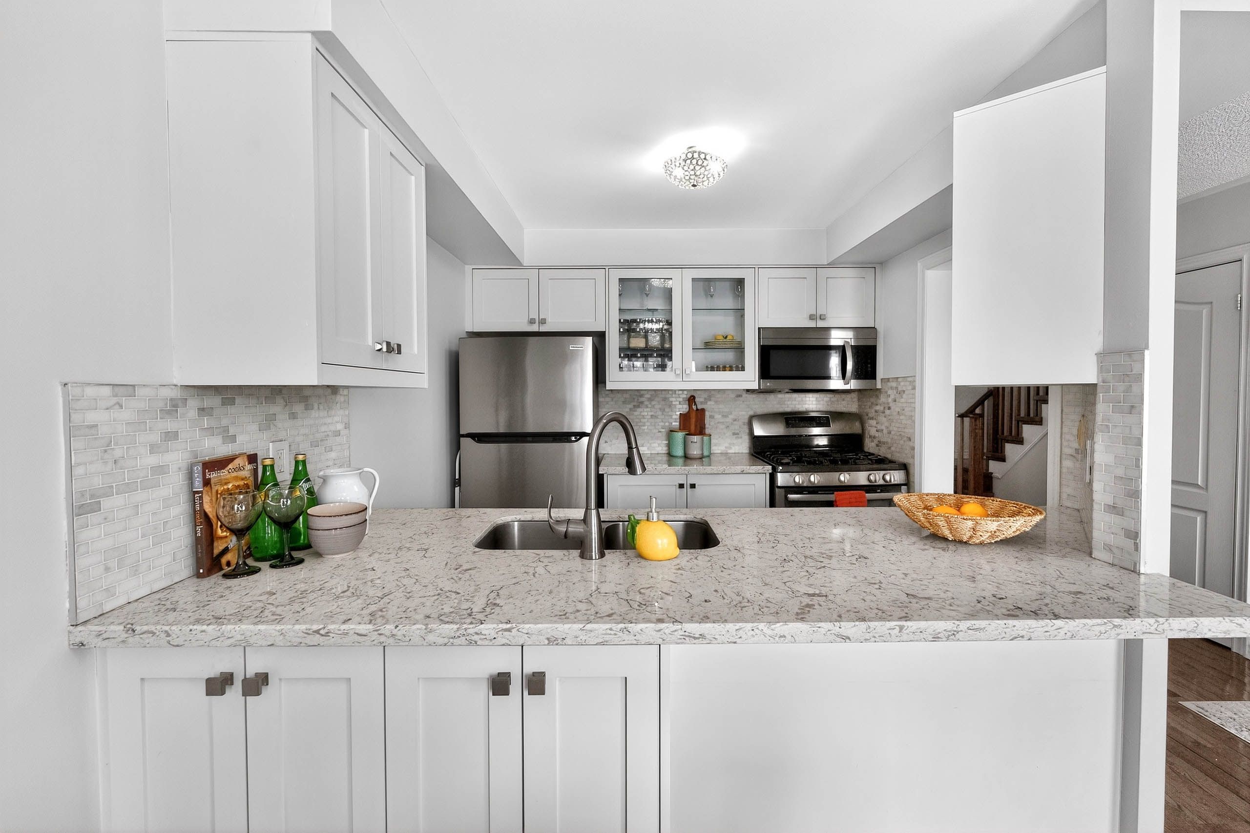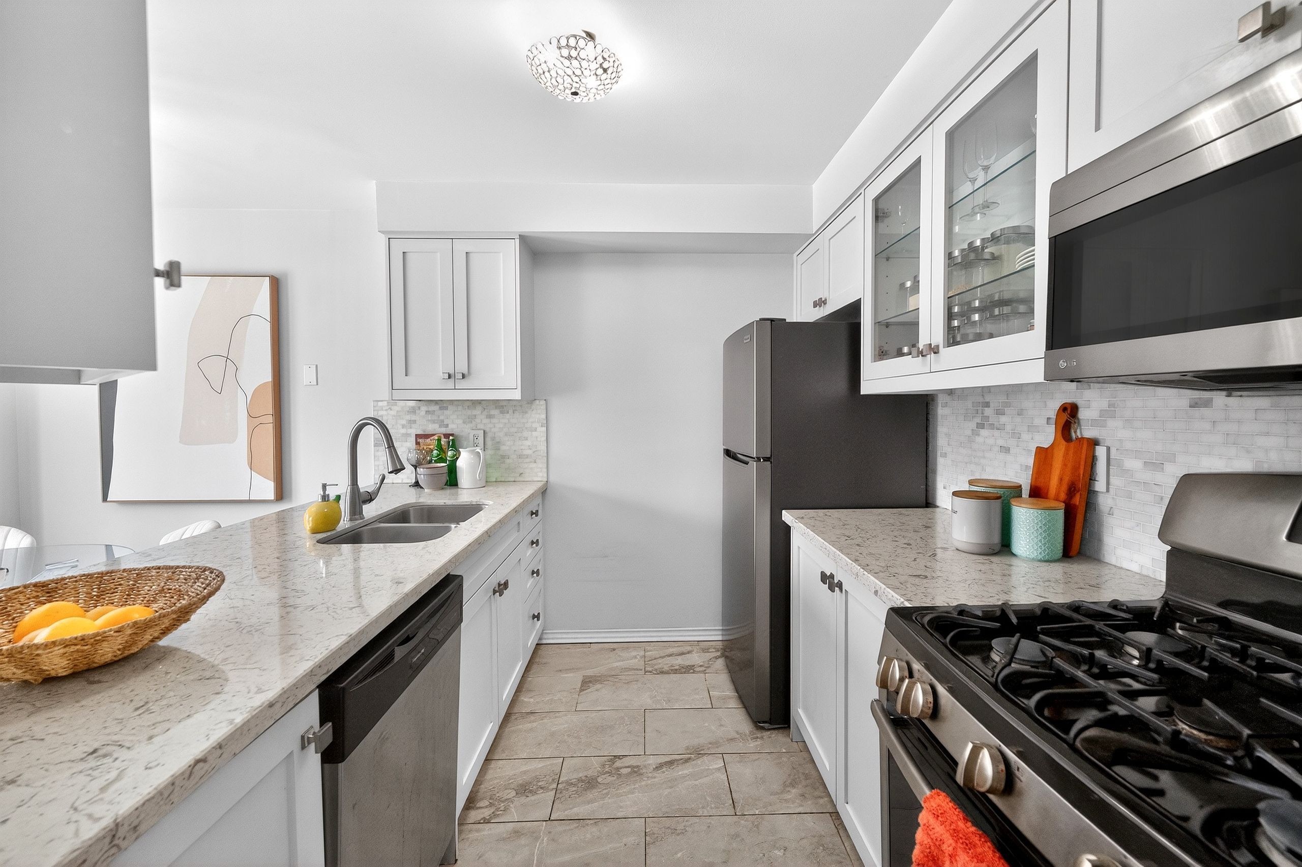 • Updated kitchen with quartz countertops and modern appliances for easy cooking.