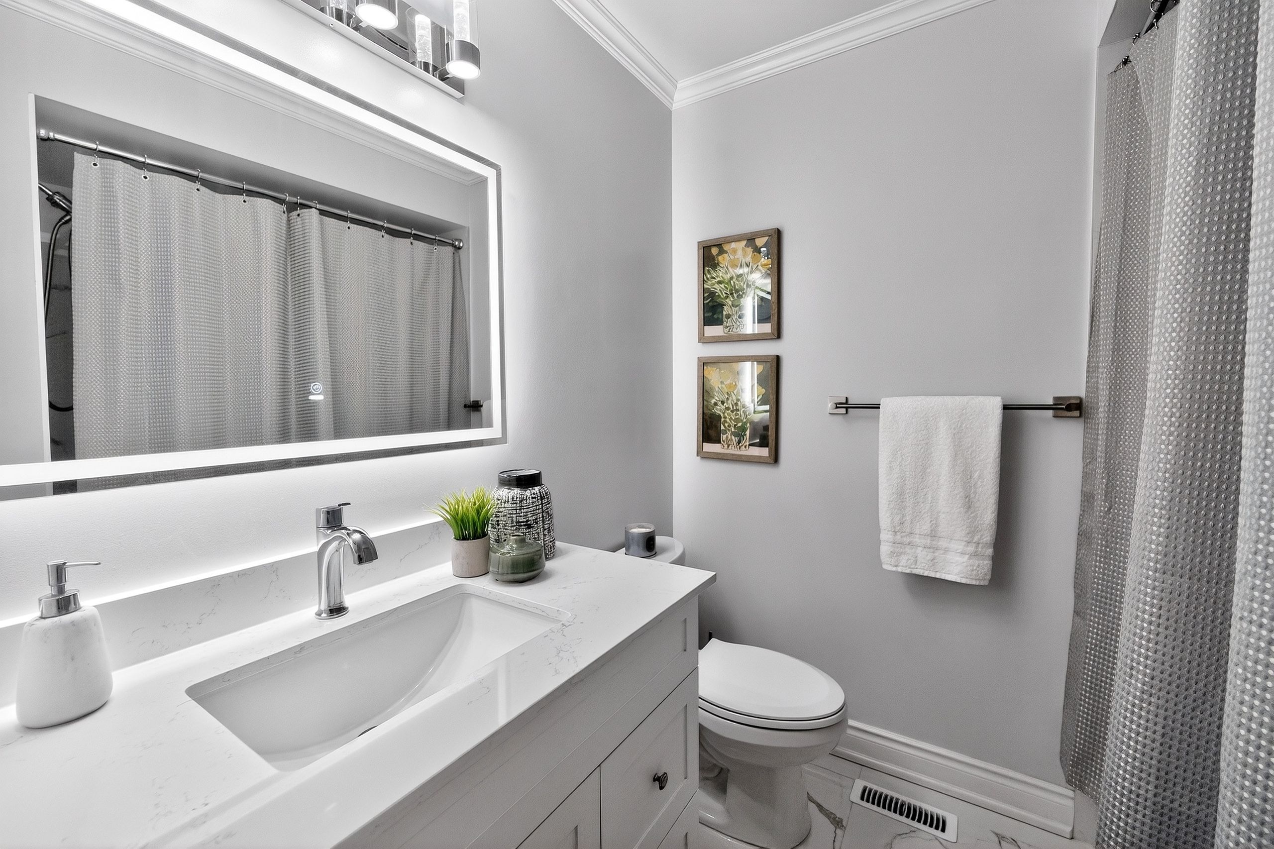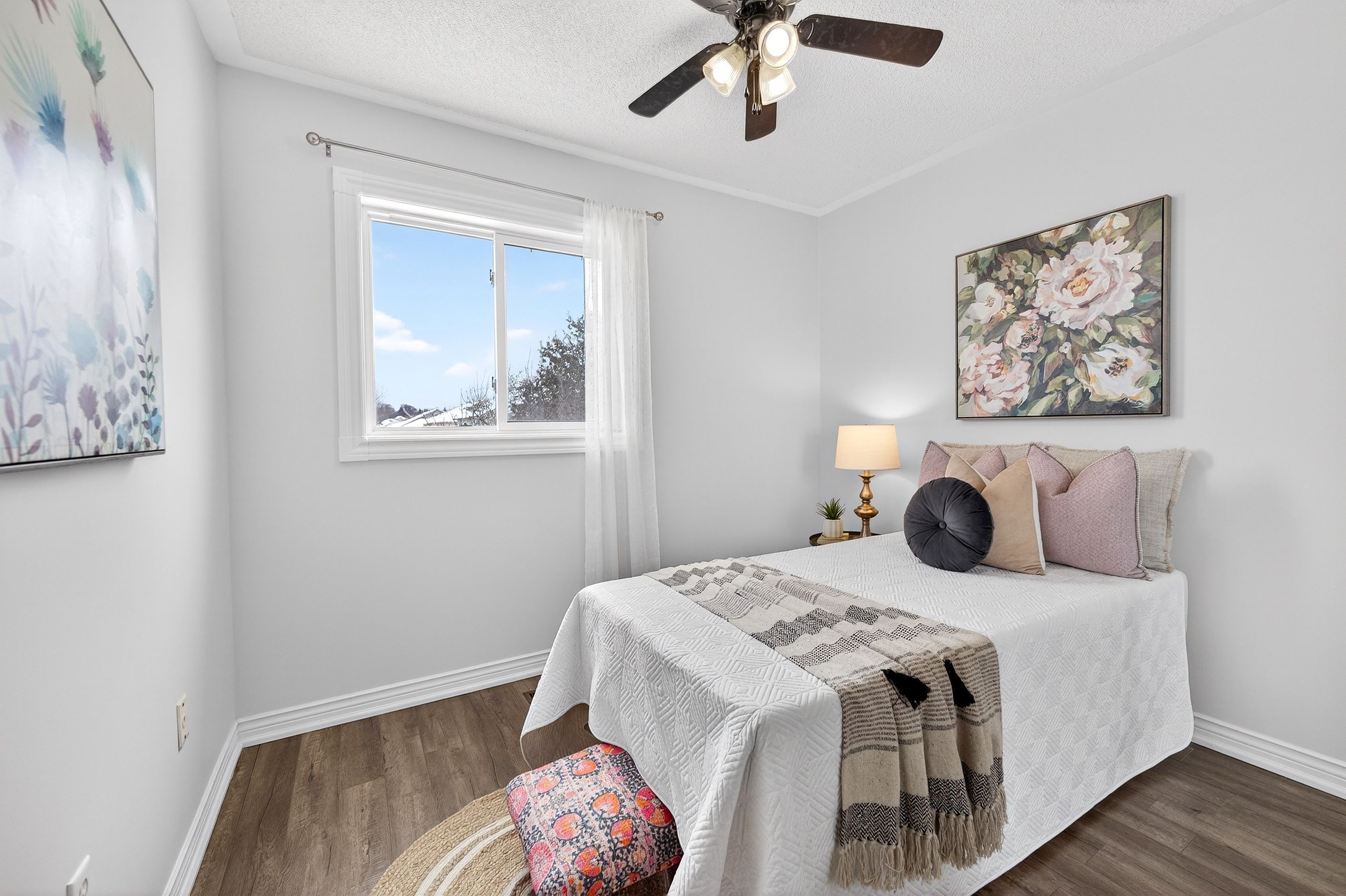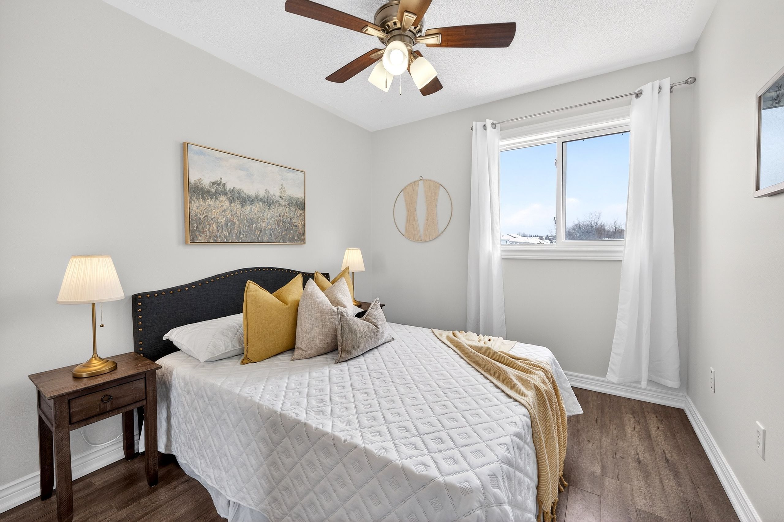 • Updated kitchen with quartz countertops and modern appliances for easy cooking.