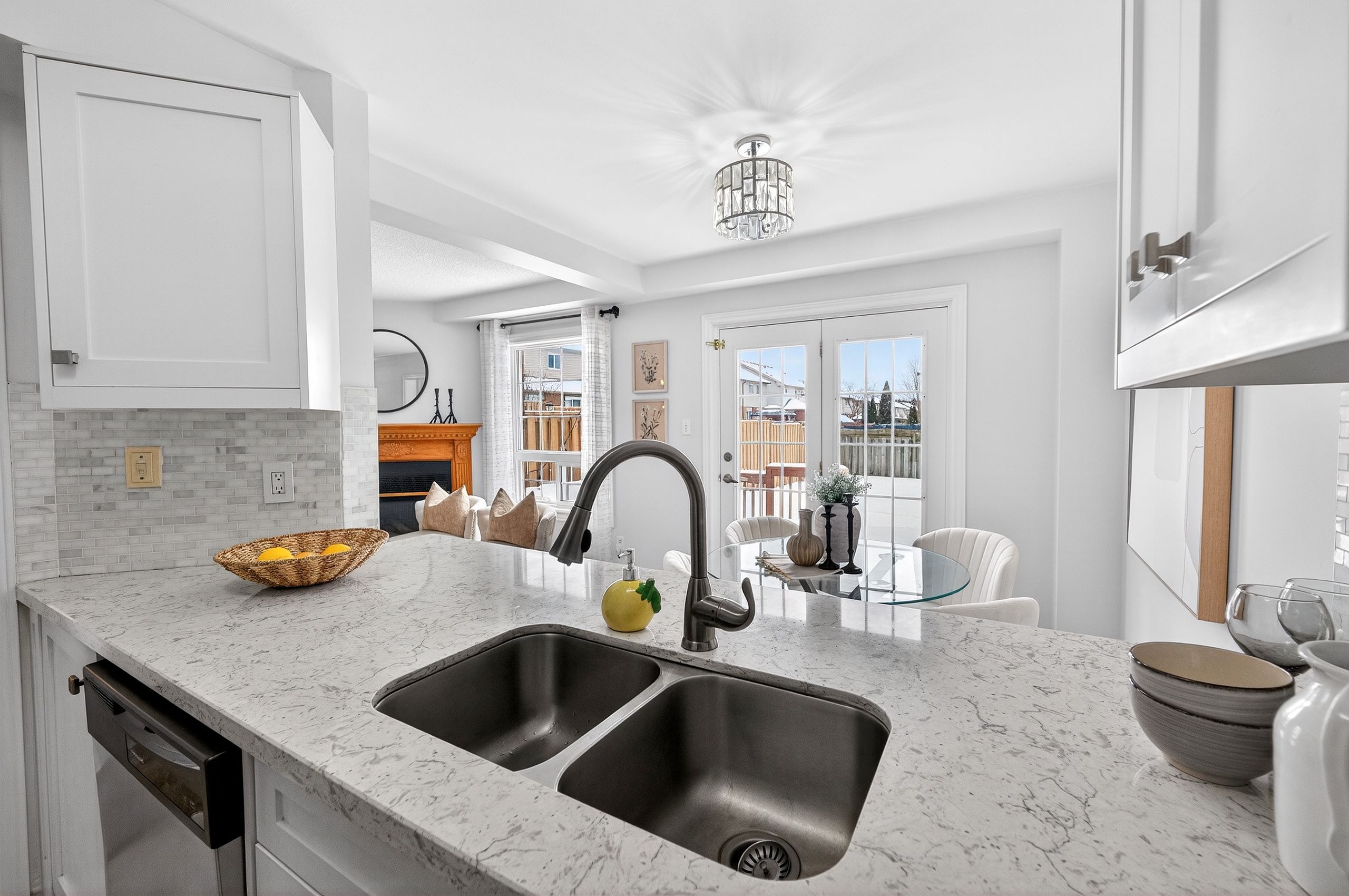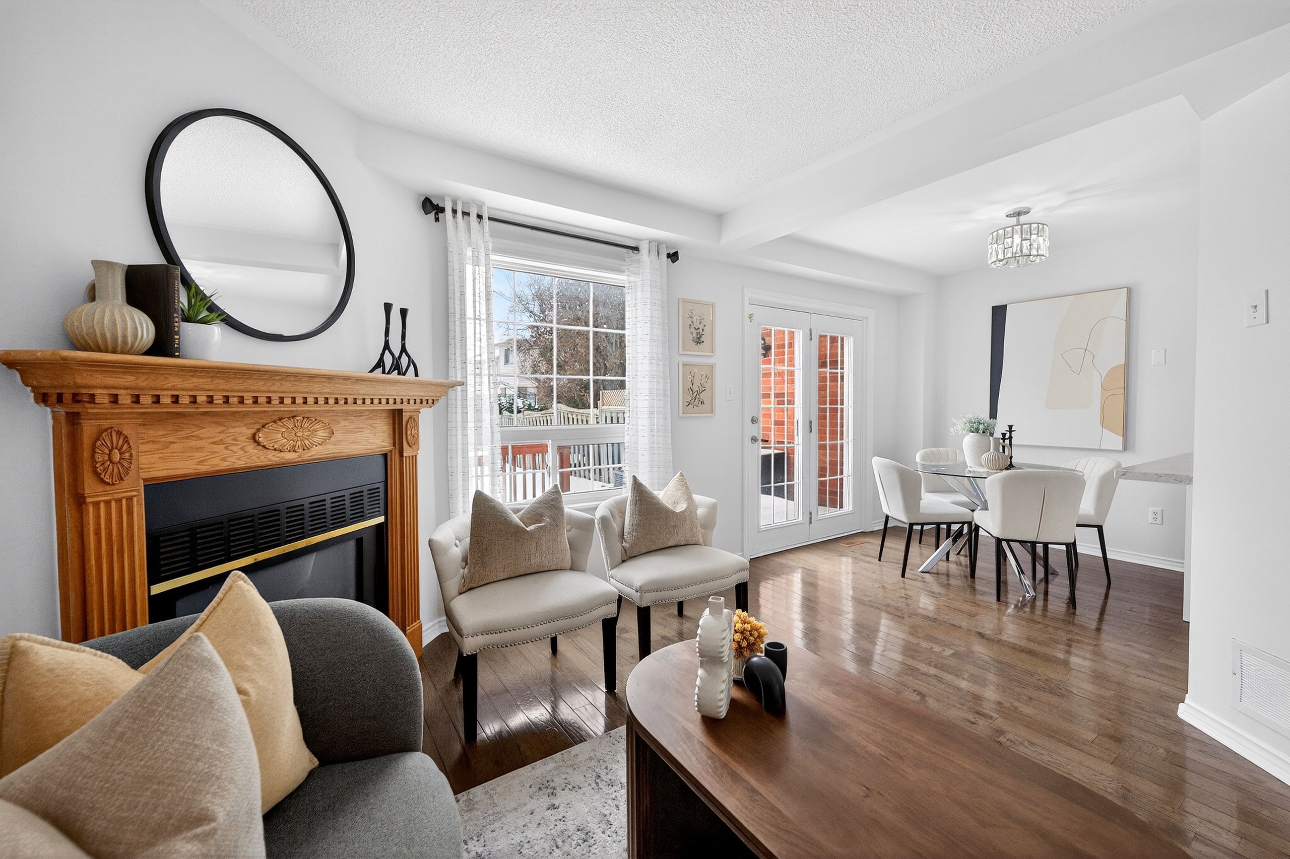 • Cozy gas fireplace in the open concept living and dining area.