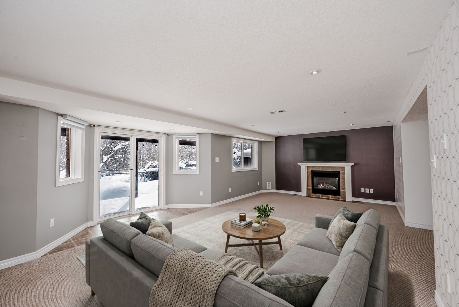 • Bright main floor with hardwood flooring and a cozy gas fireplace.