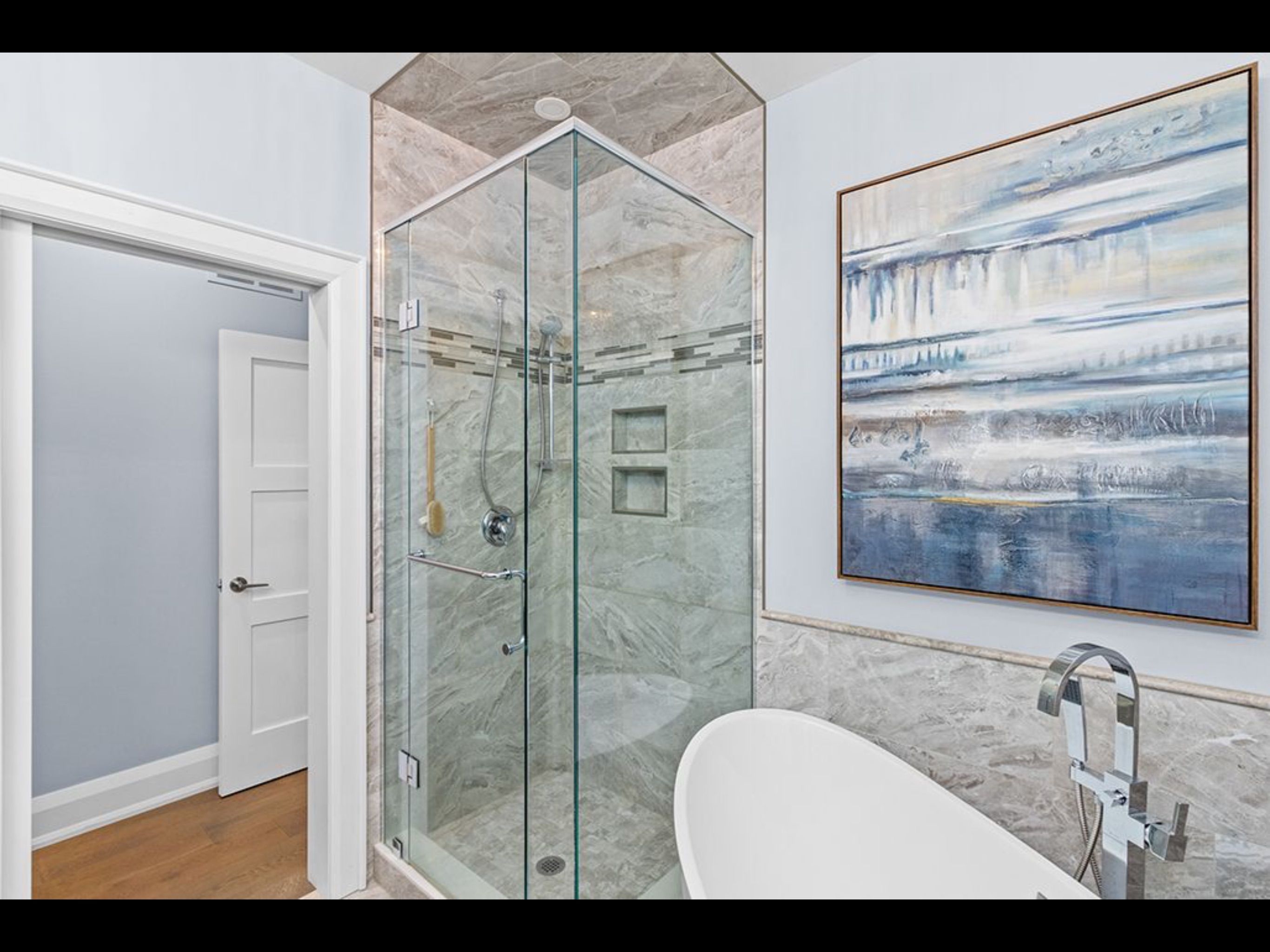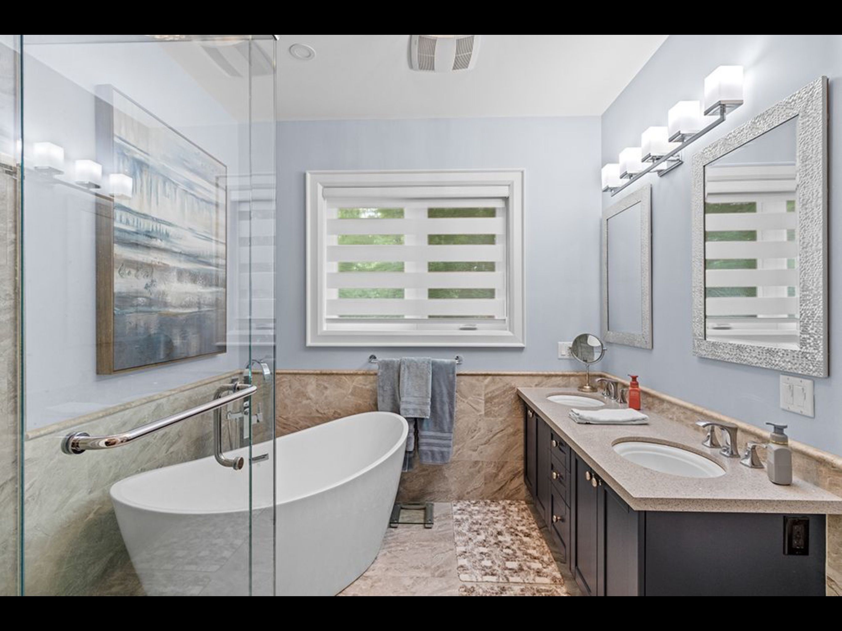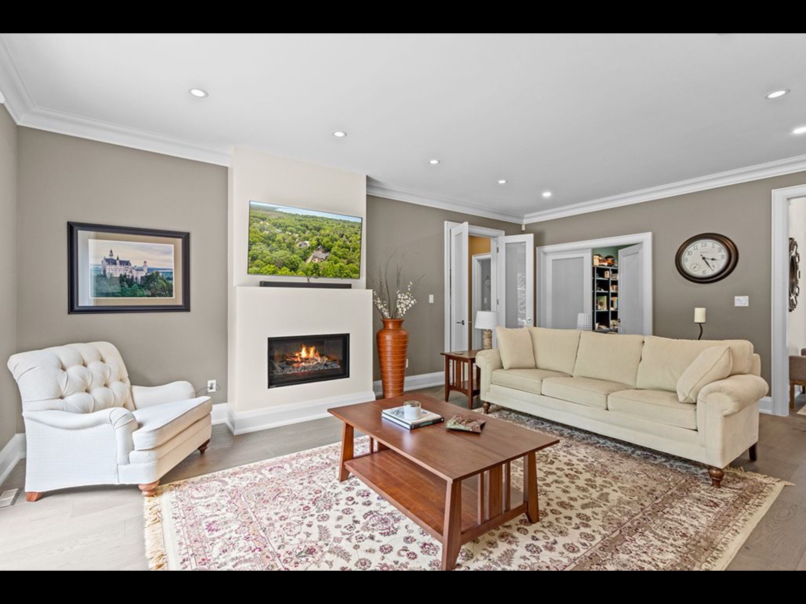 • Rich hardwood floors and two gas fireplaces for cozy living.