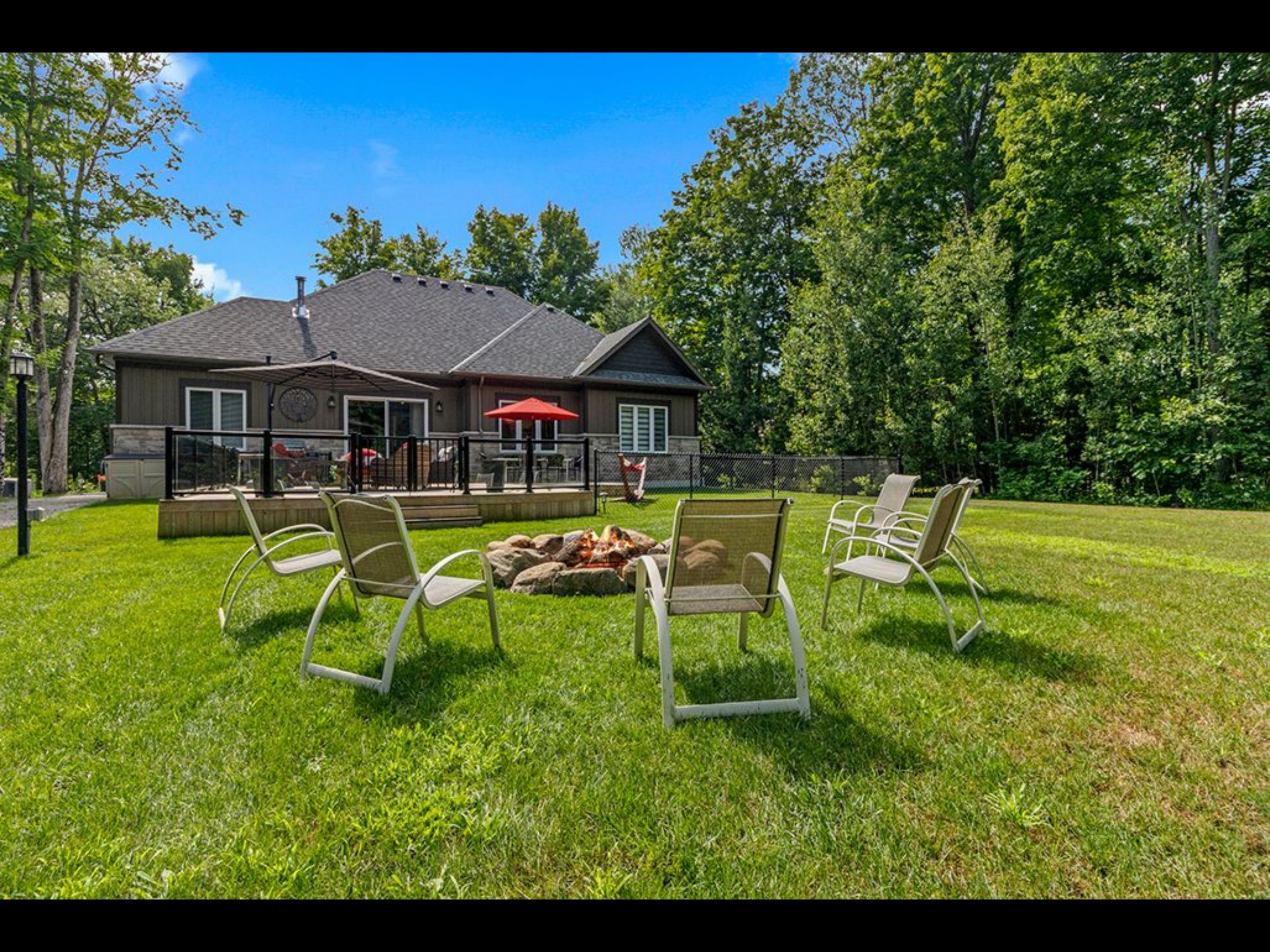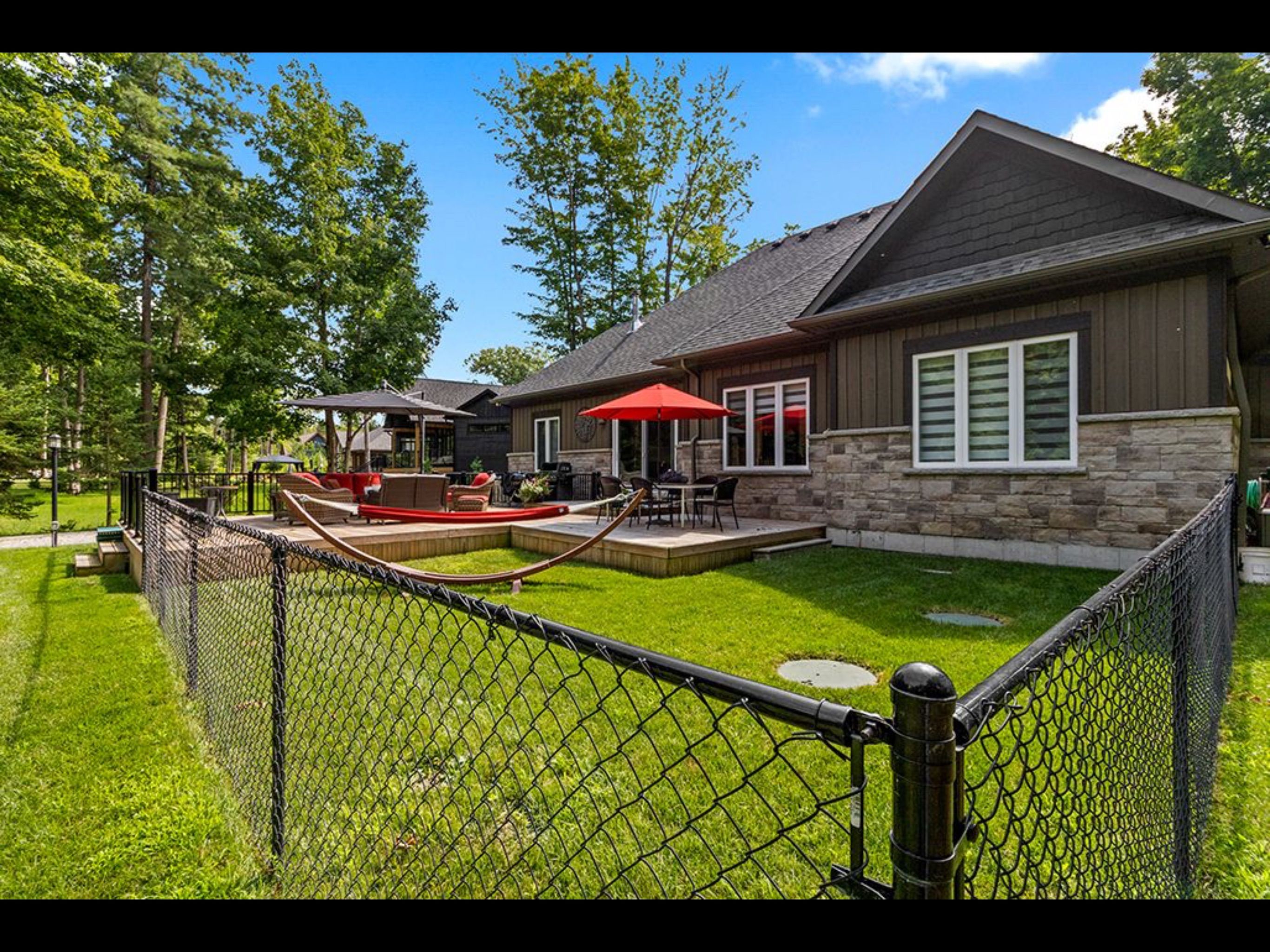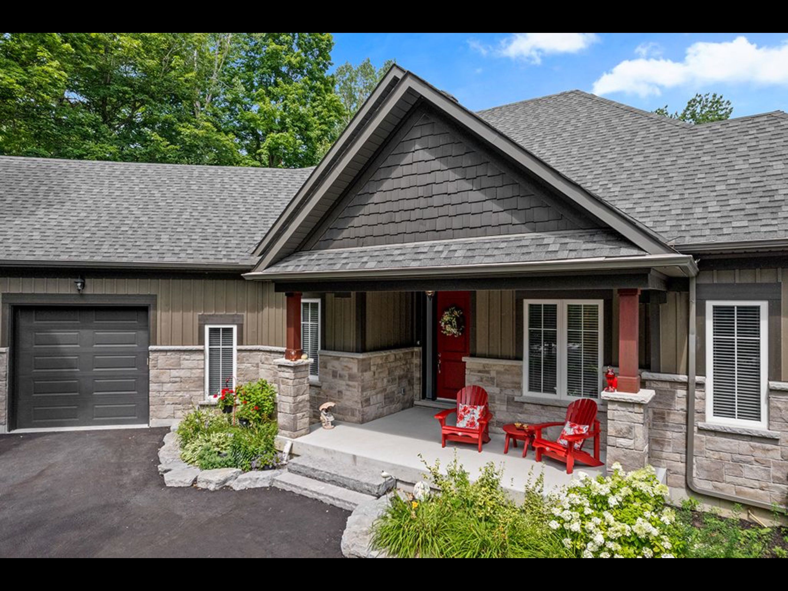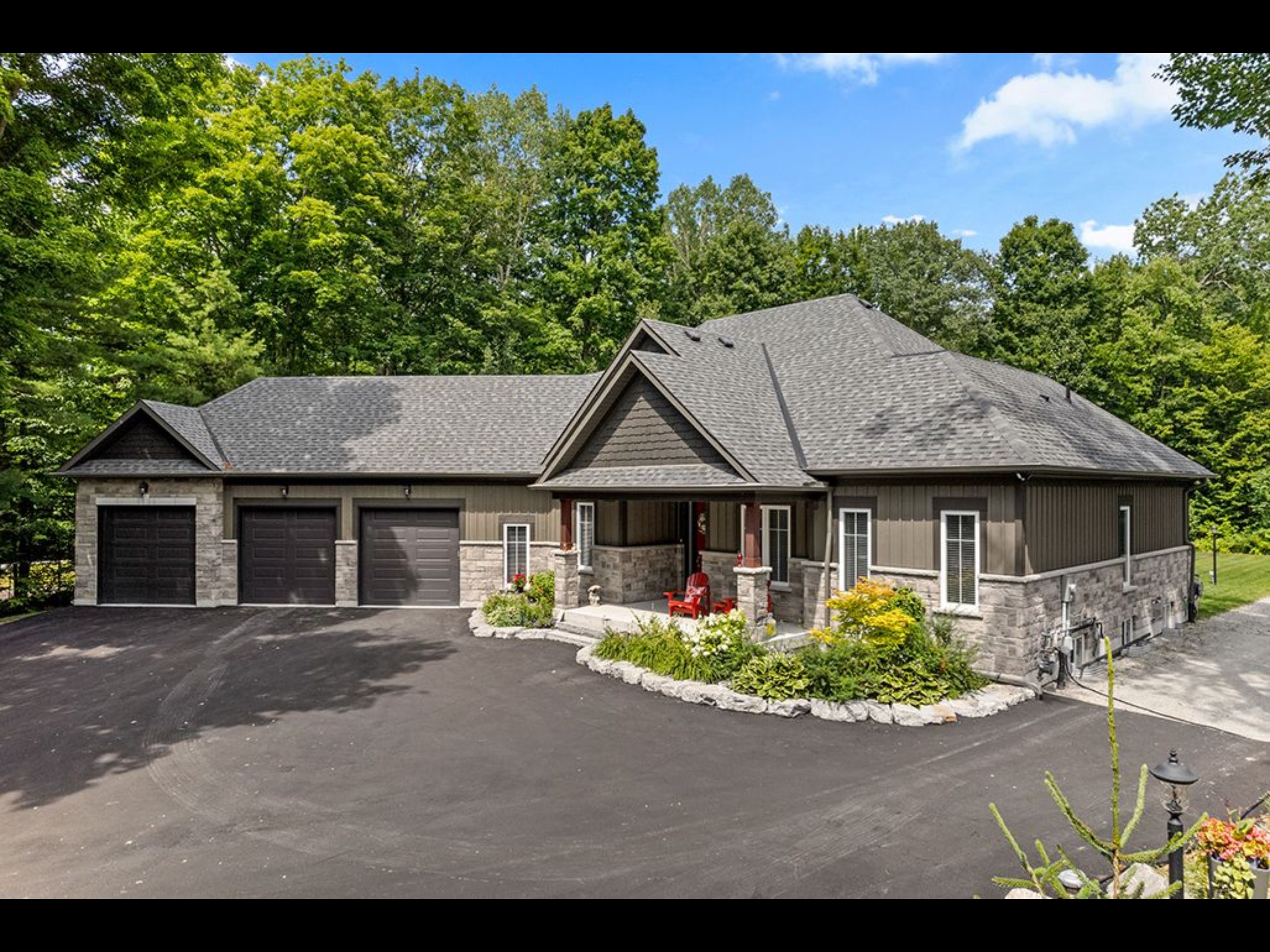 Custom-built retreat in woodland beach, tiny township. Welcome to your dream home in the heart of woodland beach! Nestled on a beautifully treed one-acre lot, this thoughtfully designed 4-bedroom bungalow (with potential for a 5th bedroom or home office) was custom built in 2018 and offers the perfect blend of comfort, style, and functionality. Step inside to rich hardwood floors, two cozy gas fireplaces, and a bright, cheerful kitchen ideal for family meals and entertaining. The triple-car garage and newly paved driveway include a concrete pad designed for your motorcoach, camper, or rv, a rare bonus for adventurous spirits. The expansive back deck sets the stage for summertime bbqs and relaxing under the stars, while the finished lower level with in-floor heat offers space for every kind of gathering whether its a game of billiards or ping pong, a wine tasting from the cantina, or movie nights in front of the cinema-style projection screen and fireplace. Best of all, you're just a short stroll to the beach via a township-maintained waterfront access. Whether its a permanent home or weekend escape, this property delivers a lifestyle of comfort, privacy, and recreation, all just steps from the shores of georgian bay.
