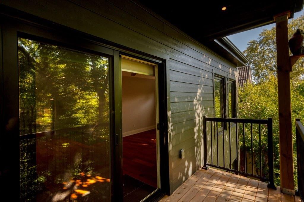 • Enclosed deck offering privacy and shade from surrounding trees.