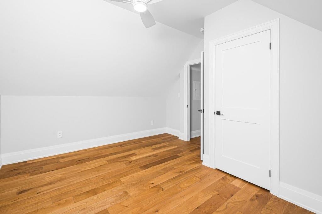 • Primary bedroom features vaulted ceiling and large window for natural light.