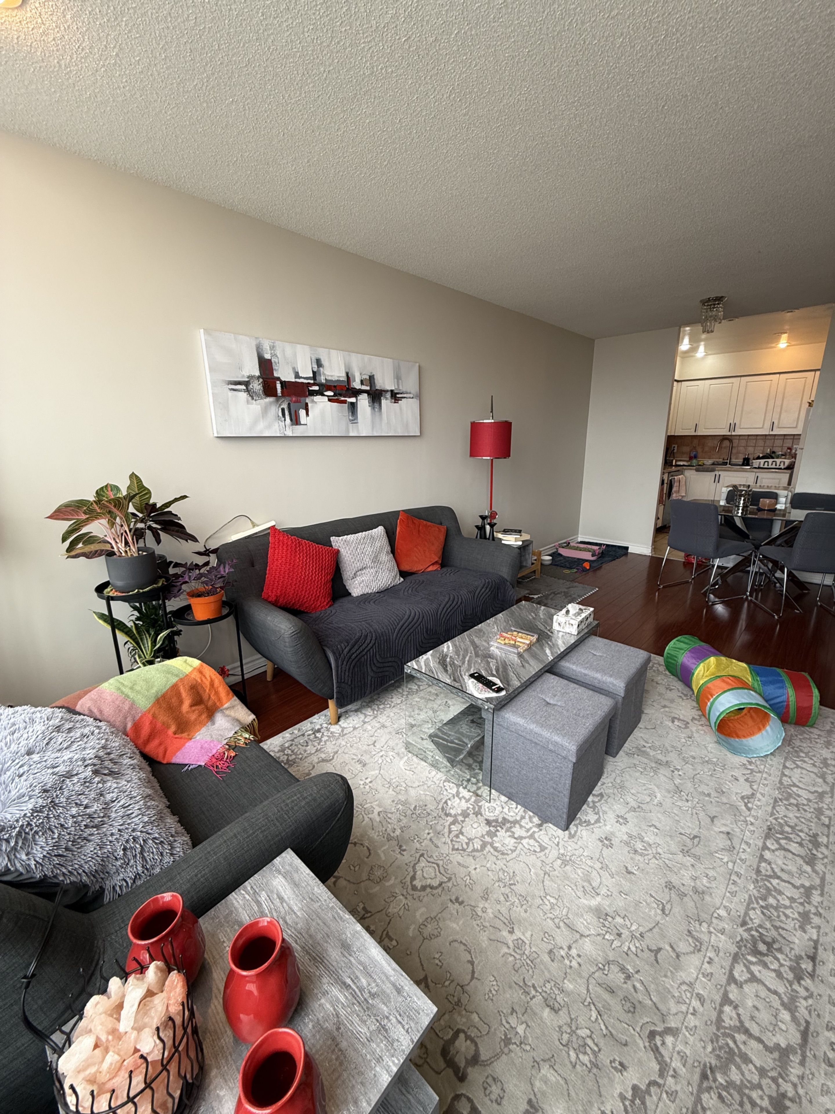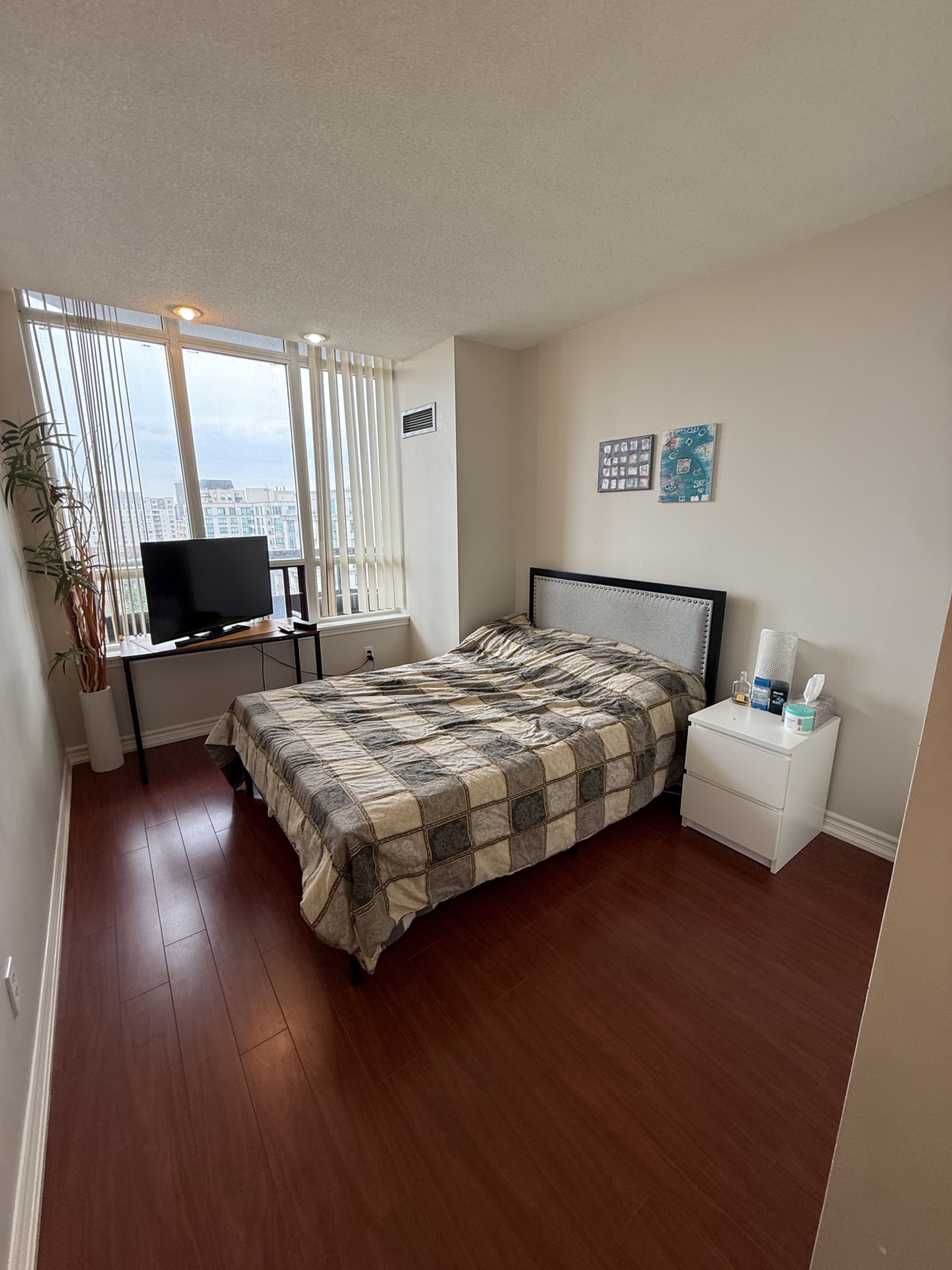 Looking for one tenant to occupy a fully furnished, private bedroom in a shared 2-bedroom, 2-bathroom penthouse suite (currently occupied by one female tenant). Fantastic opportunity to share a bright and spacious unit in the heart of thornhill! New tenant will have their own private bedroom and one bathroom, and will share all common areas and the locker with the existing tenant. Functional layout featuring laminate and ceramic flooring, pot lights, and large windows that fill the space with natural light. All new light fixtures (2026) and appliances upgraded in recent years. Unbeatable location just steps to shopping, groceries, and restaurants, and minutes to promenade mall, with easy access to ttc and yrt transit. Enjoy excellent building amenities including visitor parking, tennis court, outdoor pool, and a fully equipped gym. All utilities included. Tenant pays only 50% of internet, shared with existing tenant. Optional parking may be available through the building (~$30 - 40/month), subject to availability and not included in rent.