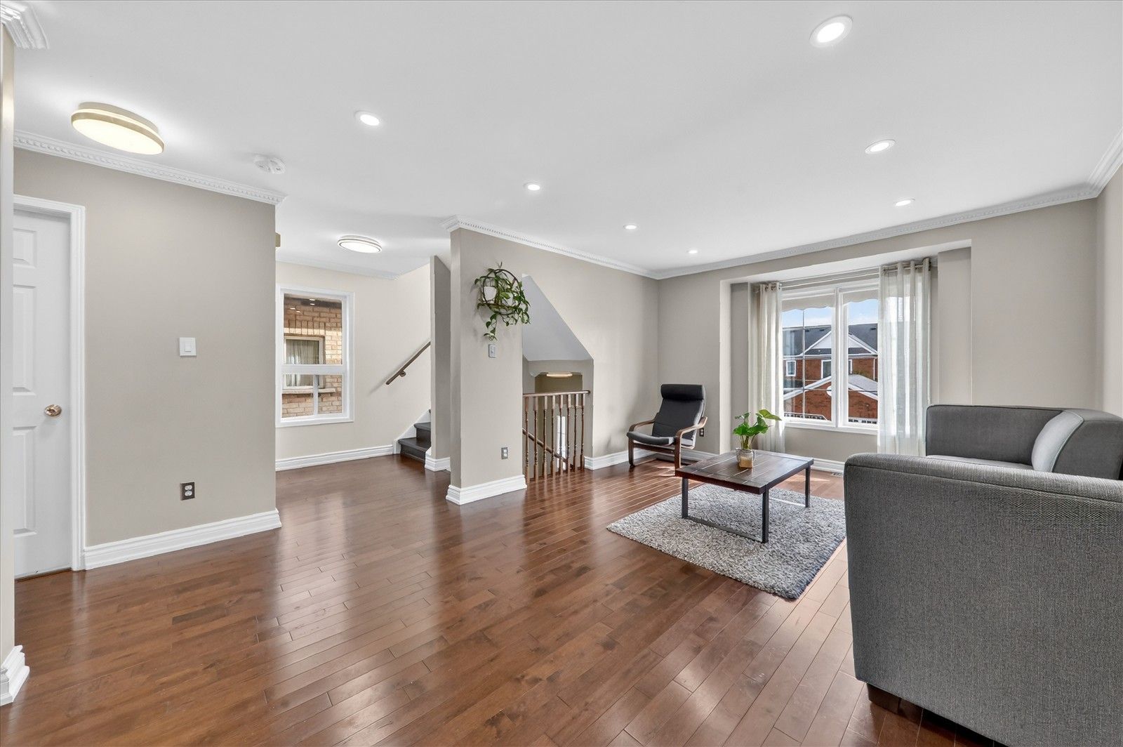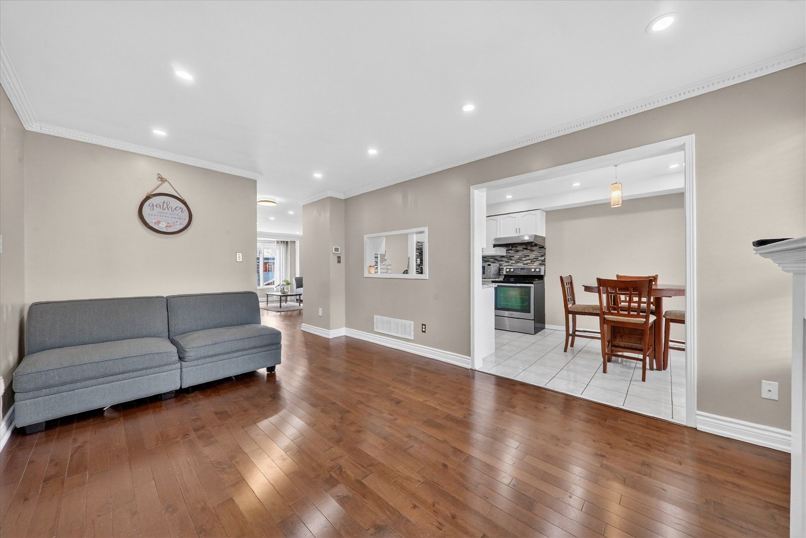 • Open-concept layout with hardwood floors, great for family gatherings.