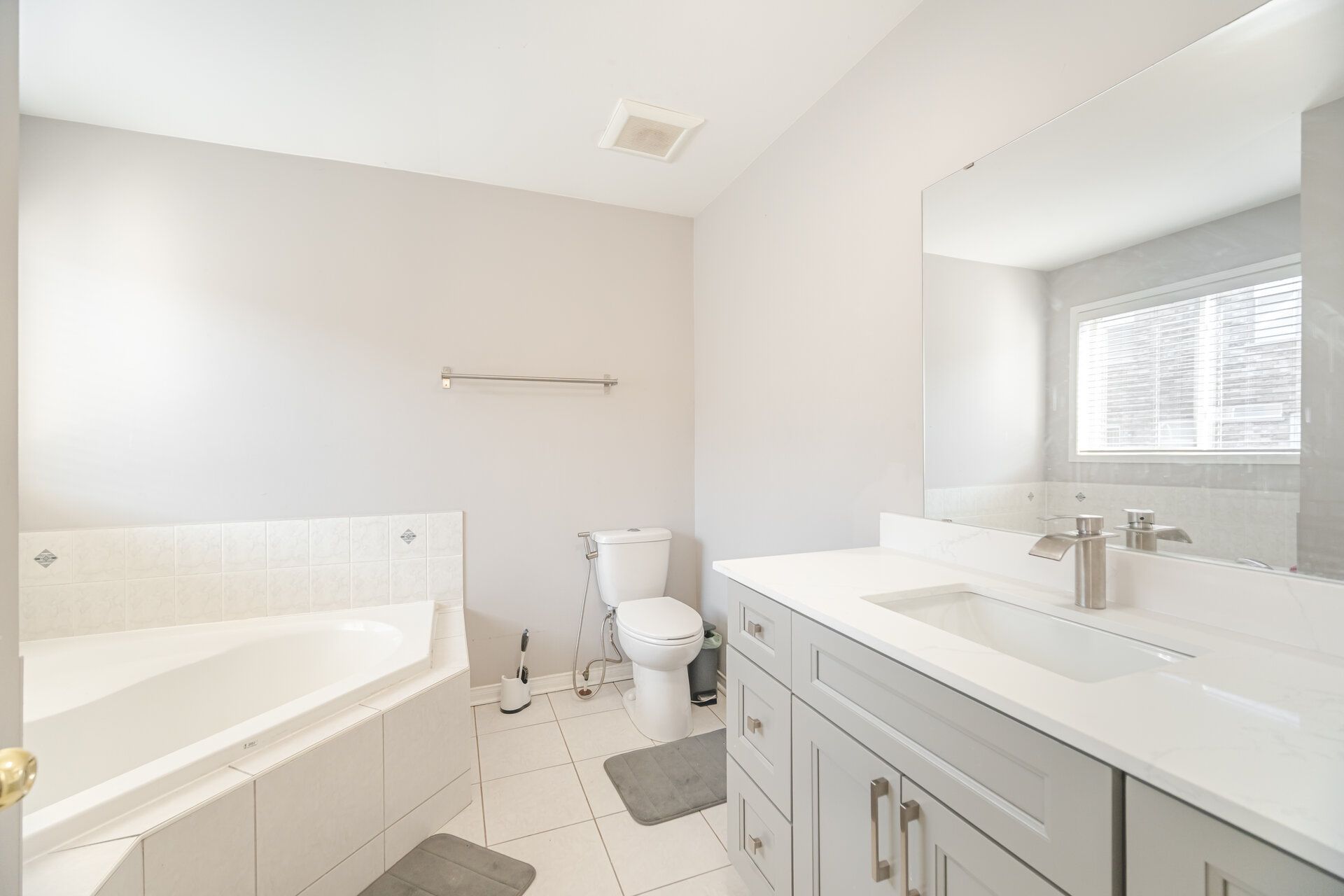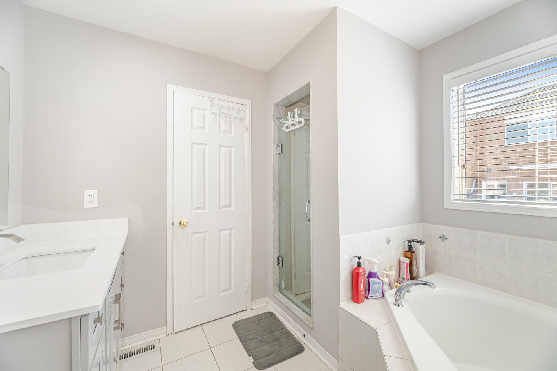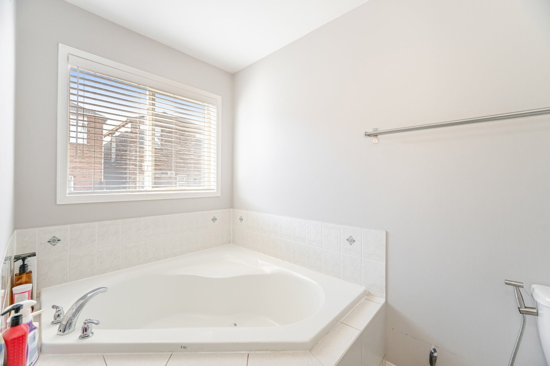 • Primary bedroom offers ensuite with soaker tub and standing shower.