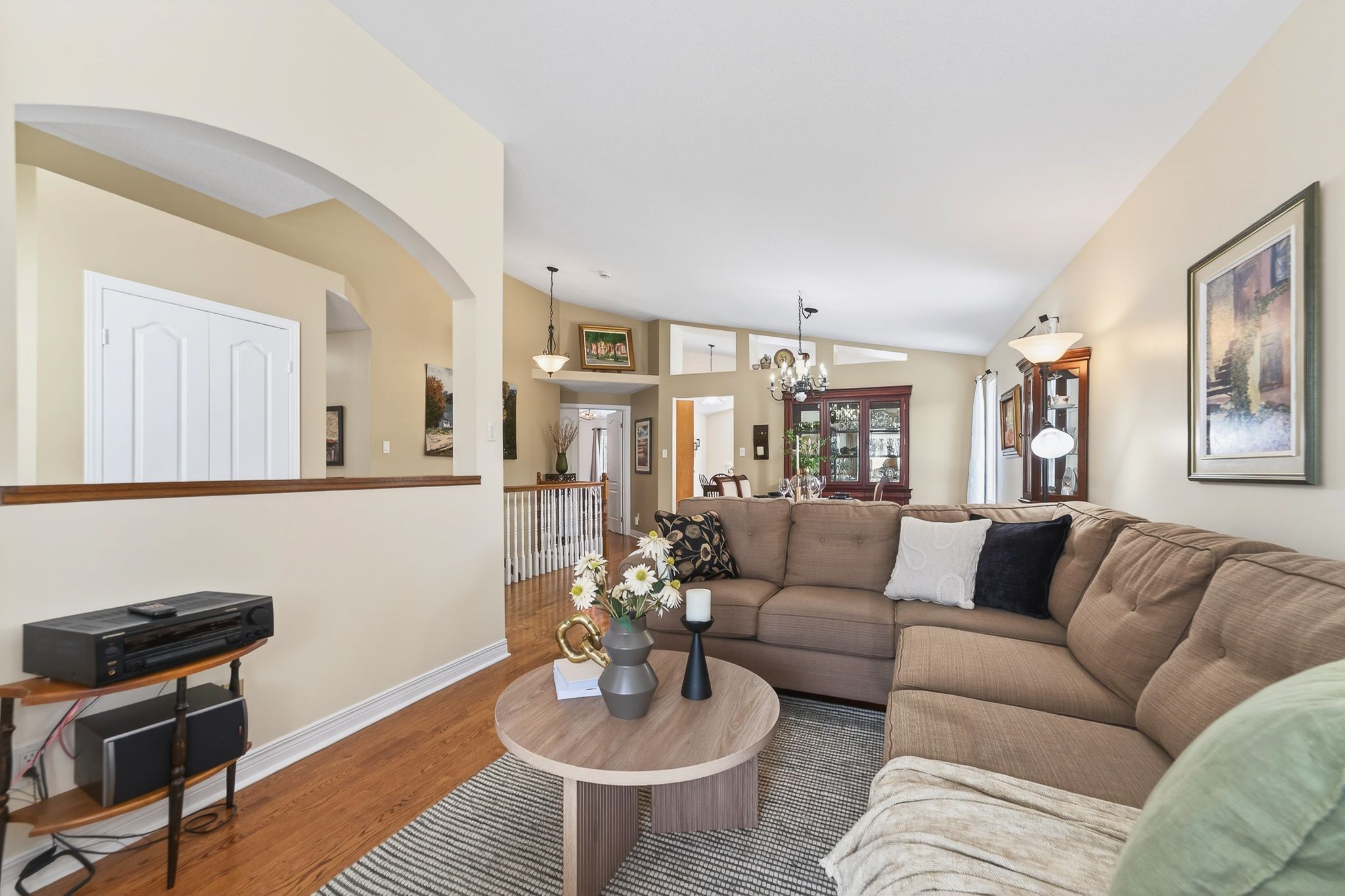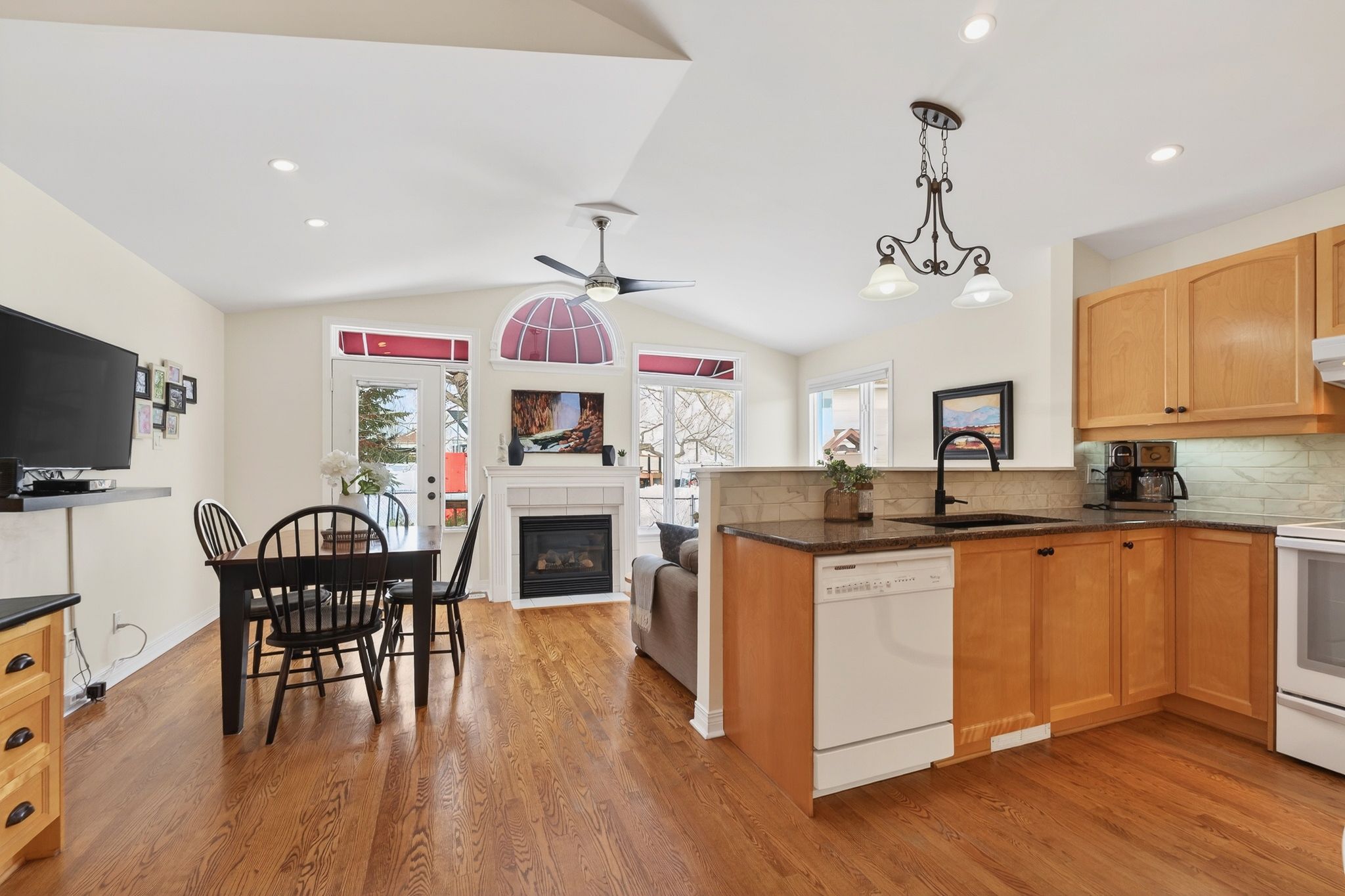 Enjoy this fantastic adult lifestyle community including a private clubhouse and scenic walking trails that wind through the neighborhood ideal for morning or evening strolls . Welcome to easy bungalow living in this beautifully maintained 2+1 bedroom end-unit lifestyle bungalow offering the perfect blend of comfort, space, and low-maintenance living. Step inside this beautiful kentucky model and you'll be welcomed by warm neutral décor and gleaming oak hardwood floors that flow seamlessly throughout most of the main level, setting the tone for this stylish and well-appointed home. Enjoy family, gatherings, or entertaining great friends in the formal dining room. Just adjacent to the dining room you'll find the spacious living room with views of the front gardens. The beautifully appointed kitchen with quartz counters and beautiful cabinetry is the heart of the home, thoughtfully designed with both style and function in mind. This space seamlessly overlooks the inviting family room allowing effortless entertaining and everyday living, keeping you connected with family and guests while prepping dinner. The generously sized primary bedroom offers a peaceful retreat complete with a walk-in closet and a well appointed 4 piece ensuite featuring a corner glass shower and relaxing soaker tub. The second bedroom could be used as a main floor office and features easy access to the four piece main bath. The fully finished basement offers exceptional additional living space, featuring a spacious family room with fireplace , perfect for movie nights. A well-sized bedroom provides privacy and flexibility, ideal for overnight guests. Completing the lower level is a full bathroom, adding convenience and functionality. Unwind on the backyard patio after a busy day. Ac / furnace (2017) roof (2015), kitchen (2021).