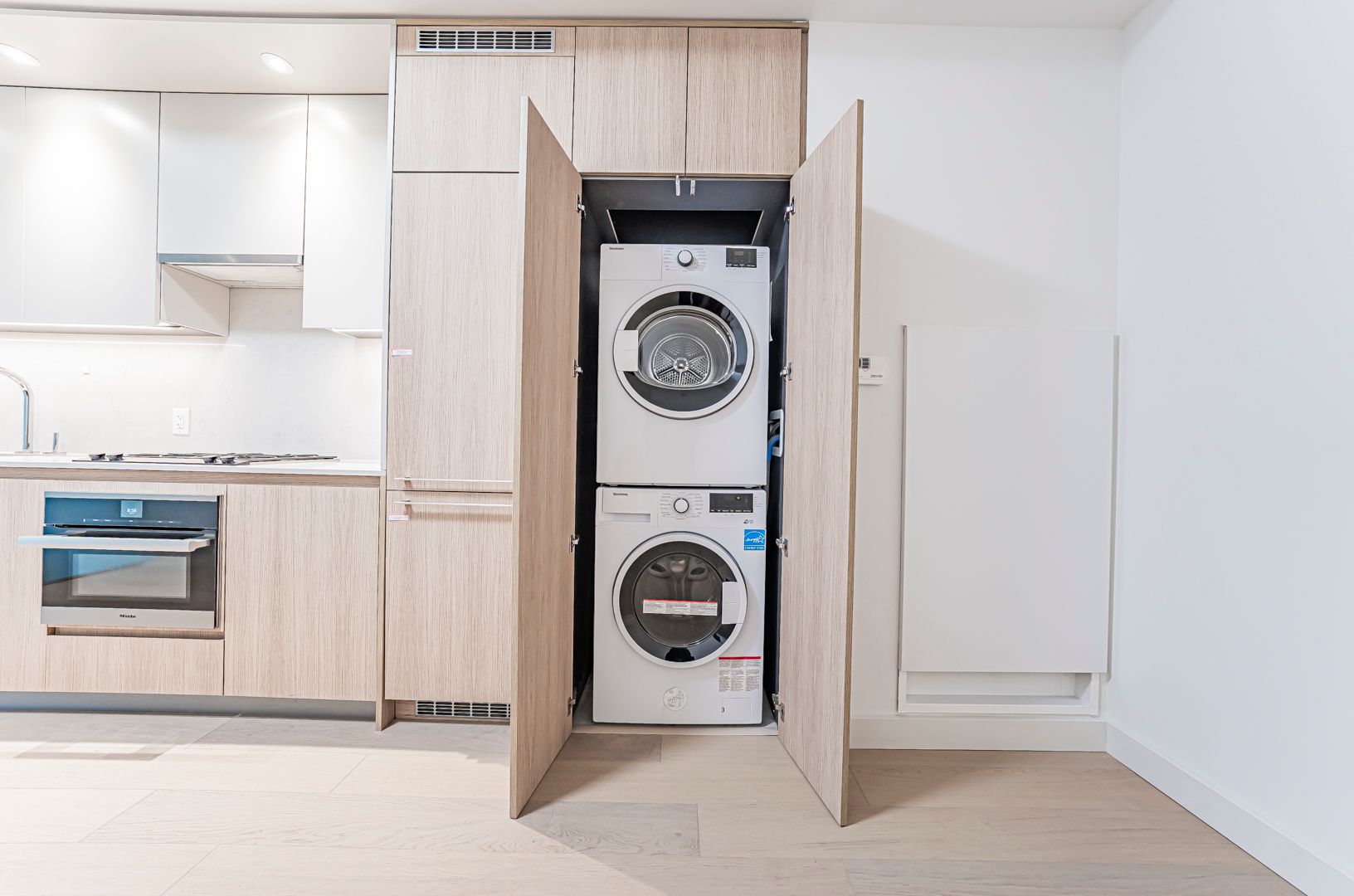 Stylish and functional 1 bedroom +1 den at 81 wellesley in downtown toronto! Spacious layout with a large balcony in a 2-year-new building. This bright and airy unit features 9-ft ceilings and stylish laminate flooring throughout. The versatile den can be used as a second bedroom, perfect for a small family or guests. The gourmet kitchen boasts high-end miele & gaggenau appliances, including built-in cooktop, oven, fridge, dishwasher, quartz countertops, backsplash, and a rare gas cooktop. Ensuite washer/dryer included. Enjoy top-tier building amenities: 24-hour concierge, fitness centre, rooftop terrace, party/meeting room, and more. Unbeatable location steps to wellesley subway station, uoft, hospitals, shops, restaurants & entertainment. Walk score of 98! A warm, comfortable, and modern homeideal for both end users and investors!