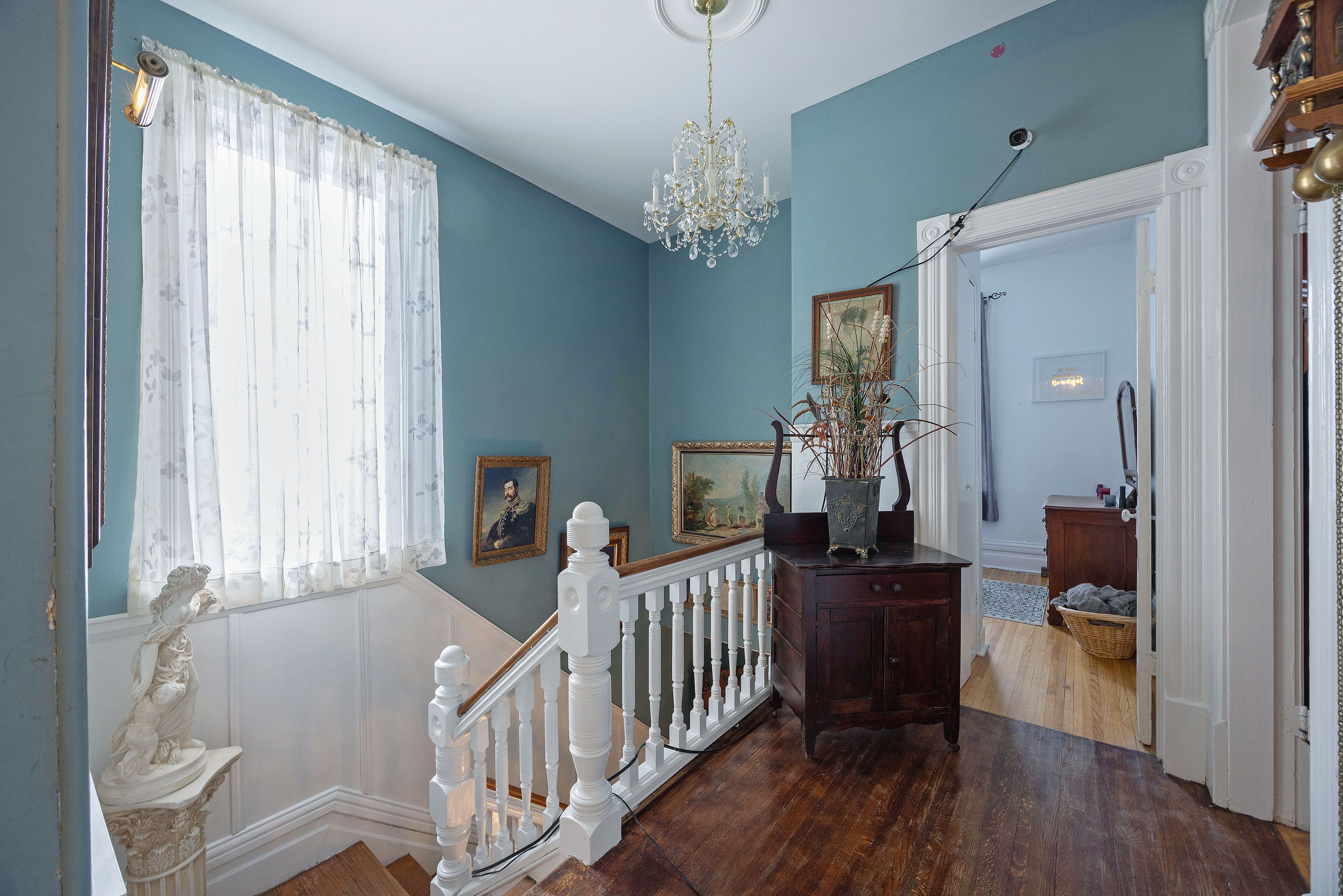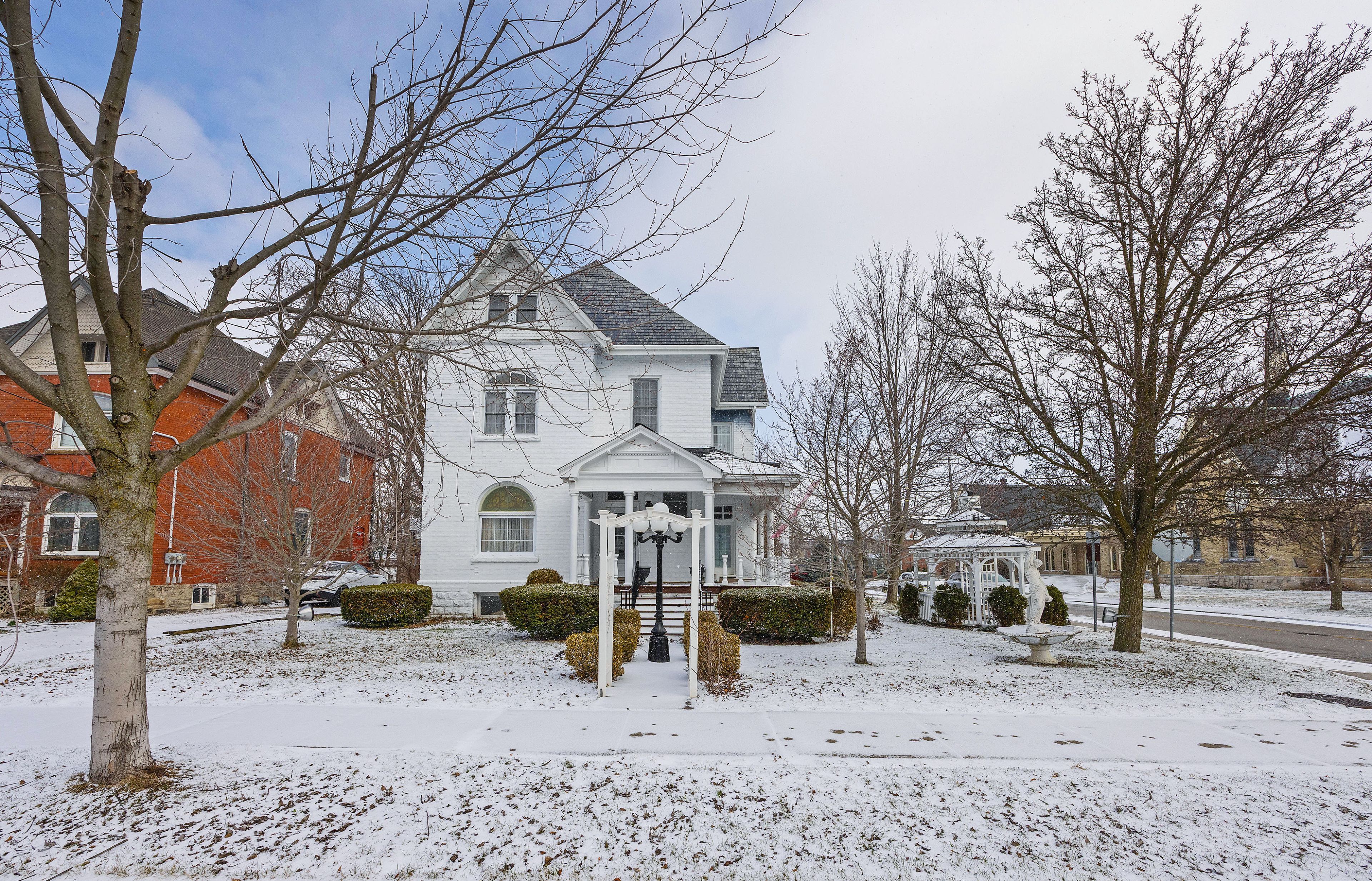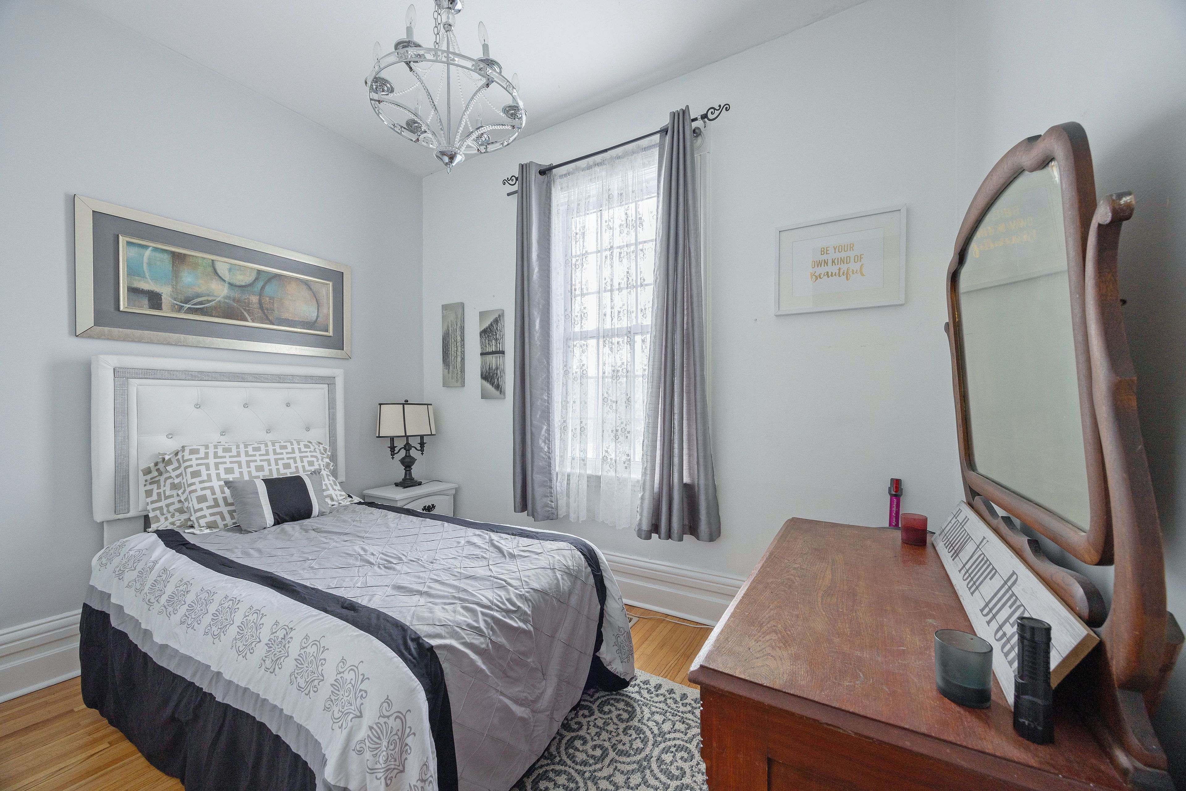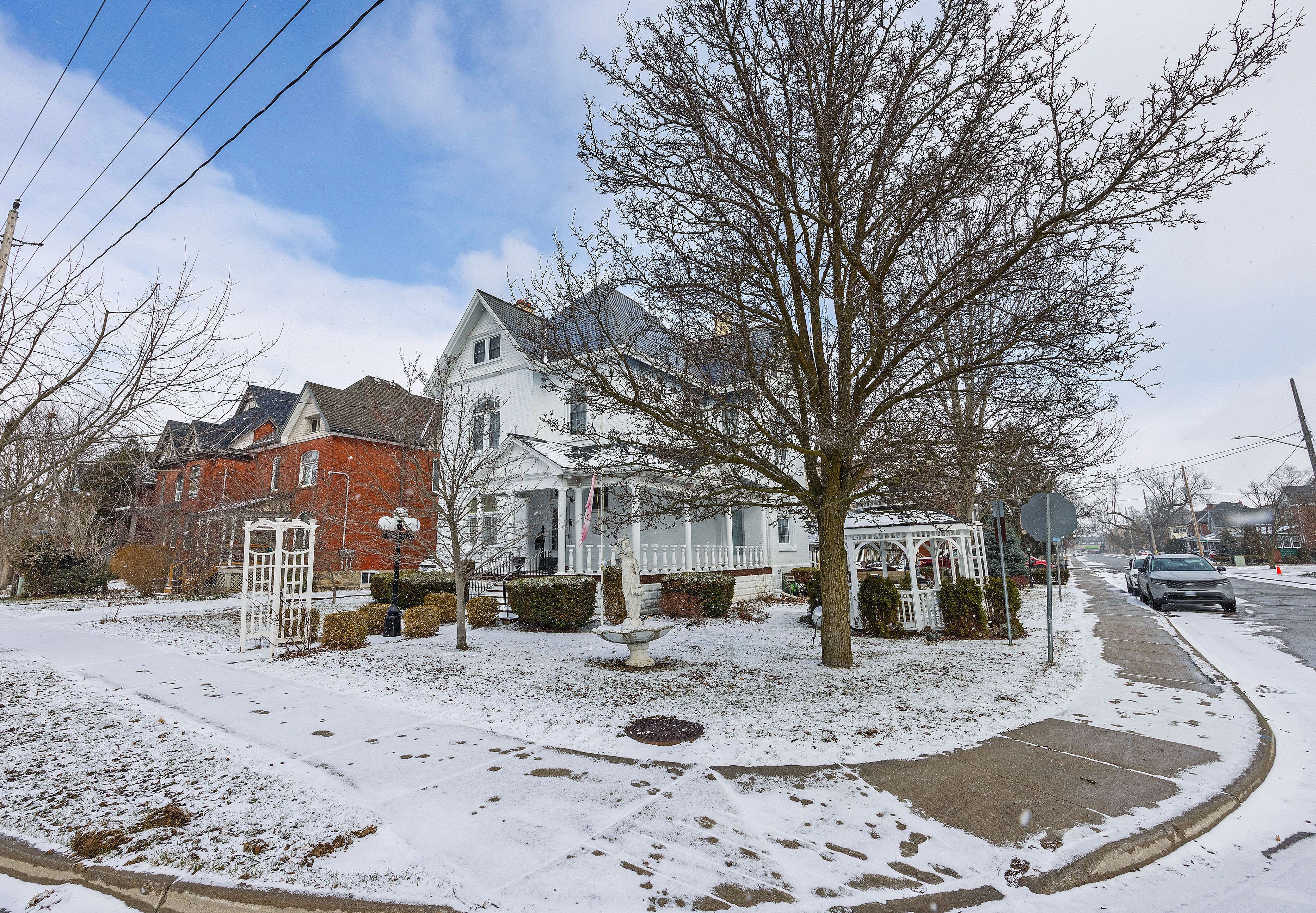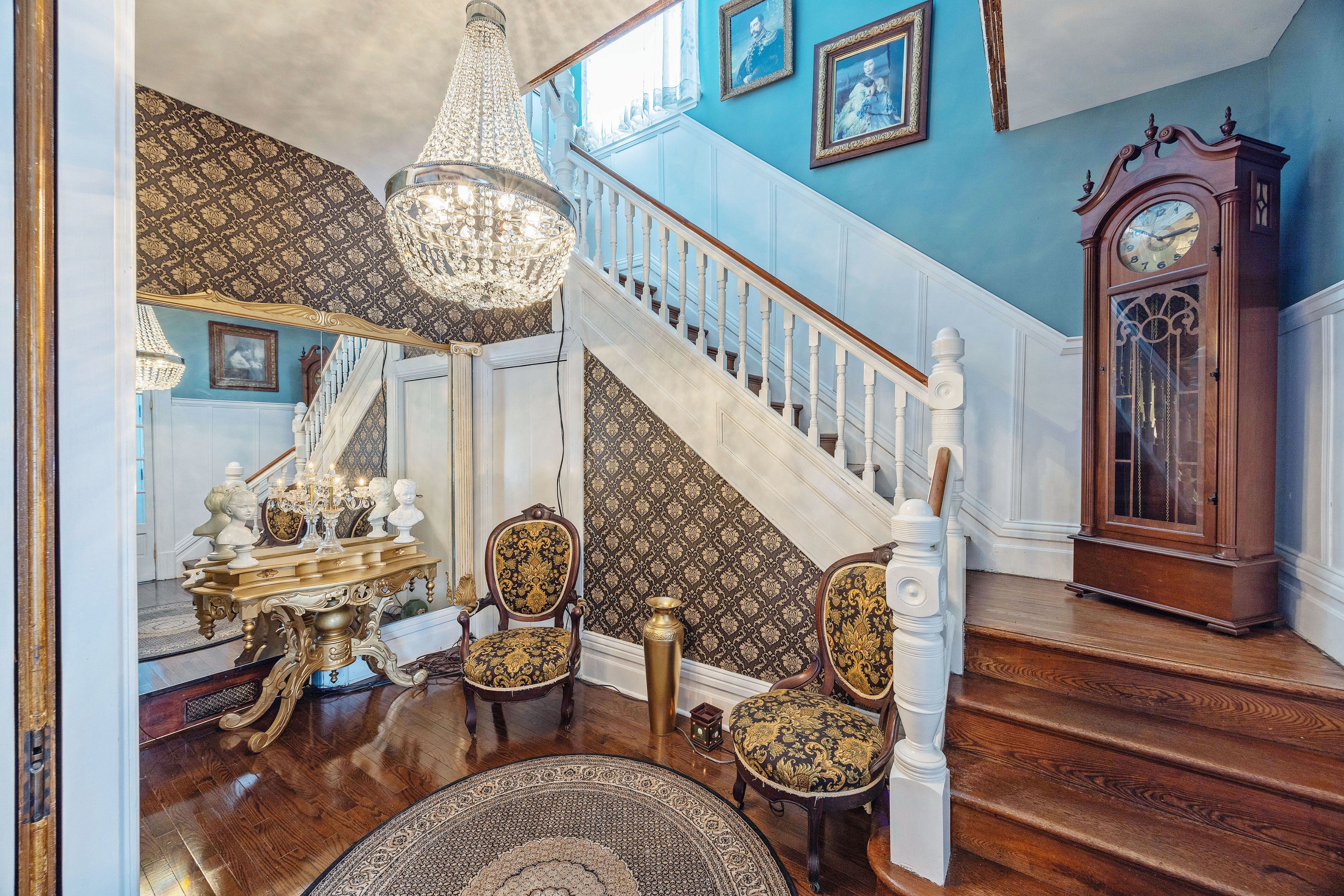 Welcome to the "marjorie rose" this grand lady stands tall and proud, offering an exceptional blend of original charm and character with all the modern conveniences you desire. The main floor is thoughtfully designed for comfort and function. Step into a stunning foyer that sets the tone for the rest of the home. A beautiful living room with an original wood fireplace invites relaxation and gatherings, while the large dining area is perfect for hosting family and friends. Classic pocket doors and hardwood flooring contribute to the home's timeless elegance. For added convenience, the main floor includes a two-piece powder room. A private den, featuring an electric fireplace and hardwood floors, provides an ideal space for reading or unwinding in peace. The chef's kitchen is equipped with upgraded appliances and offers direct access to both the backyard and the basement, as well as a secondary back staircase for easy movement throughout the home. Upstairs, you'll find five well-appointed bedrooms and a spacious four-piece bathroom, ensuring ample space and comfort for family members or guests. The attic offers even more living area, boasting four additional bedrooms, a living room, a two-piece bath, and storage space. This flexible layout makes the home ideal for large families or multi-generational living arrangements. Recent updates enhance the home's functionality and efficiency, including a 200-amp electrical service, a gas furnace, newer windows (8 yrs), and air conditioning (8 yrs). With r4 zoning, the property allows for a variety of uses, making it an excellent opportunity for those looking to invest.